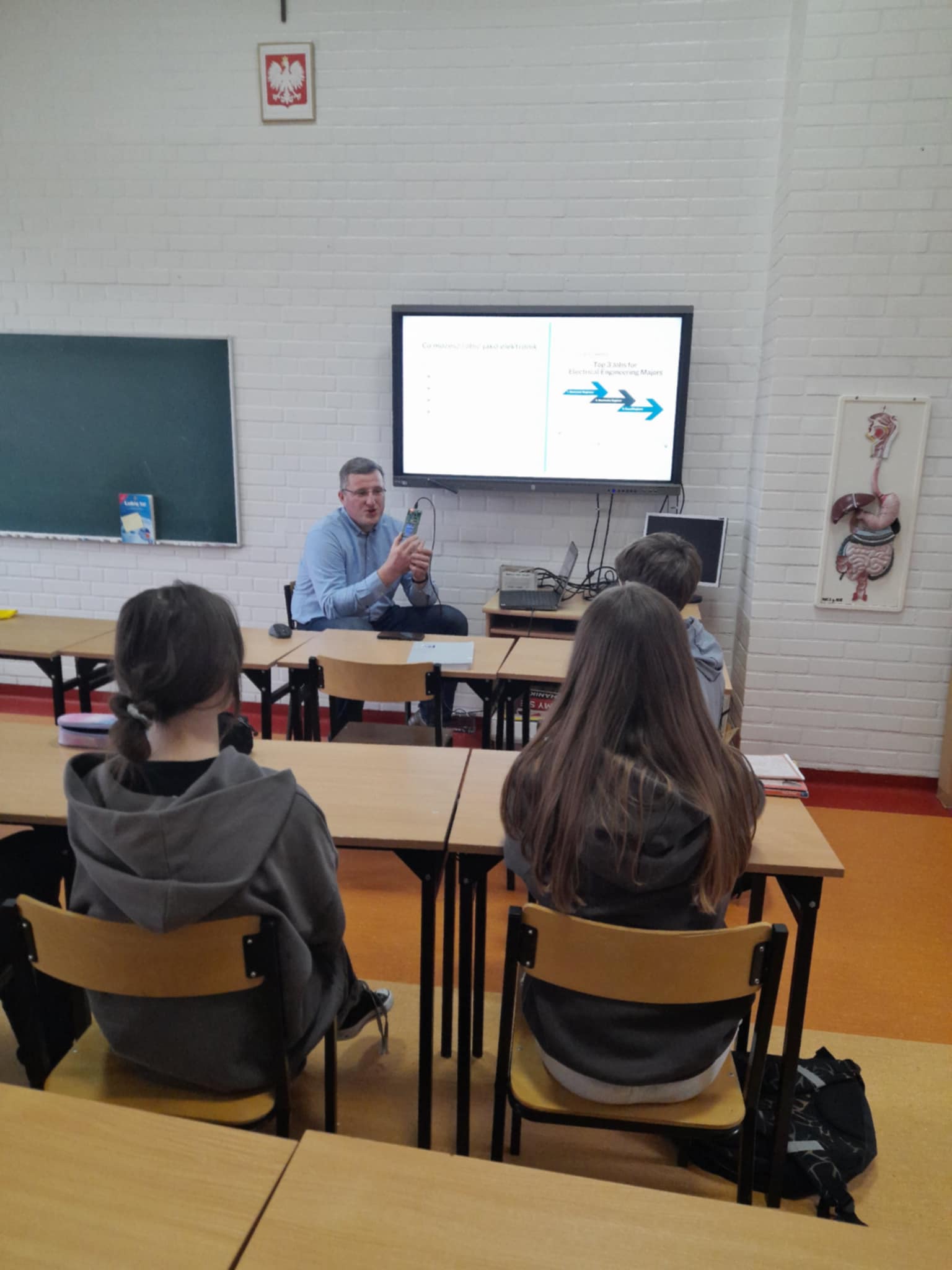 Wizyta rodzica jako specjalisty z branży elektronicznej na zajÄ™ciach z doradztwa zawodowego, byÅ‚a cennym doÅ›wiadczeniem dla uczniów. PokazaÅ‚a, jak zróżnicowany i peÅ‚en wyzwaÅ„ jest zawód elektronika, a także jak szerokie możliwoÅ›ci rozwoju zawodowego oferuje ta dziedzina. DziÄ™ki takim spotkaniom mÅ‚odzież ma szansÄ™ poznać zawody "od kuchni", a także lepiej zrozumieć, jakie umiejÄ™tnoÅ›ci bÄ™dÄ… niezbÄ™dne, by odnieść sukces w przyszÅ‚ej karierze zawodowej.