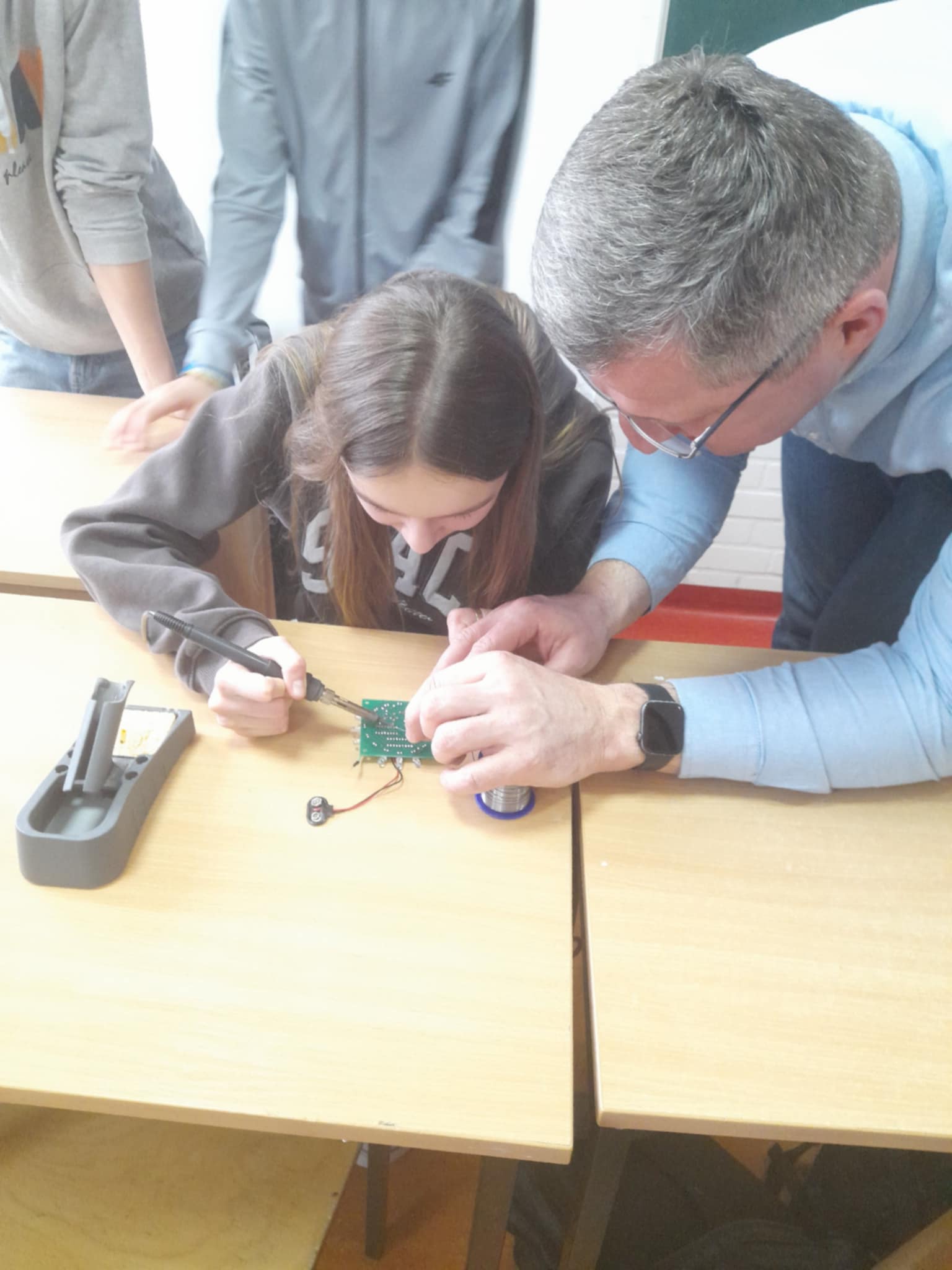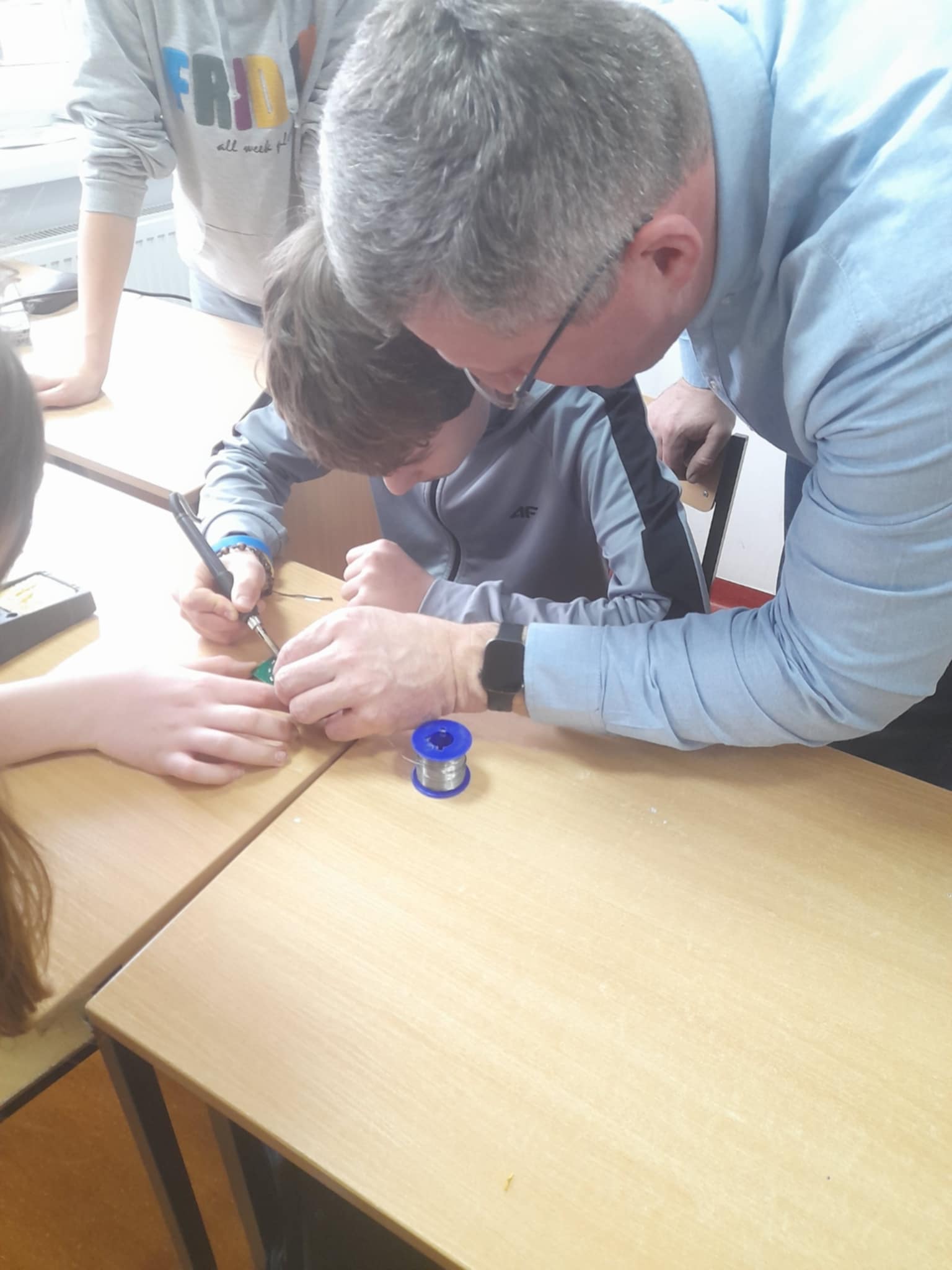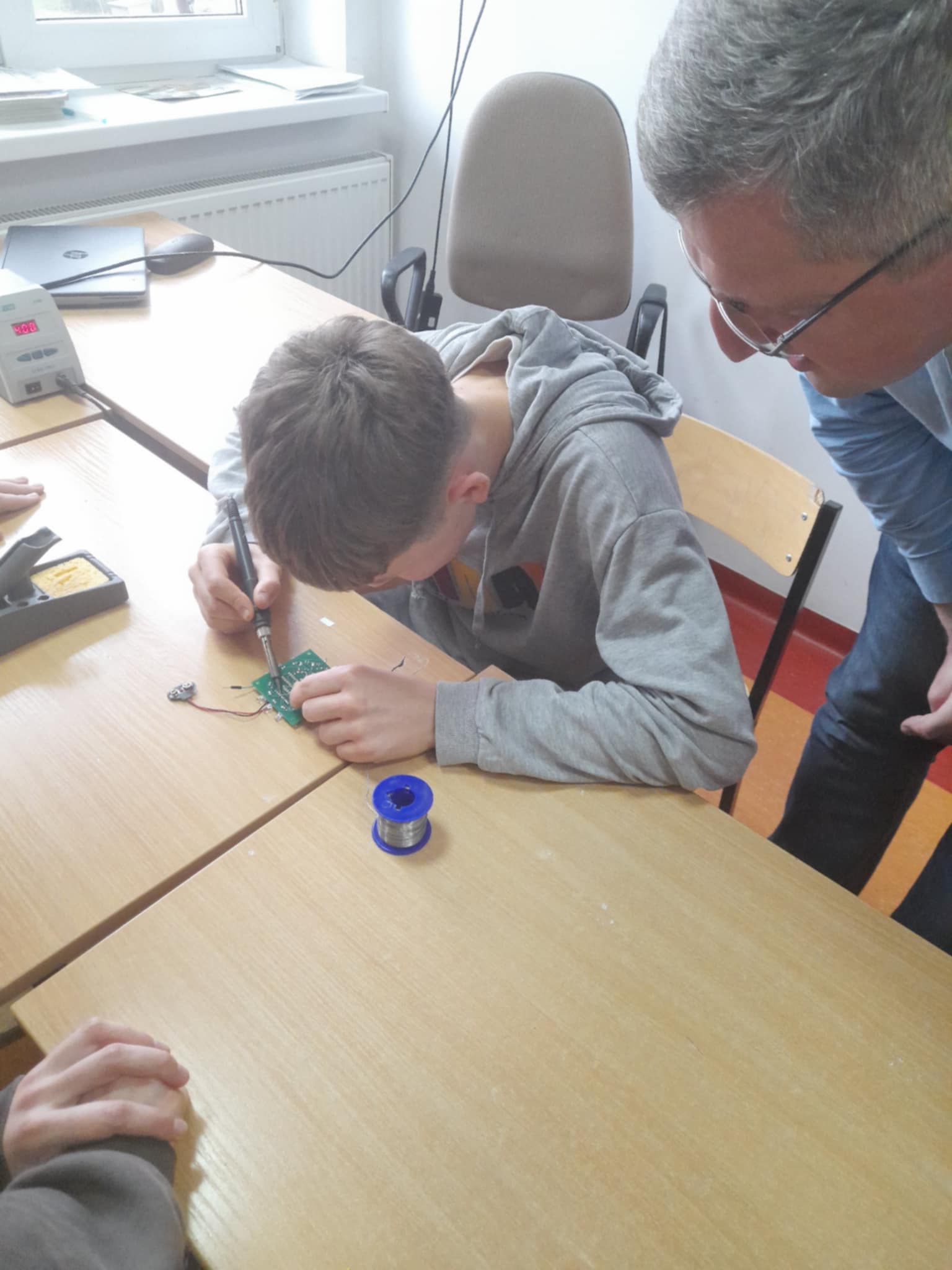 Uczniowie mieli okazję praktycznego zetknięcia z tym zawodem, co uświadomiło im, że elektronik musi być osobą skrupulatną i cierpliwą, ponieważ praca z precyzyjnymi komponentami elektronicznymi wymaga dużej dokładności.