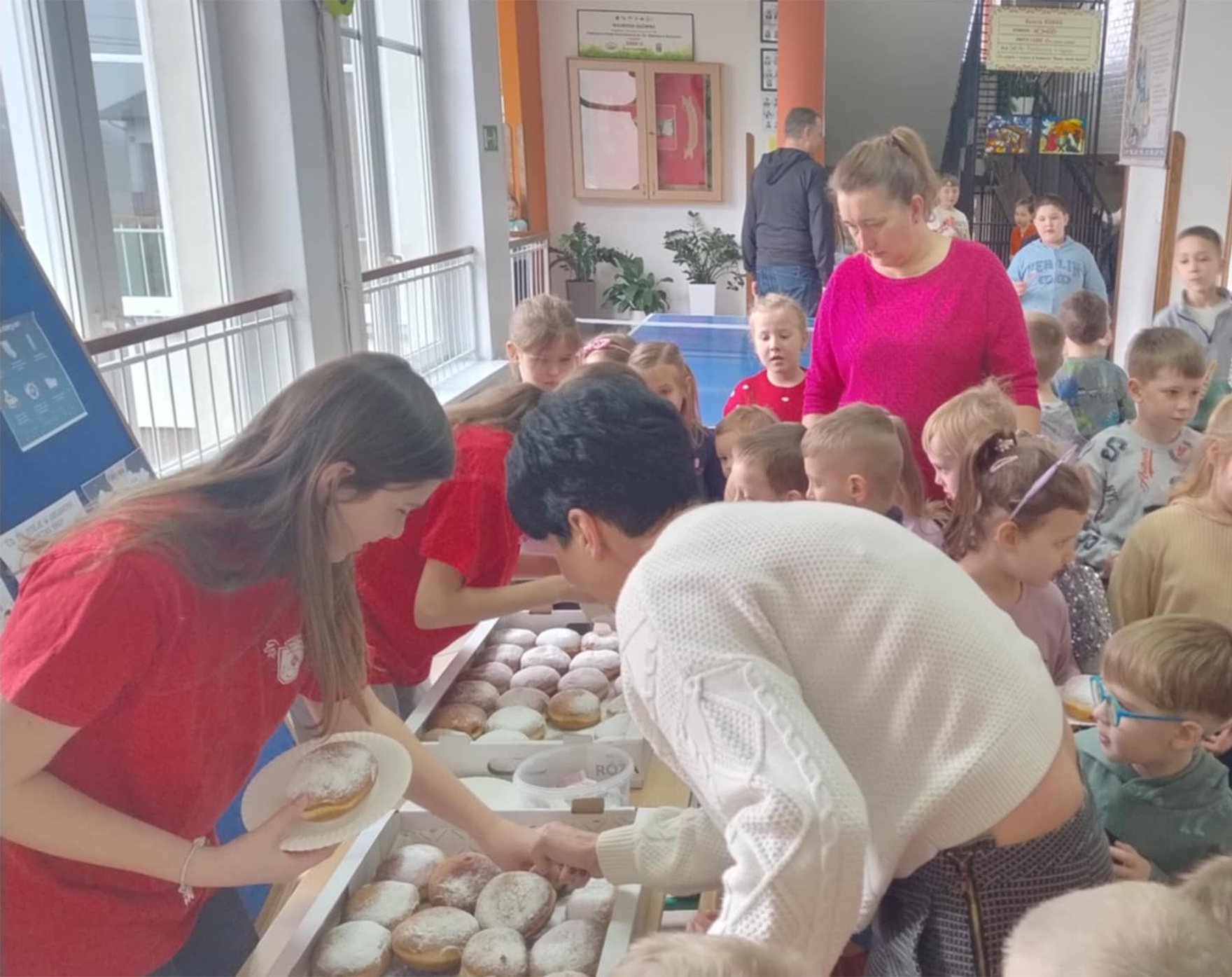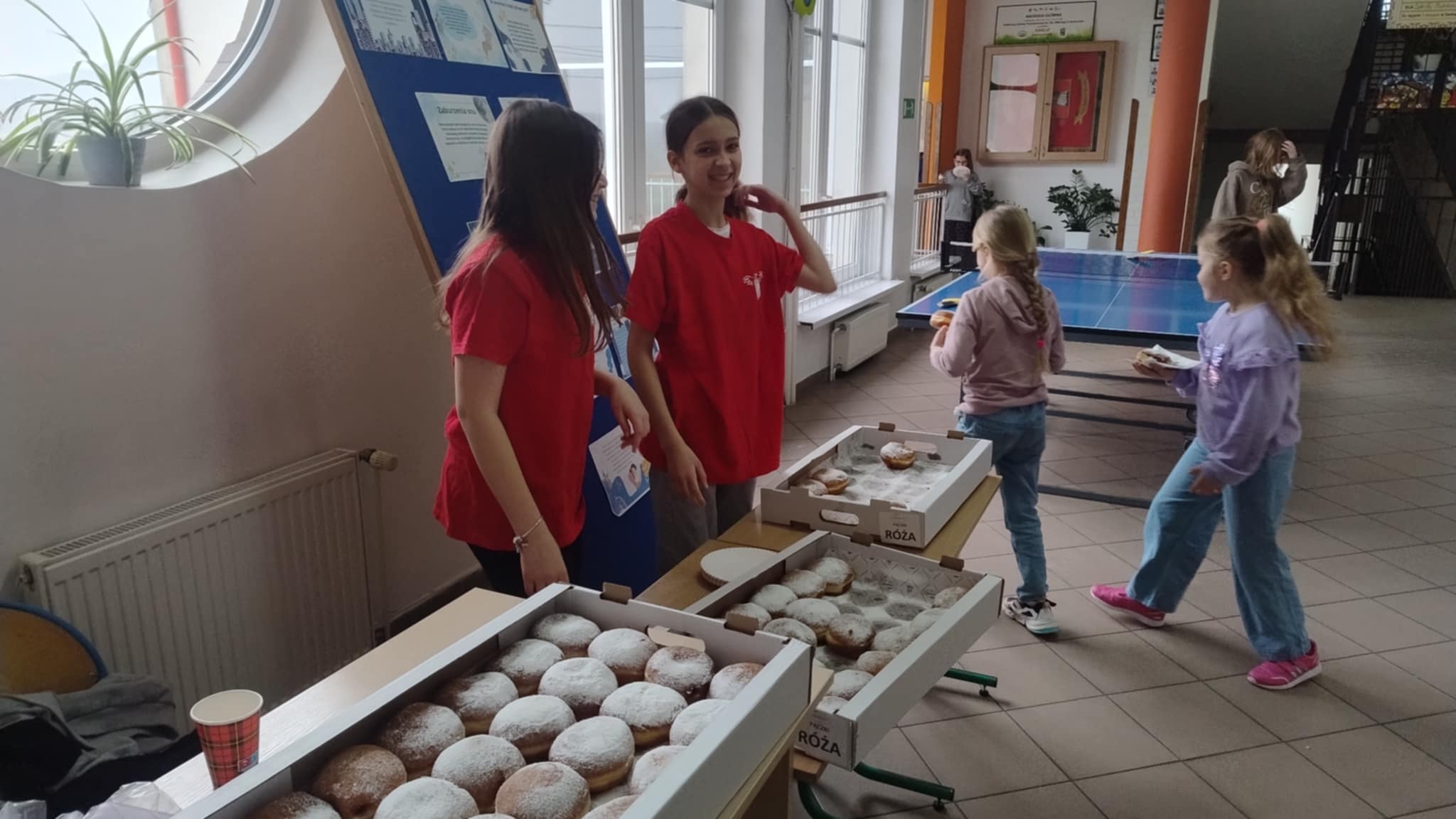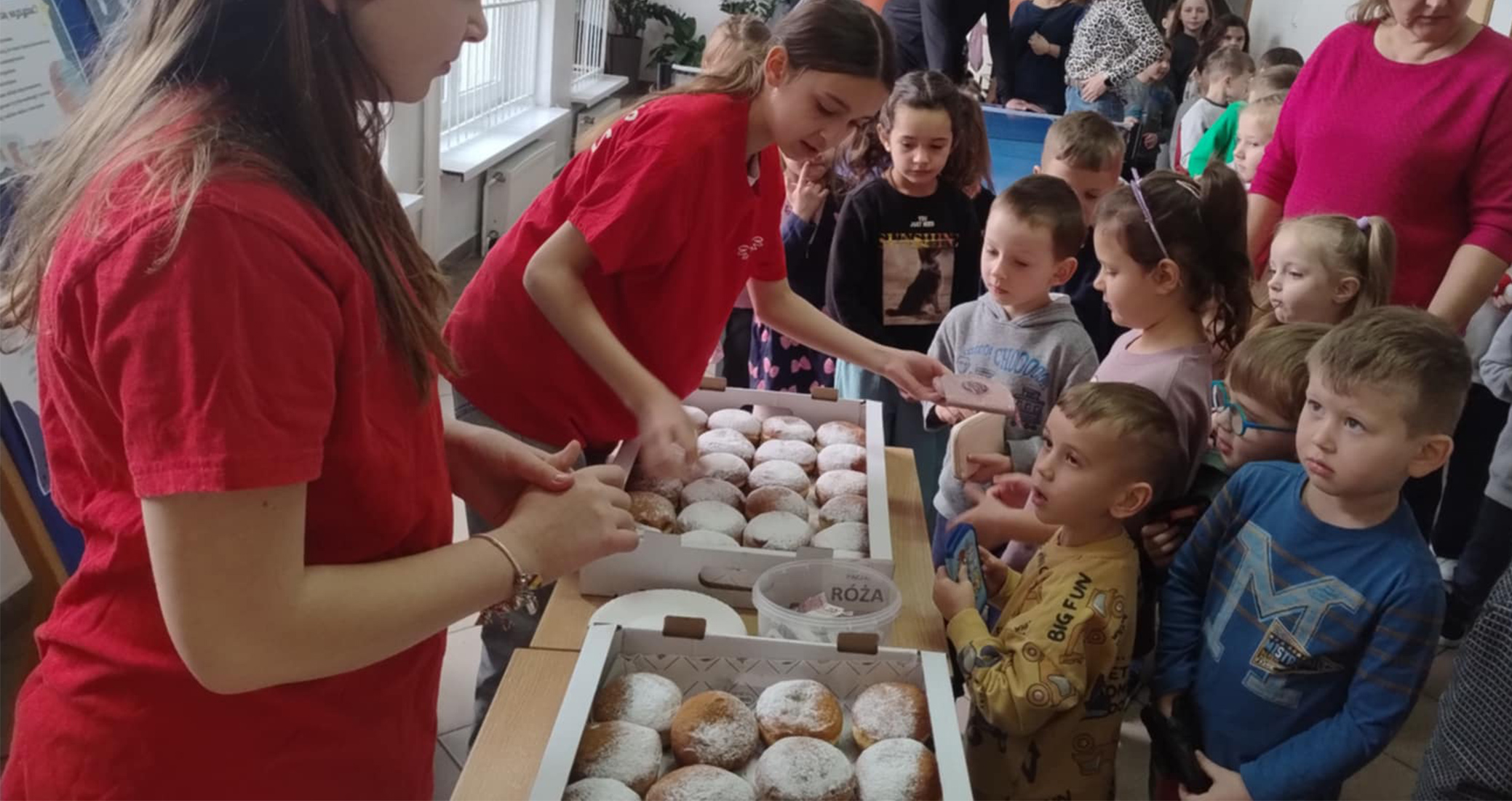 Tradycyjnie w tłusty czwartek odbyła się w naszej szkole akcja "Wyślij pączka do Afryki" przeprowadzona przez Szkolne Koło Caritas. Zajadając się wspaniałymi wypiekami z cukierni Tęgoborze wspieraliśmy pracujących na misjach oraz ich podopiecznych. Kiermasz był bardzo udany, 144 tradycyjne pączki z różą skończyły się już o 9.30. Wszystkim bardzo smakowało! Całość dochodu zostanie przekazana Misjonarzom Kapucynom jako darowizna na zapewnienie żywności dla ich podopiecznych. Szkolne Koło Caritas bardzo dziękuję za udział w akcji i ofiarność.