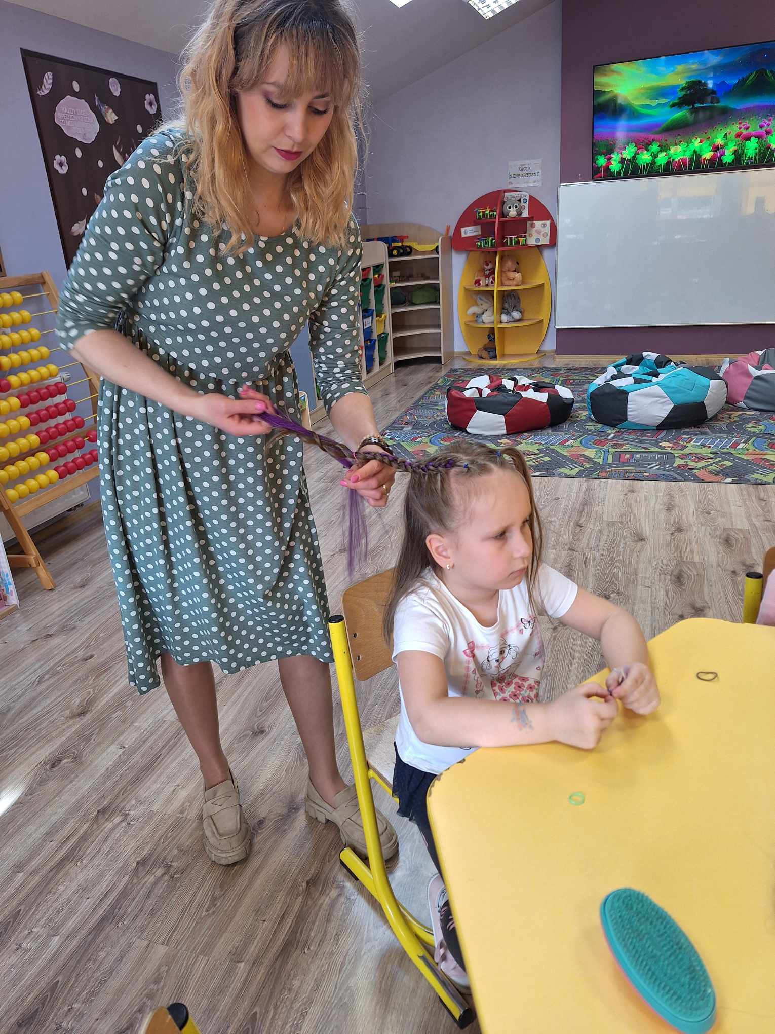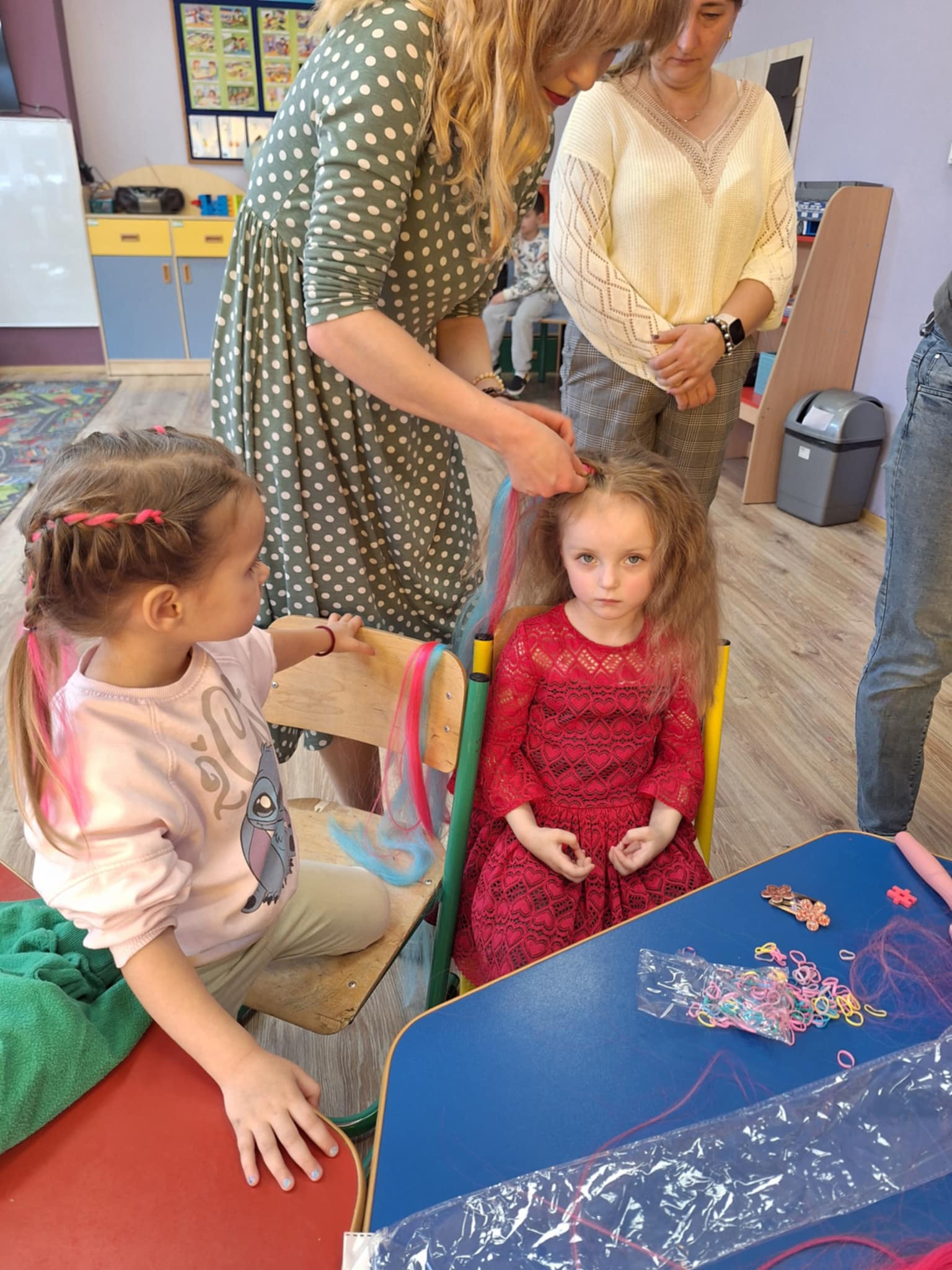 Dzień Kobiet w przedszkolu był pełen relaksu i przyjemności! Nasze dziewczynki miały okazję poczuć się wyjątkowo dzięki mini spa – mogły skorzystać z masażu twarzy, pięknie pomalować paznokcie oraz uczesać włosy. Całości dopełniła spokojna, relaksacyjna muzyka, która pozwoliła im na chwilę odpoczynku i odprężenia. Serdecznie dziękujemy mamom Tymusia, Maksia i Martynki za ogromne zaangażowanie i pomoc w organizacji tego wyjątkowego dnia!