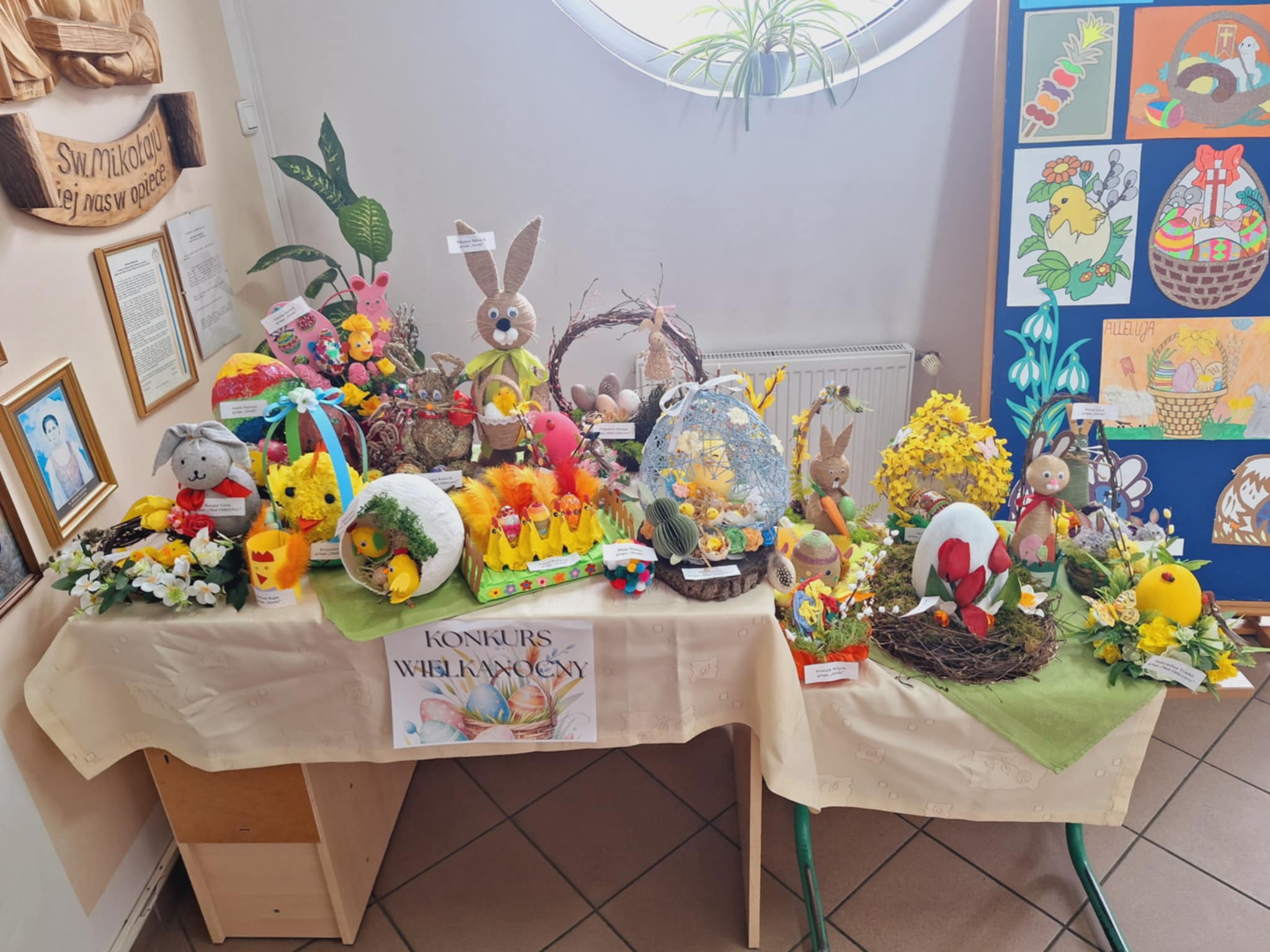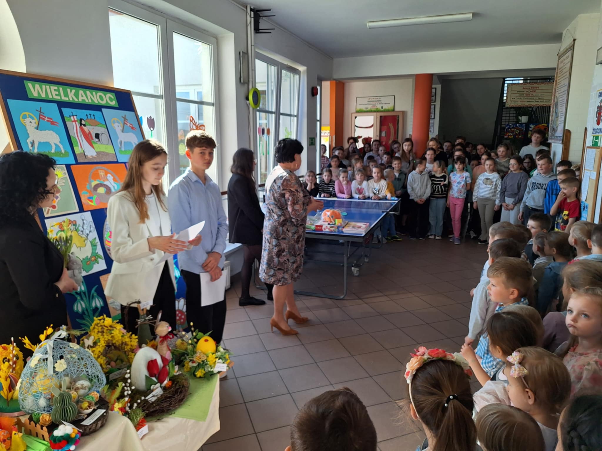 Pani Oliwia Gierek oraz pani MaÅ‚gorzata Mikus zorganizowaÅ‚y również wielkanocny konkurs plastyczny pt. „Ozdoba Wielkanocna”, którego rozstrzygniÄ™cie odbyÅ‚o siÄ™ podczas spotkania szkolnego, gdzie Pani Dyrektor wrÄ™czyÅ‚a nagrody , po czym skÅ‚adaÅ‚a wszystkim życzenia Å›wiÄ…teczne.