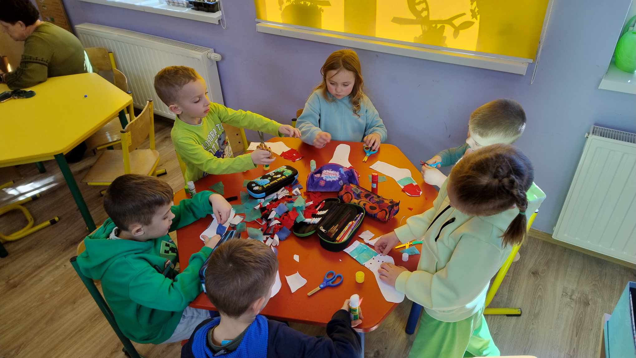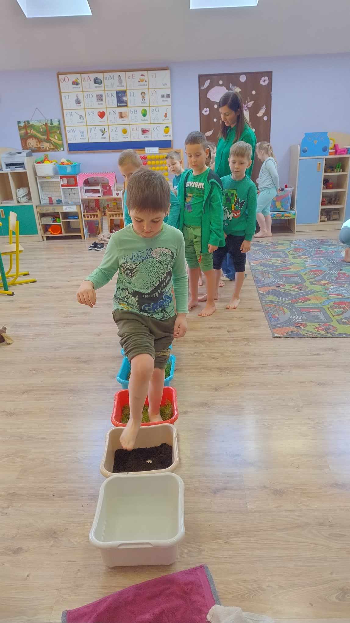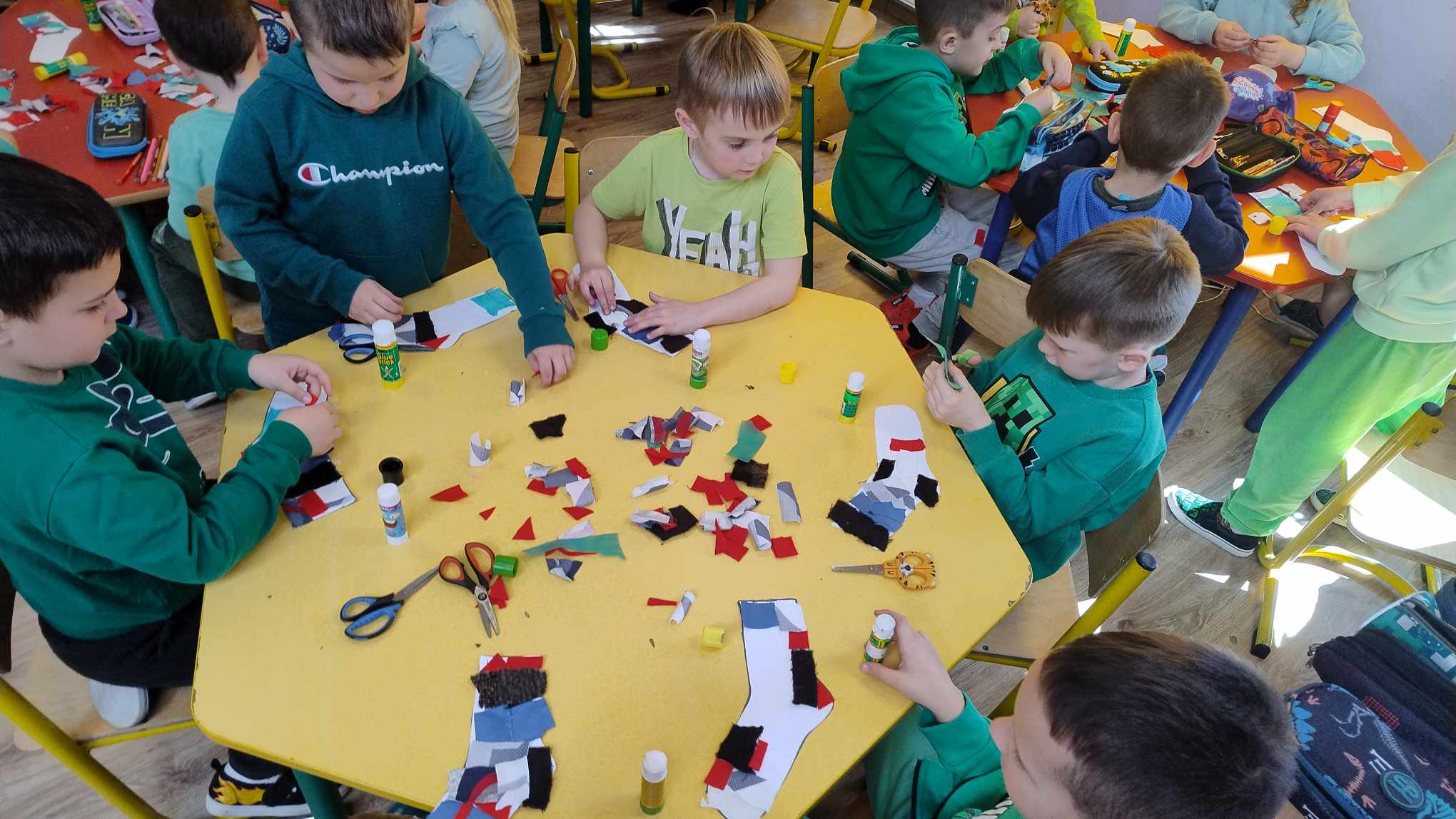 21 marca w naszej szkole byÅ‚ obchodzony Åšwiatowy DzieÅ„ Osób z ZespoÅ‚em Downa. ZaprosiliÅ›my z tej okazji do zabawy w przedszkolu Frania Dziedzica. WniósÅ‚ on do grupy wiele radoÅ›ci. Wspólnie ze starszakami przywitaliÅ›my Franka i jego mamÄ™ piosenkÄ… ,,Witaj Franiu jak siÄ™ masz". NastÄ™pnie odbyÅ‚a siÄ™ zabawa z chustÄ… Klanzy. Później dzieci pokazaÅ‚y kolorowe skarpety, nauczycielki wytÅ‚umaczyÅ‚y dlaczego w tym dniu jest ważne, by zaÅ‚ożyć skarpety w różnych kolorach. Franiu sprawdziÅ‚ każdemu skarpety. Potem dzieci wzięły udziaÅ‚ w Å›cieżce sensorycznej, która skÅ‚adaÅ‚a siÄ™ z różnych elementów: ziemi, kukurydzy, mchu, liÅ›ci, gałązek, wody. Ostatnim elementem tego dnia, byÅ‚o wykonanie pracy plastycznej- kolorowej skarpety z różnych faktur (Å›cinek z materiaÅ‚u). Po udanej zabawie wszyscy udali siÄ™ na obiad, a Franek miaÅ‚ jeszcze okazjÄ™ zwiedzić naszÄ… szkołę. Dzieci ze Å›wietlicy przygotowaÅ‚y dla niego gniotka sensorycznego, z którego bardzo siÄ™ ucieszyÅ‚. Mamy nadziejÄ™, że Franek bÄ™dzie dobrze wspominaÅ‚ dzieÅ„ w naszej szkole.