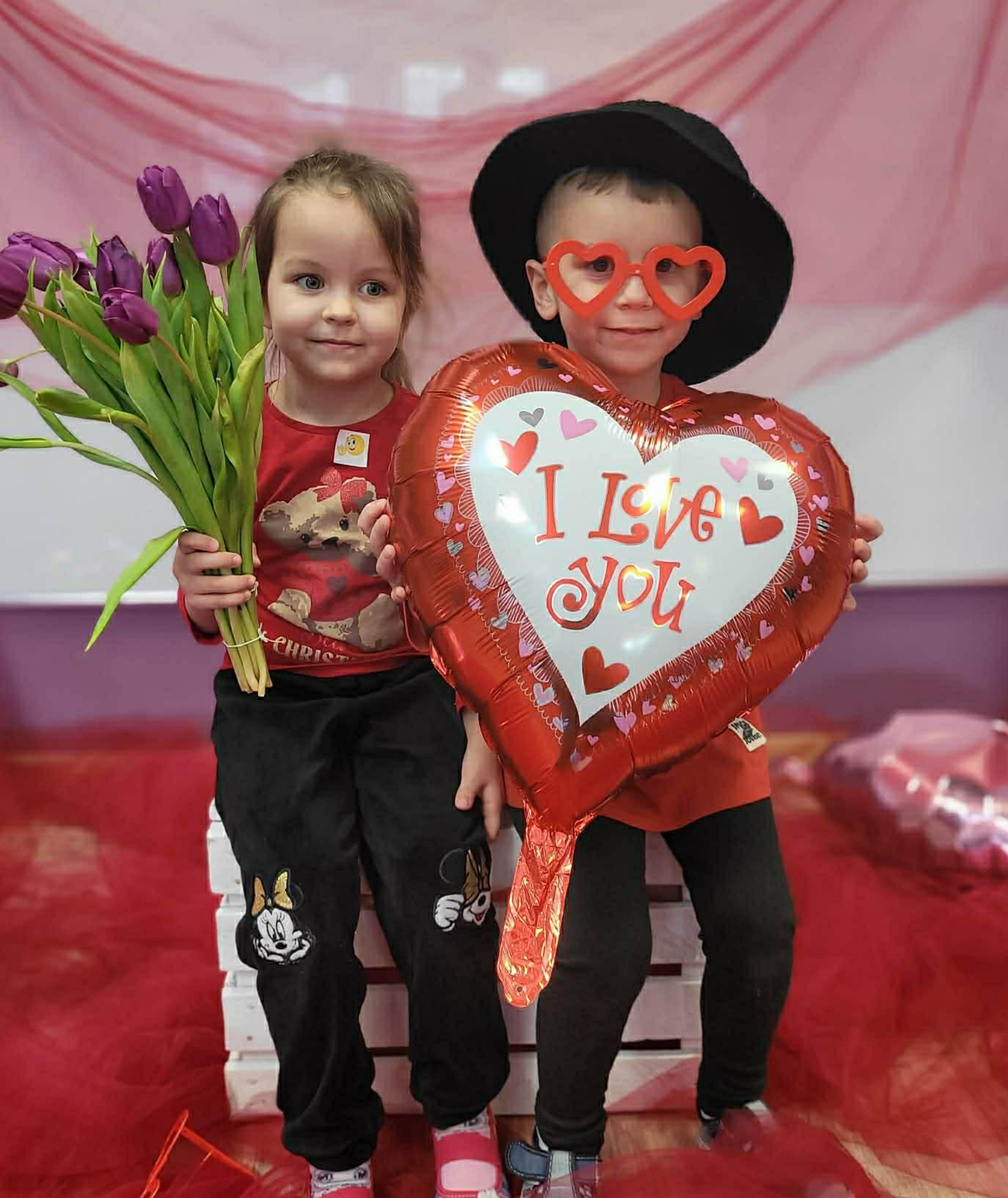 Maluszki i starszaki również świętowały. Pozowały z wielką radością do zdjęć przy walentynkowej ściance, a uśmiechy nie schodziły im z twarzy. Nie zabrakło, także kreatywnych aktywności plastycznych. Przedszkolaki wykonywały piękne prace – wyklejały serca z plasteliny, rysowały po śladzie, wycinały oraz ozdabiały walentynkowe kształty.