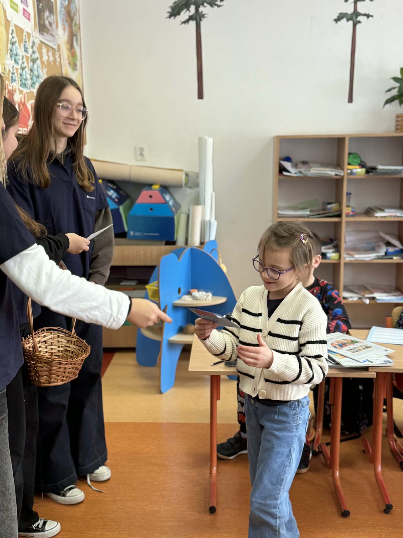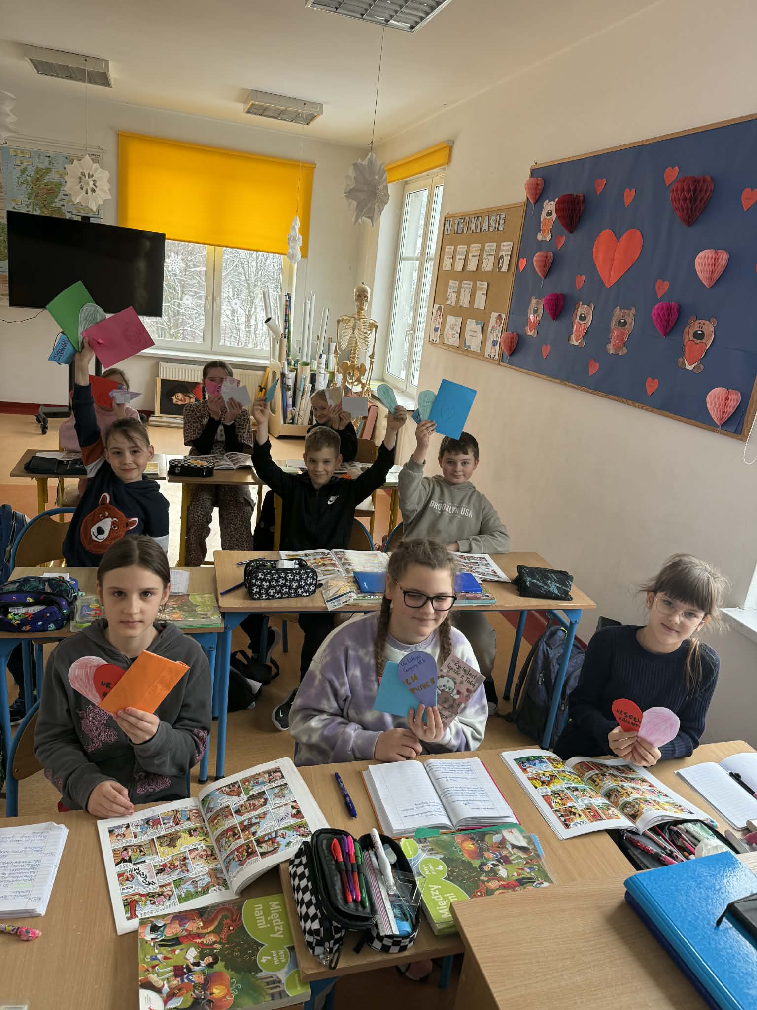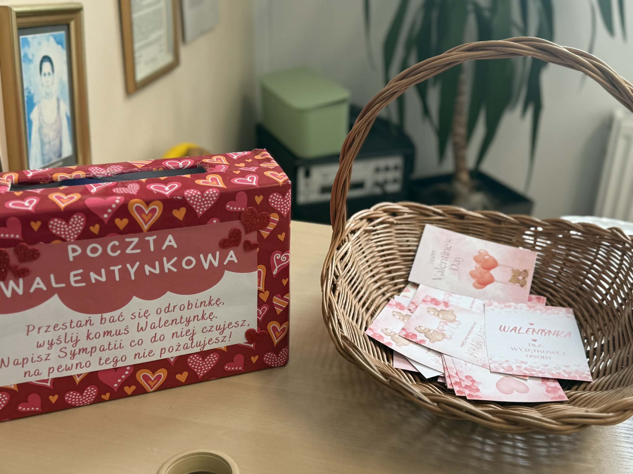 Dużym zainteresowaniem cieszyła się poczta walentynkowa, dzięki której uczniowie mogli przekazać kolegom, koleżankom oraz nauczycielom miłe życzenia i serdeczne wiadomości. Kartki z życzeniami były dostarczane do adresatów przez szkolne listonoszki, co sprawiło wszystkim wiele radości.