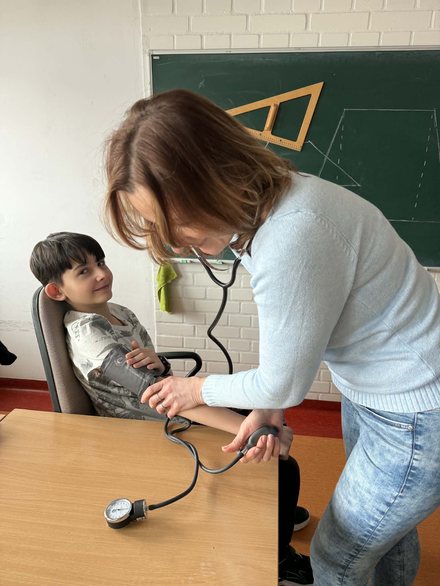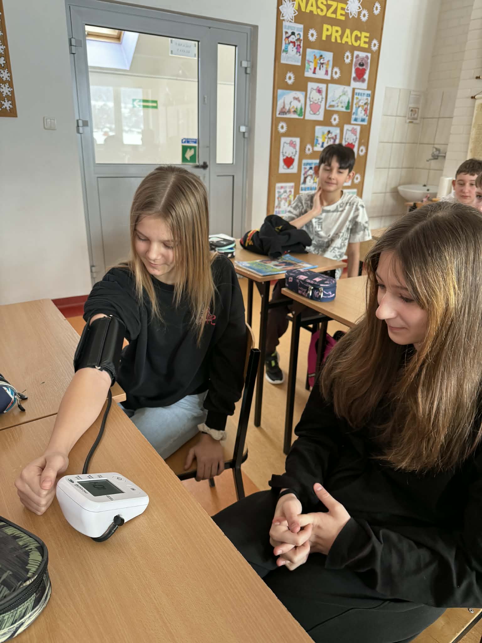 Szkolna pielęgniarka przeprowadziła w starszych klasach akcję edukacyjną, podczas której uczniowie obejrzeli filmik dotyczący pracy serca oraz mogli dowiedzieć się, jak dbać o układ krążenia. Chętni uczniowie mieli również możliwość zmierzenia ciśnienia oraz tętna.