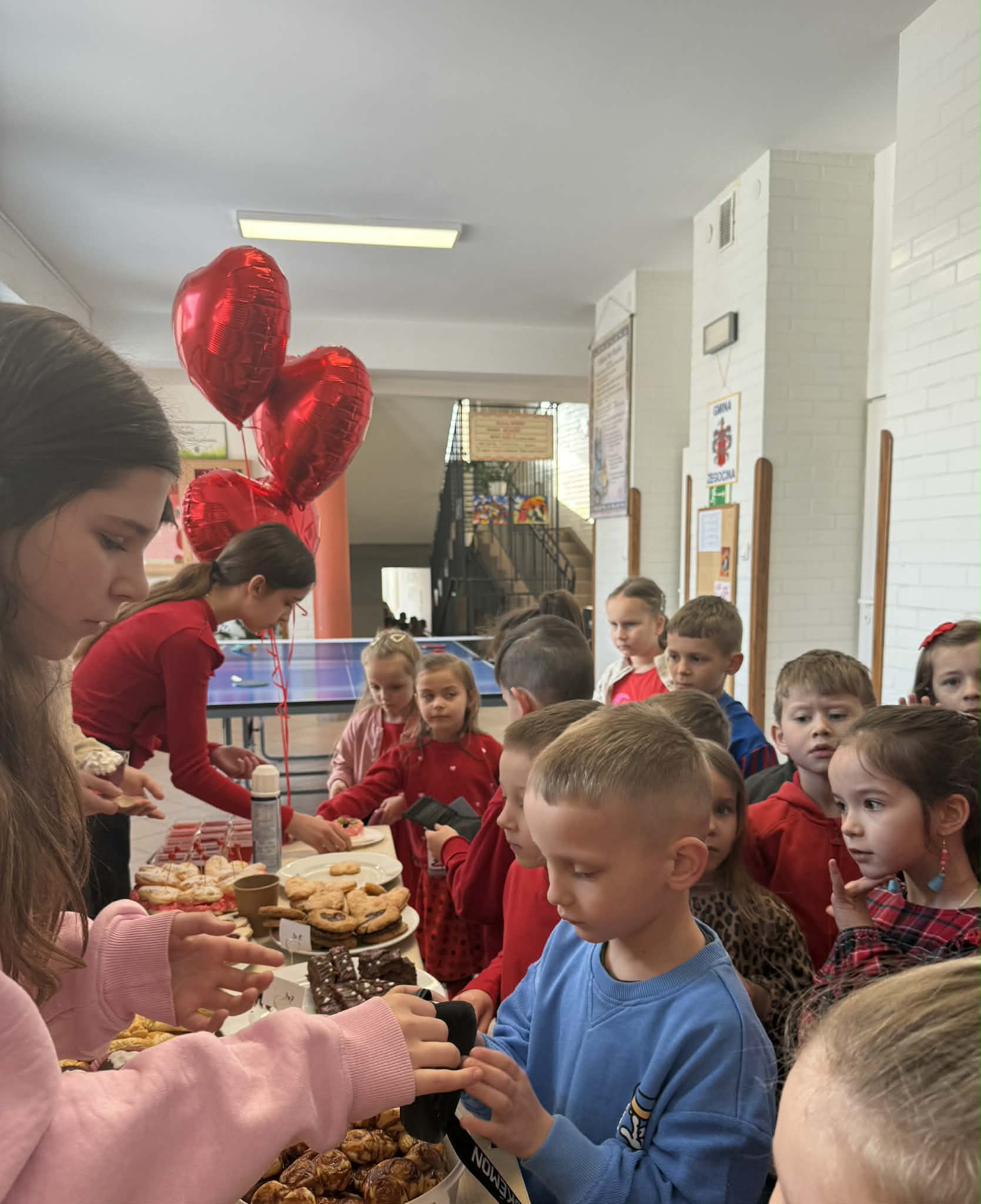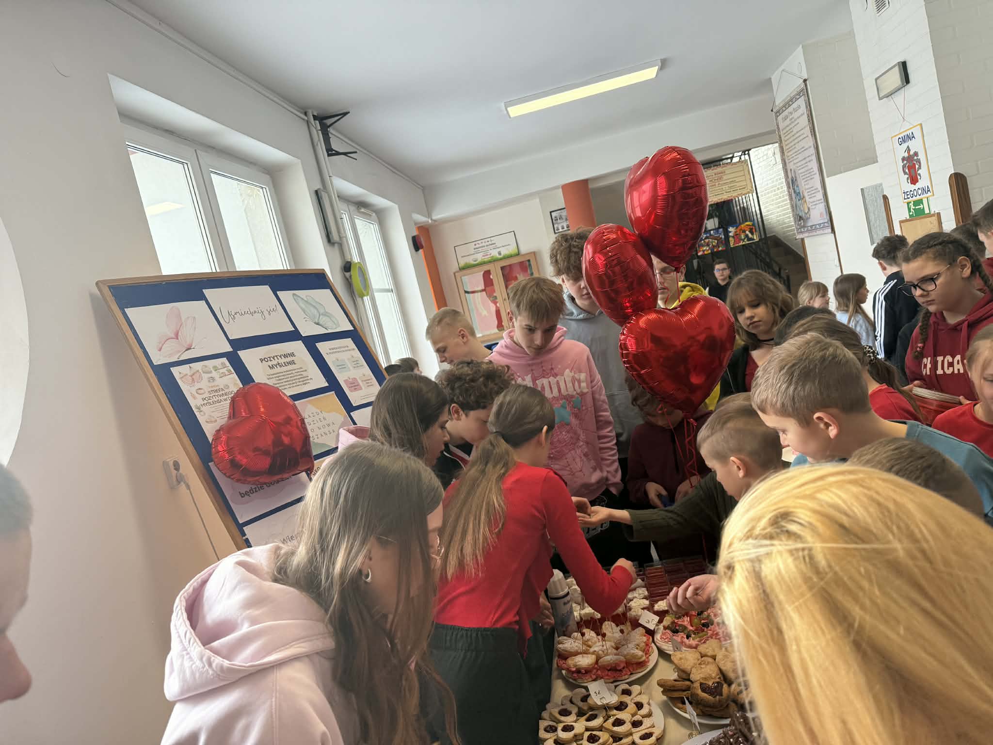 Kolejną atrakcją był kiermasz walentynkowy, podczas którego można było zakupić słodkości i kartki walentynkowe. Stoisko cieszyło się dużą popularnością i stało się miejscem spotkań oraz wspólnych rozmów uczniów.