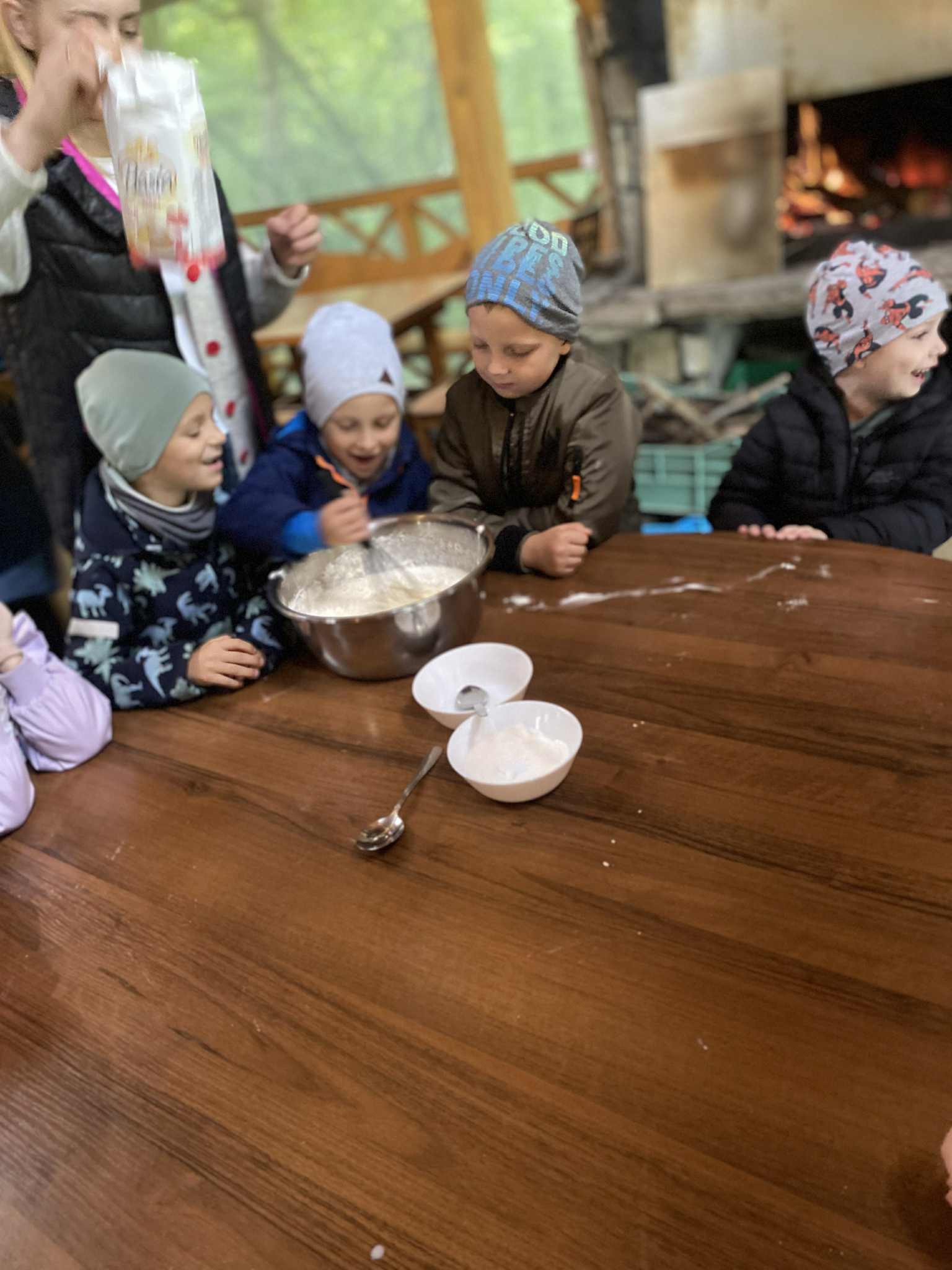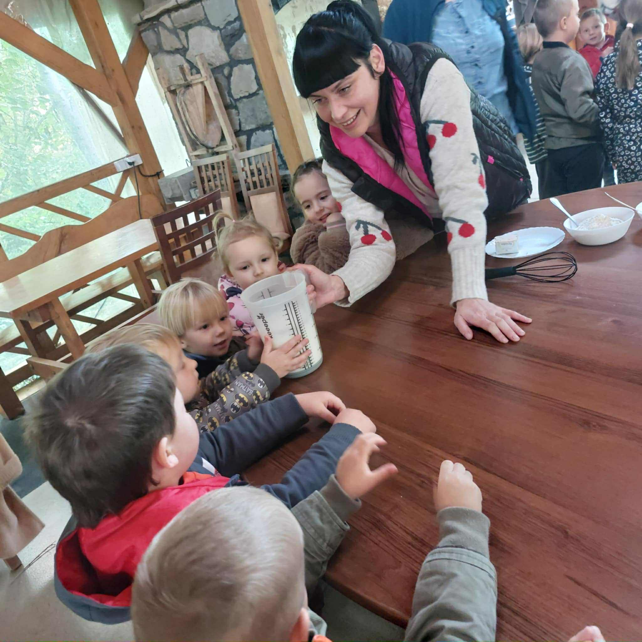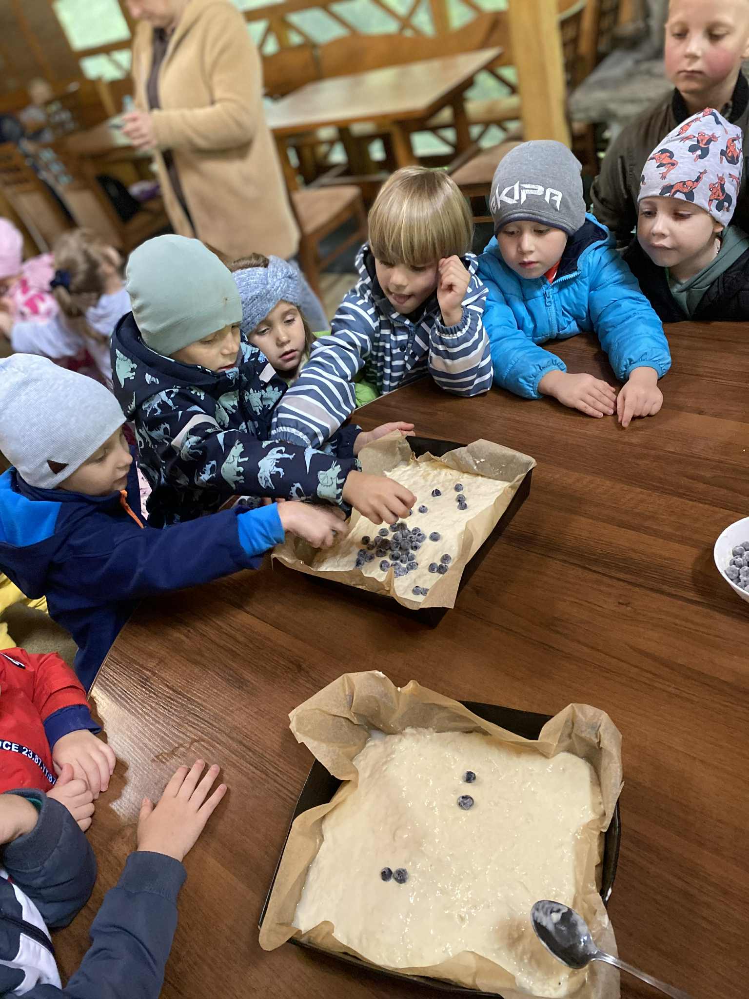 Dnia 8 października 2025 roku oddziaÅ‚ przedszkolny wybraÅ‚ siÄ™ na wycieczkÄ™ do WiÅ›niowego Gaju w KobyÅ‚czynie. Na poczÄ…tku panie prowadzÄ…ce przywitaÅ‚y dzieci pysznymi rogalikami i sokiem owocowym, po czym poinformowaÅ‚y dzieci o zasadach pobytu. Przedszkolaki miaÅ‚y okazjÄ™ karmić zwierzÄ…tka oraz uczestniczyć w ciekawych warsztatach z pieczenia ciasta i ziemniaczków. Po zajÄ™ciach wszyscy Å›wietnie bawili siÄ™ na dmuchanej zjeżdżalni i placu zabaw.