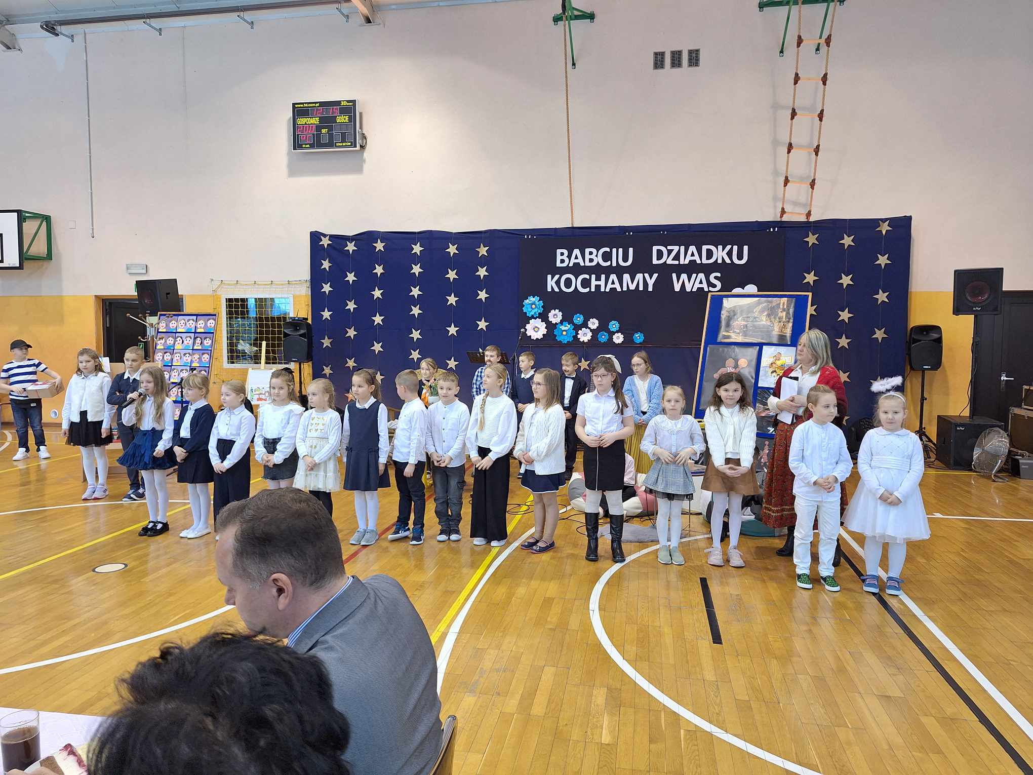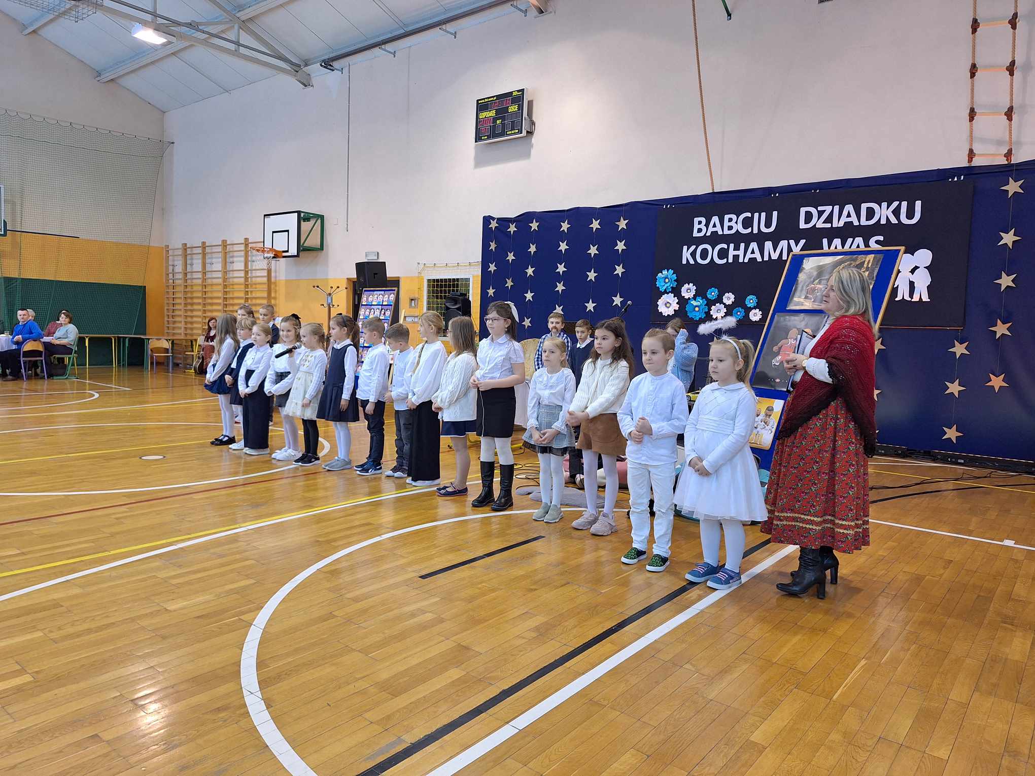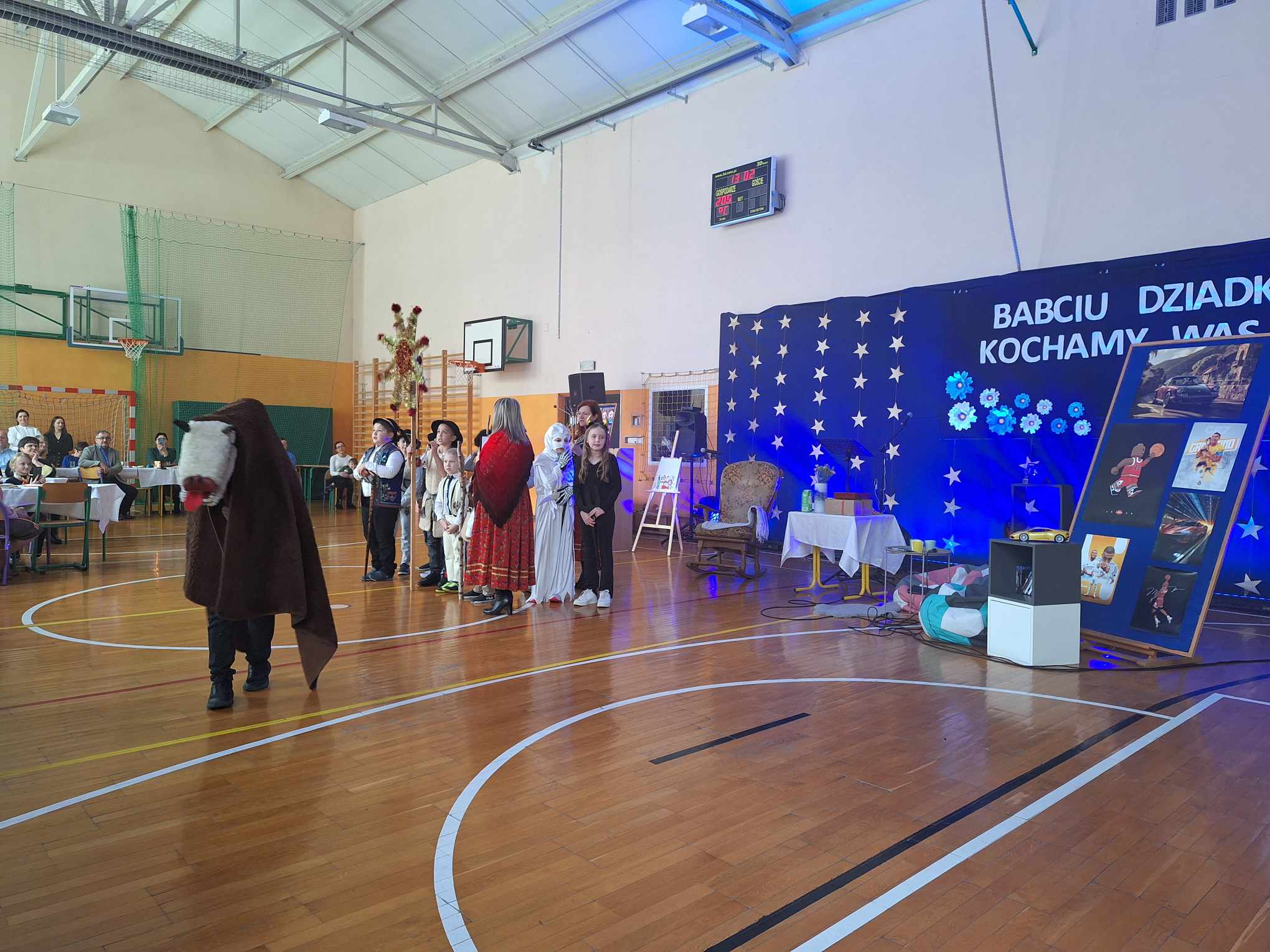 16 stycznia w naszej szkole odbyła się wyjątkowa uroczystość z okazji Dnia Babci i Dziadka, rozpoczęła ją pani dyrektor Lucyna Nowak, serdecznie witając przybyłych gości i składając im życzenia zdrowia, radości oraz nieustającej miłości ze strony wnuków. Wśród zaproszonych gości znaleźli się wójt gminy, pan Wojciech Wrona, oraz proboszcz parafii ks. Bogusław Pasierb, którzy podkreślili znaczenie roli babć i dziadków w rodzinach oraz ich nieoceniony wkład w wychowanie młodego pokolenia. Dzieci z wielkim zaangażowaniem przygotowały program artystyczny, w którym nie zabrakło wzruszających wierszy oraz pięknych występów. Punktem kulminacyjnym była scenka, niosąca ważne przesłanie: