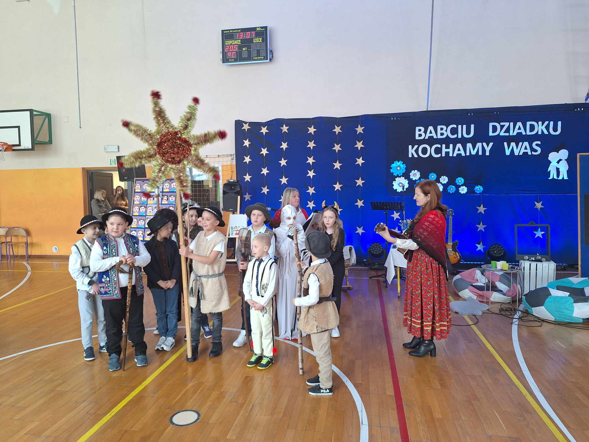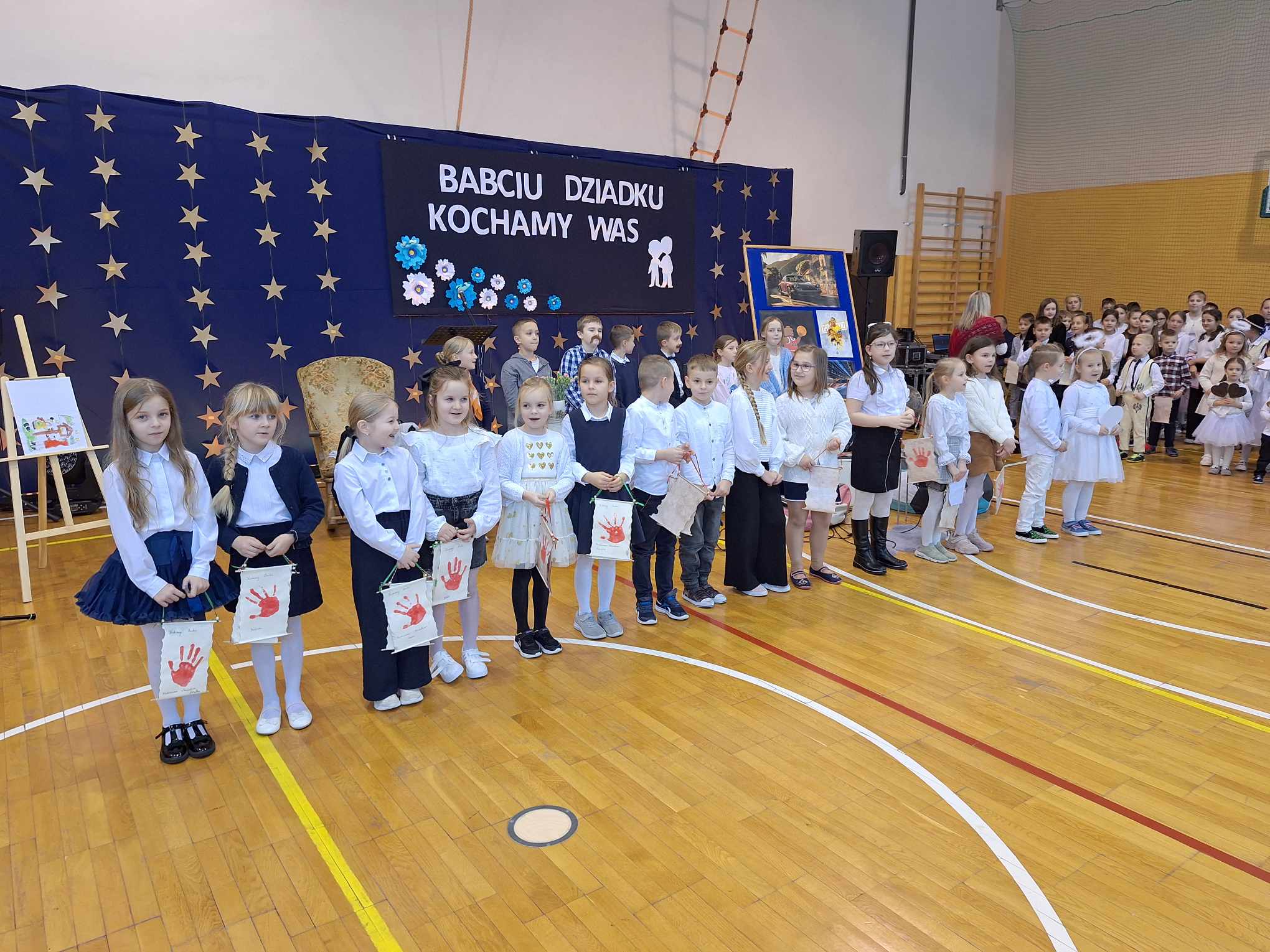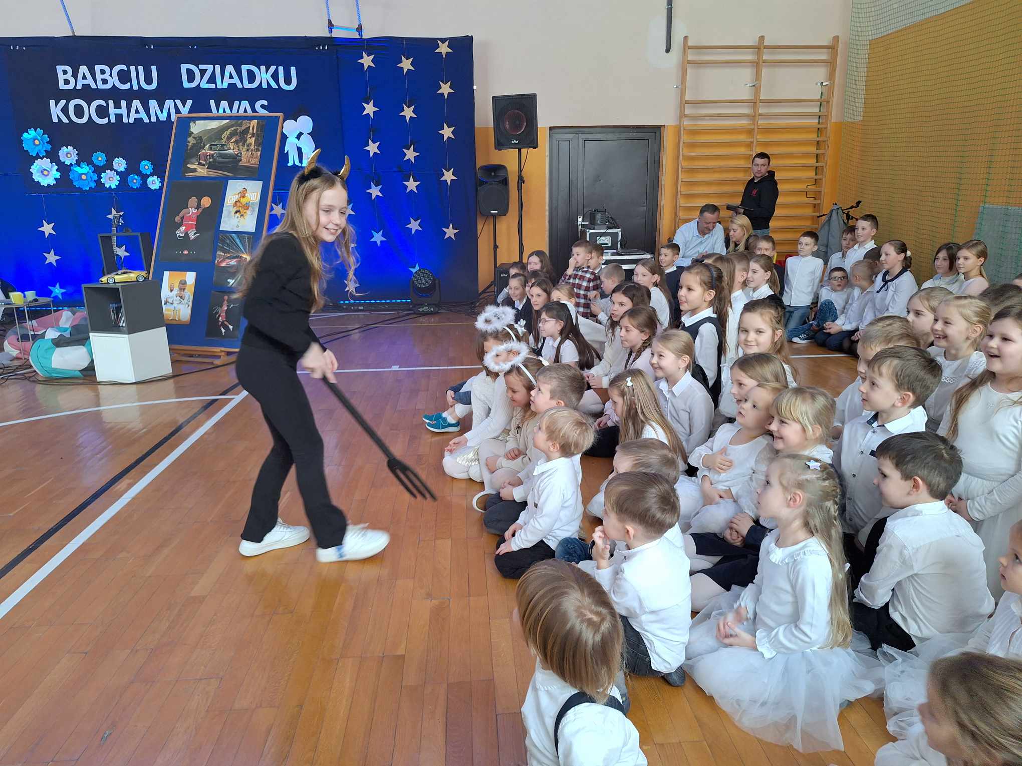 16 stycznia w naszej szkole odbyła się wyjątkowa uroczystość z okazji Dnia Babci i Dziadka, rozpoczęła ją pani dyrektor Lucyna Nowak, serdecznie witając przybyłych gości i składając im życzenia zdrowia, radości oraz nieustającej miłości ze strony wnuków. Wśród zaproszonych gości znaleźli się wójt gminy, pan Wojciech Wrona, oraz proboszcz parafii ks. Bogusław Pasierb, którzy podkreślili znaczenie roli babć i dziadków w rodzinach oraz ich nieoceniony wkład w wychowanie młodego pokolenia. Dzieci z wielkim zaangażowaniem przygotowały program artystyczny, w którym nie zabrakło wzruszających wierszy oraz pięknych występów. Punktem kulminacyjnym była scenka, niosąca ważne przesłanie: