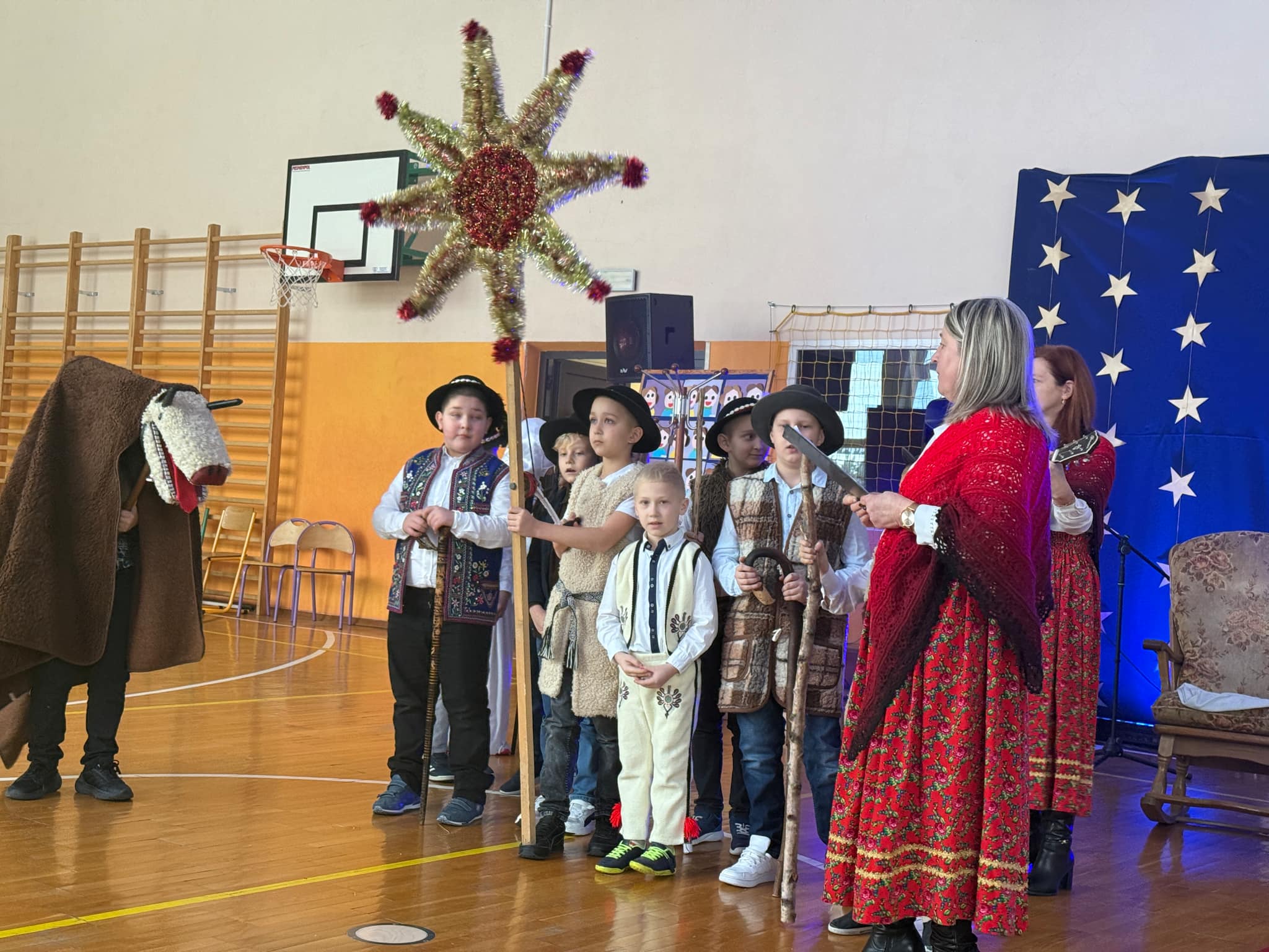 Nie zabrakło również występu tradycyjnej grupy kolędniczej, która zaprezentowała piękne polskie kolędy. Dziadkowie i babcie z uśmiechem na twarzy włączali się do wspólnego śpiewania, ciesząc się każdą chwilą spędzoną z wnukami.