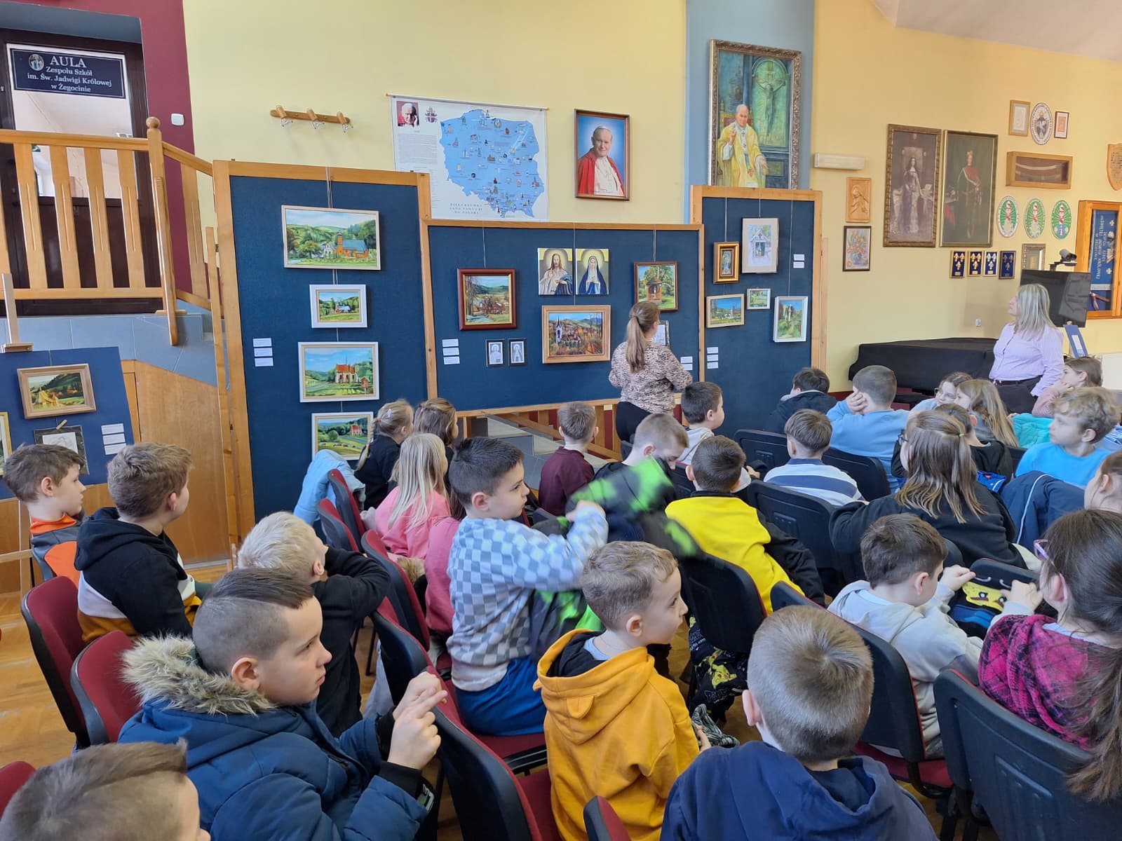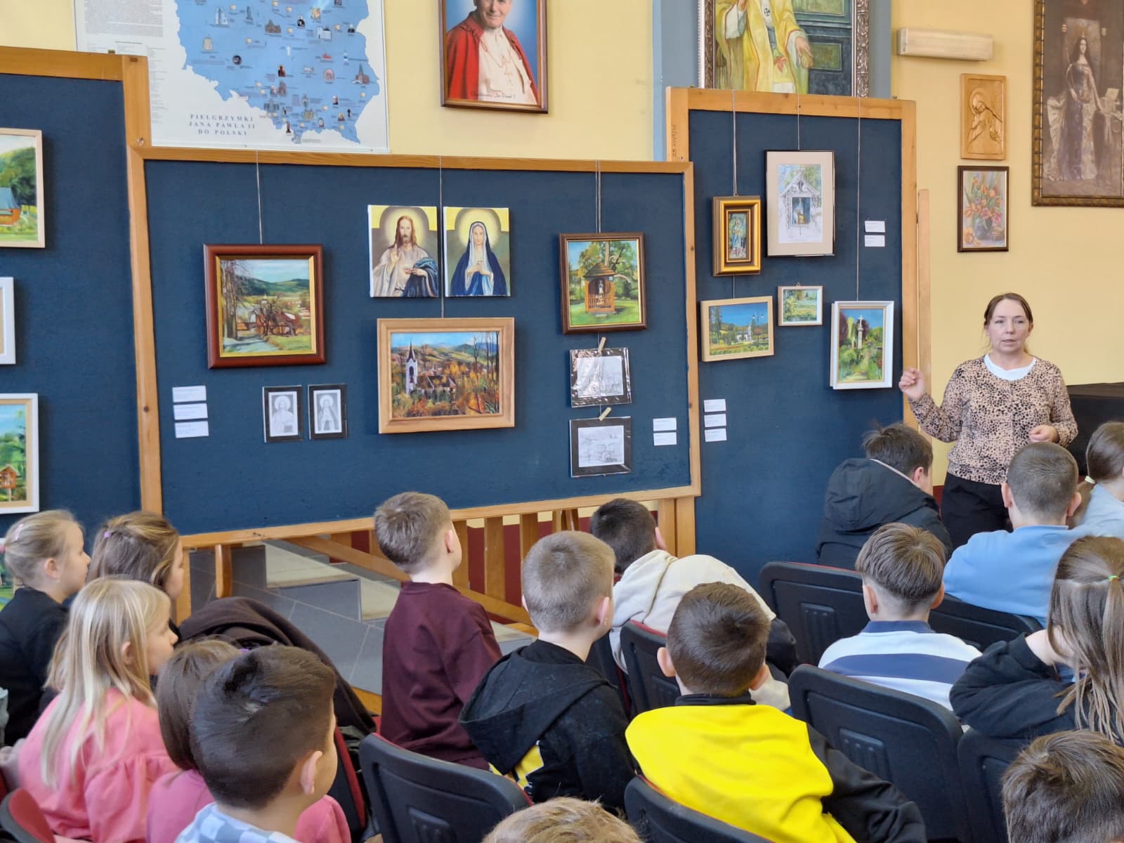 Artystka przeprowadziła krótką prelekcję, opowiadając o powstawaniu obrazów oraz dziejach uwiecznionych obiektów. Spotkanie było wartościową lekcją historii i sztuki, która pozwoliła uczniom spojrzeć na nasze dziedzictwo z nowej perspektywy.