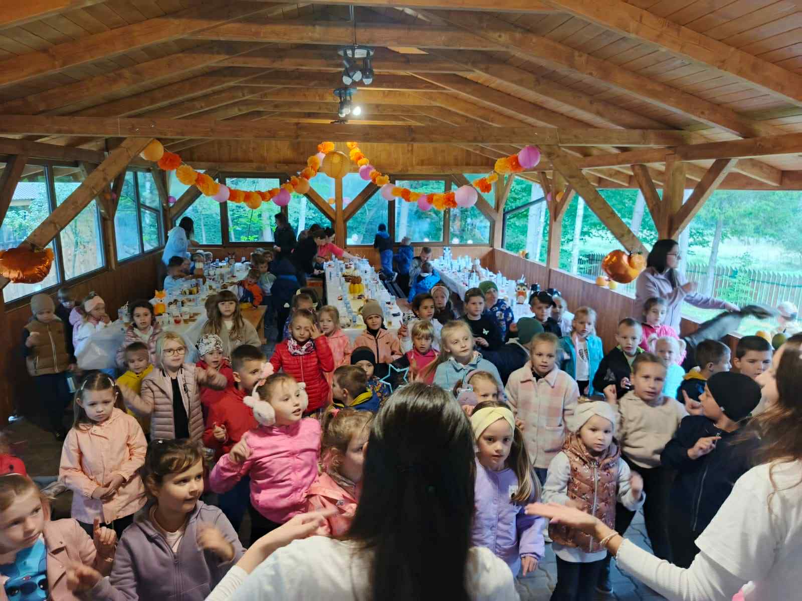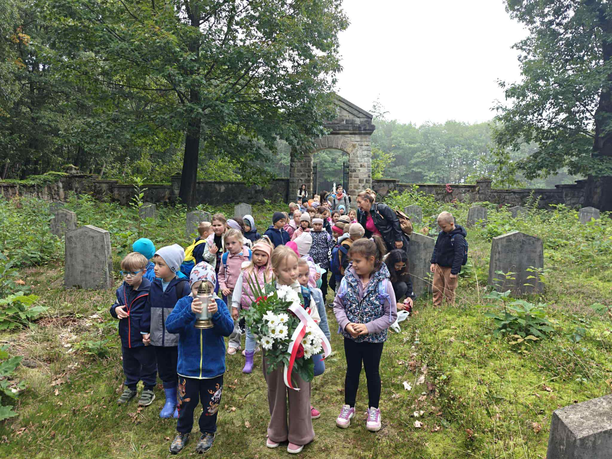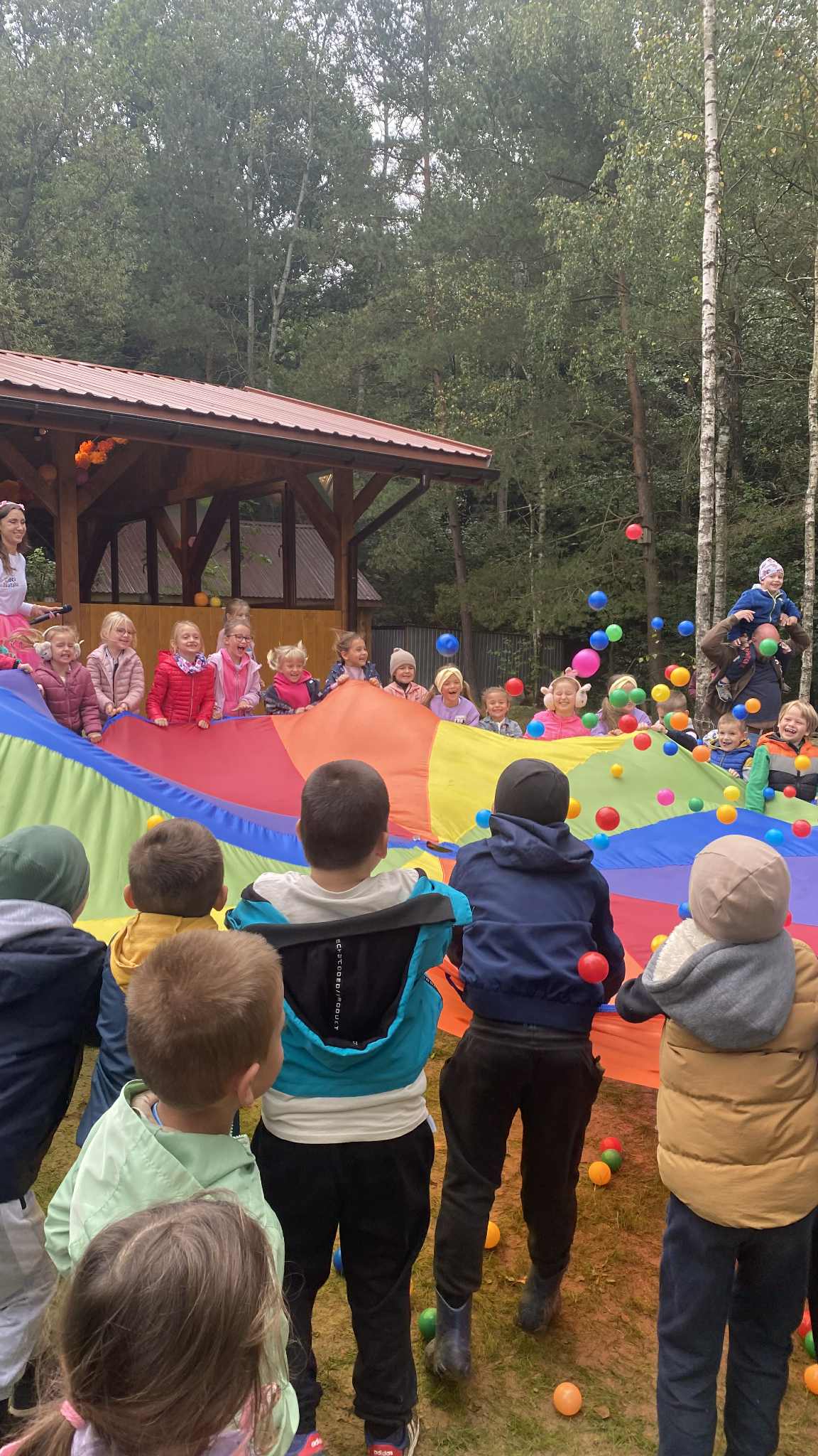 Grupy sześciolatków wraz z opiekunkami zostały najpierw dowiezione autobusem w okolice cmentarza wojennego nr 303 w Rajbrocie. Tam na dzieci czekali leśnicy – Pan Marek Orynczak oraz Pan Tymoteusz Podwyszyński. Po powitaniu wszyscy udali się na pobliski cmentarz, na którym pochowano żołnierzy I wojny światowej. Dzieci złożyły wiązankę oraz znicze pod pomnikiem, a później zwiedziły cmentarz. Następnie dzieci udały się pieszo w kierunku Domku Myśliwskiego w Łąkcie Górnej. Po drodze przewodnicy zdradzili dzieciom wiele leśnych tajemnic. Przedszkolaki podziwiały jesienne barwy lasu, obserwowały różne gatunki drzew i grzybów. Było to wspaniałe przeżycie dla nich. Po przybyciu na miejsce Pani Dyrektor Joanna Dunikowska powitała dzieci, opiekunów oraz gości wręczając pamiątkowe upominki. Dzieci powitał, również Wójt - Wojciech Wrona oraz Prezes Koła Łowieckiego „Ryś” w Żegocinie – Adam Durbas. Następnie Pani Dyrektor zaprosiła wszystkich na poczęstunek przygotowany przez rodziców. Po nabraniu sił przedszkolaki świetnie się bawiły w obecności Pań animatorek. Na koniec dzieci miały okazję uczestniczyć w warsztatach przeprowadzonych przez Panią Barbarę Halek, Przewodniczącą Komisji Promocji Łowiectwa PZŁ KO Kraków – na temat zwierząt leśnych. Po zakończonym pikniku poszczególne grupy, pełne wrażeń z powrotem wsiadały do autobusu i odjeżdżały do swoich przedszkoli.