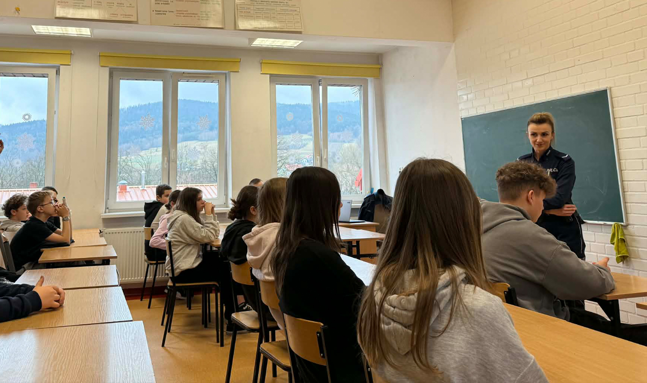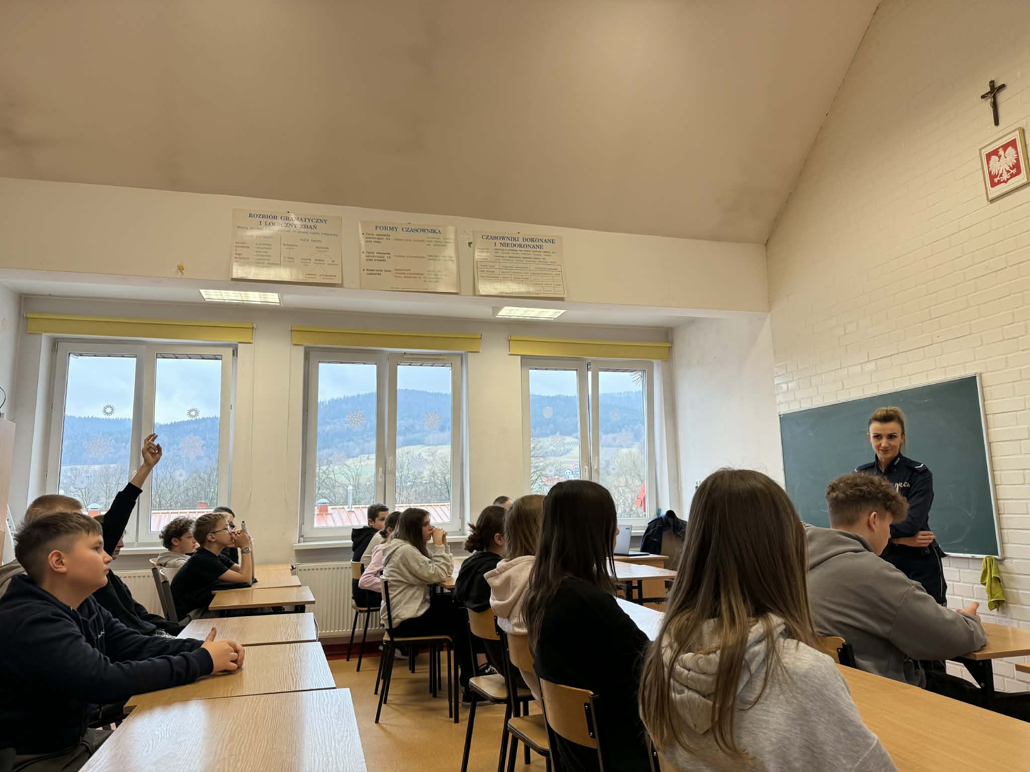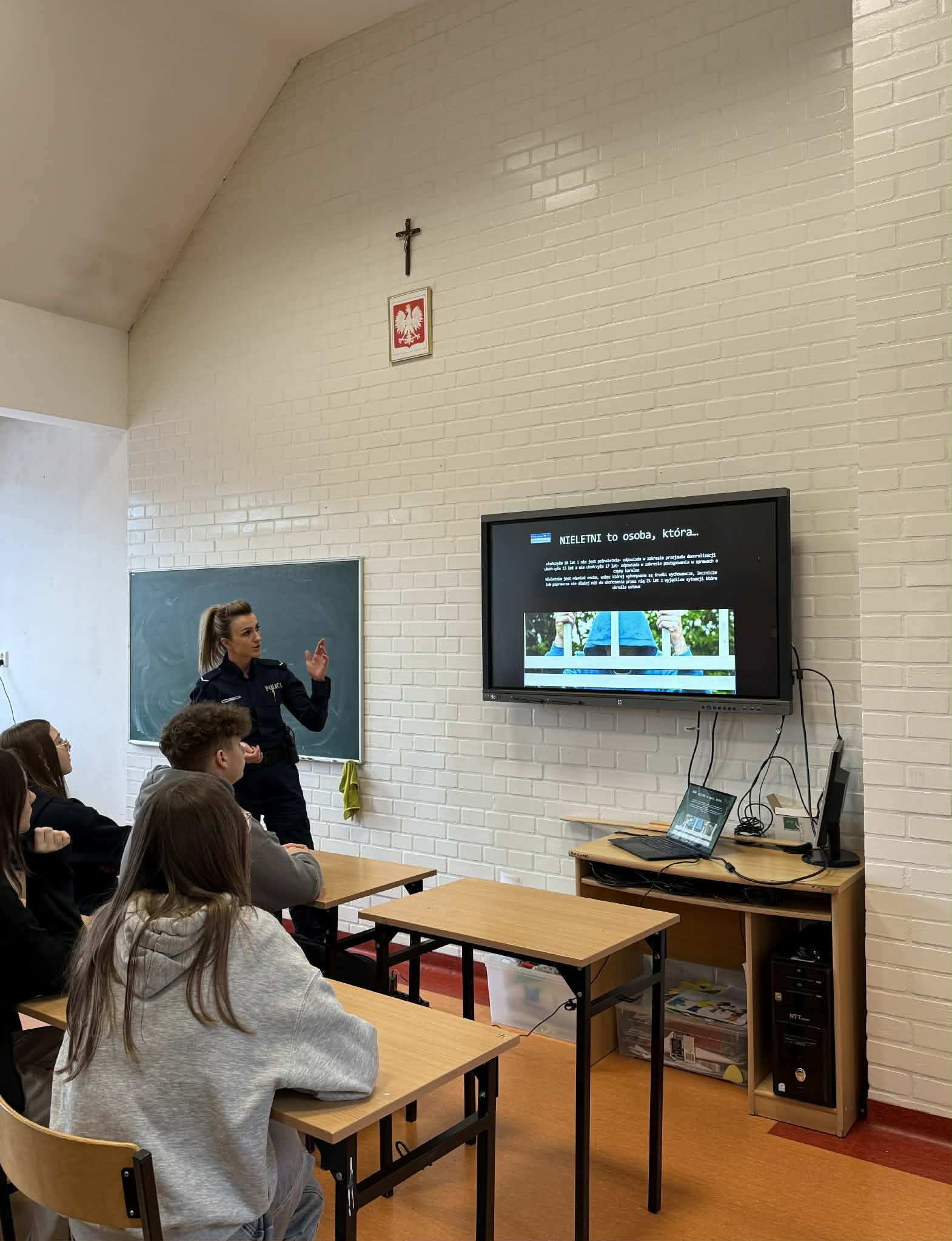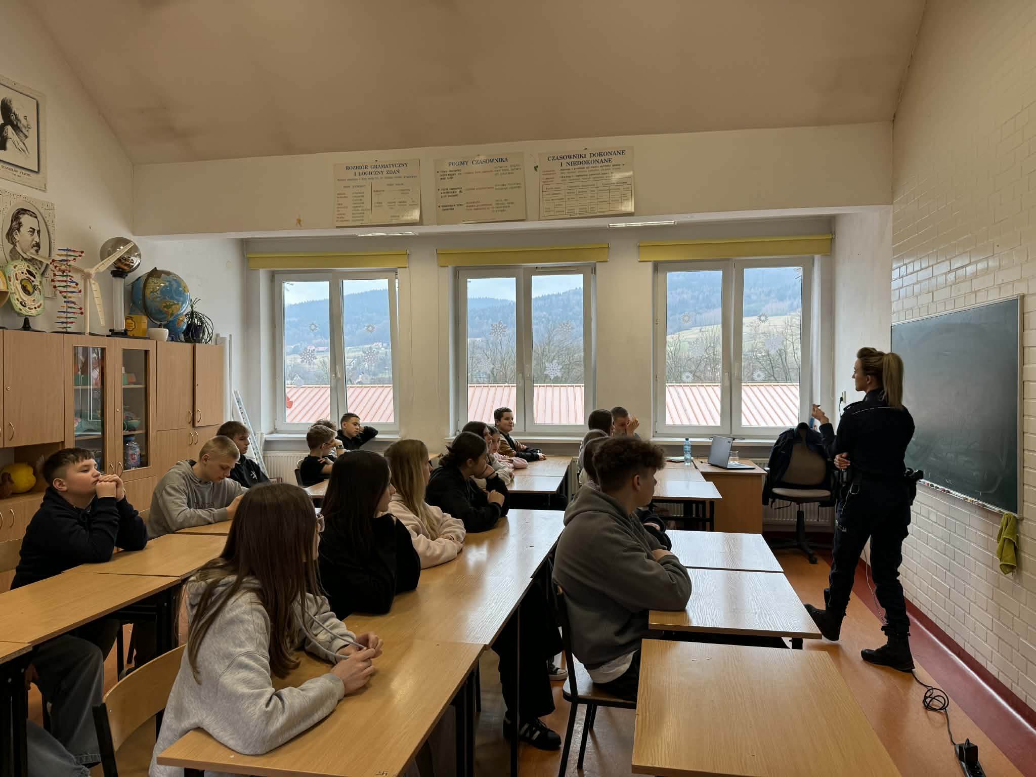 W naszej szkole odbyły się zajęcia profilaktyczne dla uczniów klas 5–6 oraz 7–8, które poprowadziła sierż. Iwona Duśko.