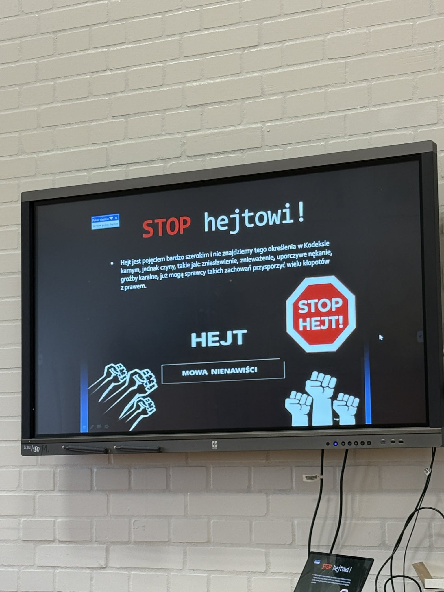 Podczas spotkania poruszono ważne tematy związane z bezpieczeństwem dzieci i młodzieży. Uczniowie dowiedzieli się, jakie konsekwencje prawne niesie za sobą cyberprzemoc oraz jak poważne skutki mogą mieć przemoc słowna i fizyczna. Prowadząca zwróciła uwagę na odpowiedzialność za własne zachowanie oraz wskazała, jak reagować w sytuacjach zagrożenia.