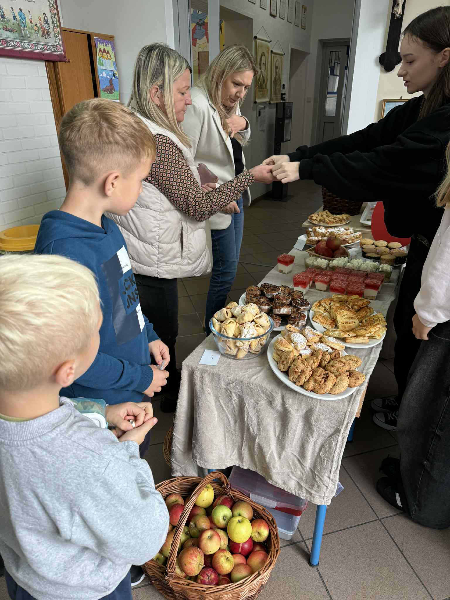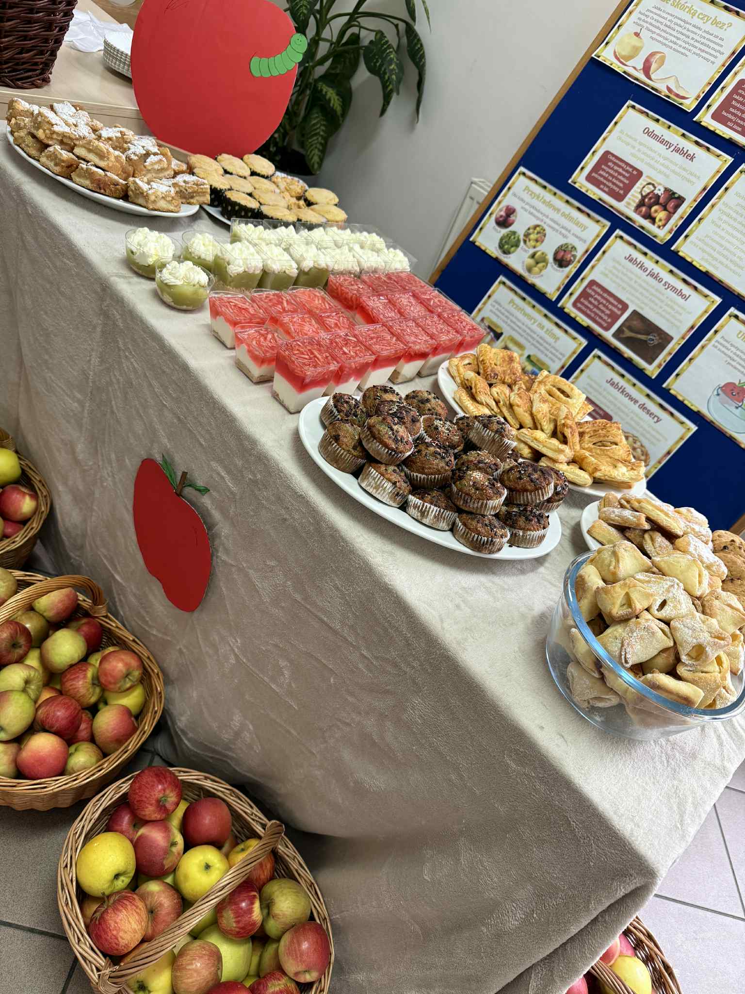 Na stoiskach można byÅ‚o znaleźć mnóstwo smakoÅ‚yków przygotowanych przez uczniów, rodziców – od chrupiÄ…cych jabÅ‚ek w naturalnej postaci, przez deserki, aż po szarlotki, babeczki i inne wypieki. Wszystko oczywiÅ›cie z dodatkiem naszego gÅ‚ównego bohatera – jabÅ‚ka.