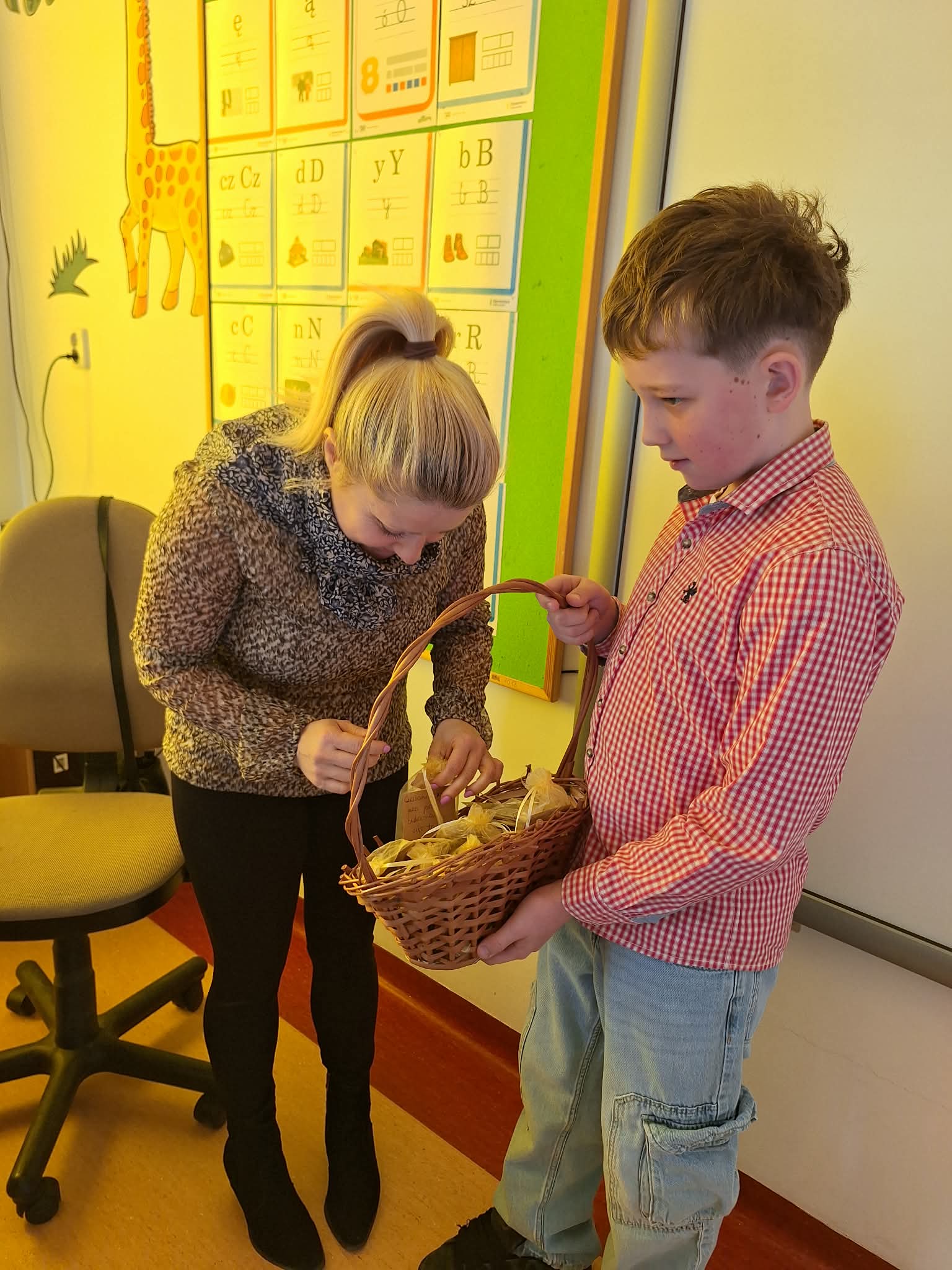 Ten sympatyczny gest wywołał wiele uśmiechów i sprawił, że w szkole zapanowała wyjątkowo radosna atmosfera. Była to piękna okazja, aby podziękować wszystkim kobietom za ich codzienną życzliwość i obecność w naszej szkolnej społeczności.