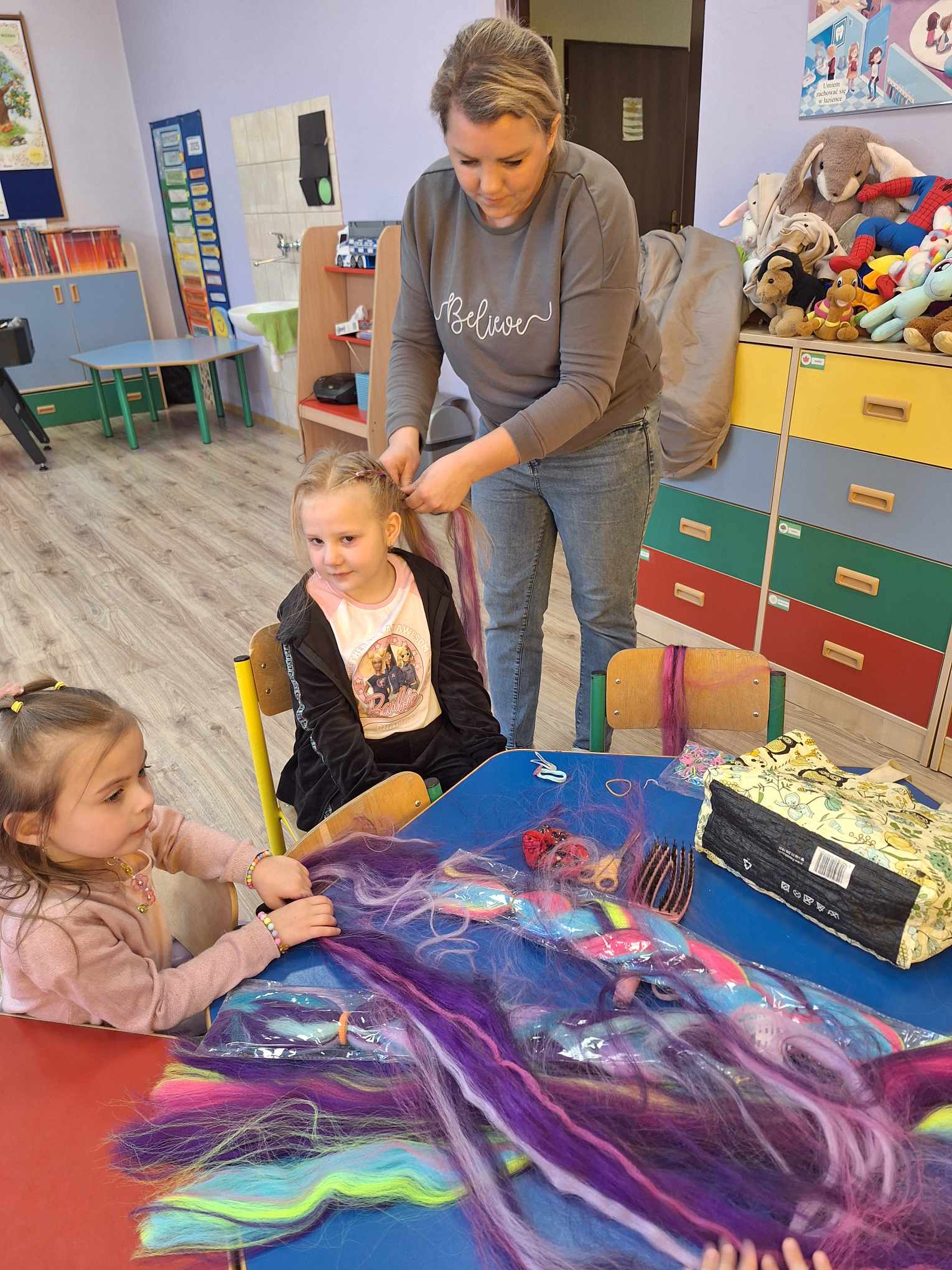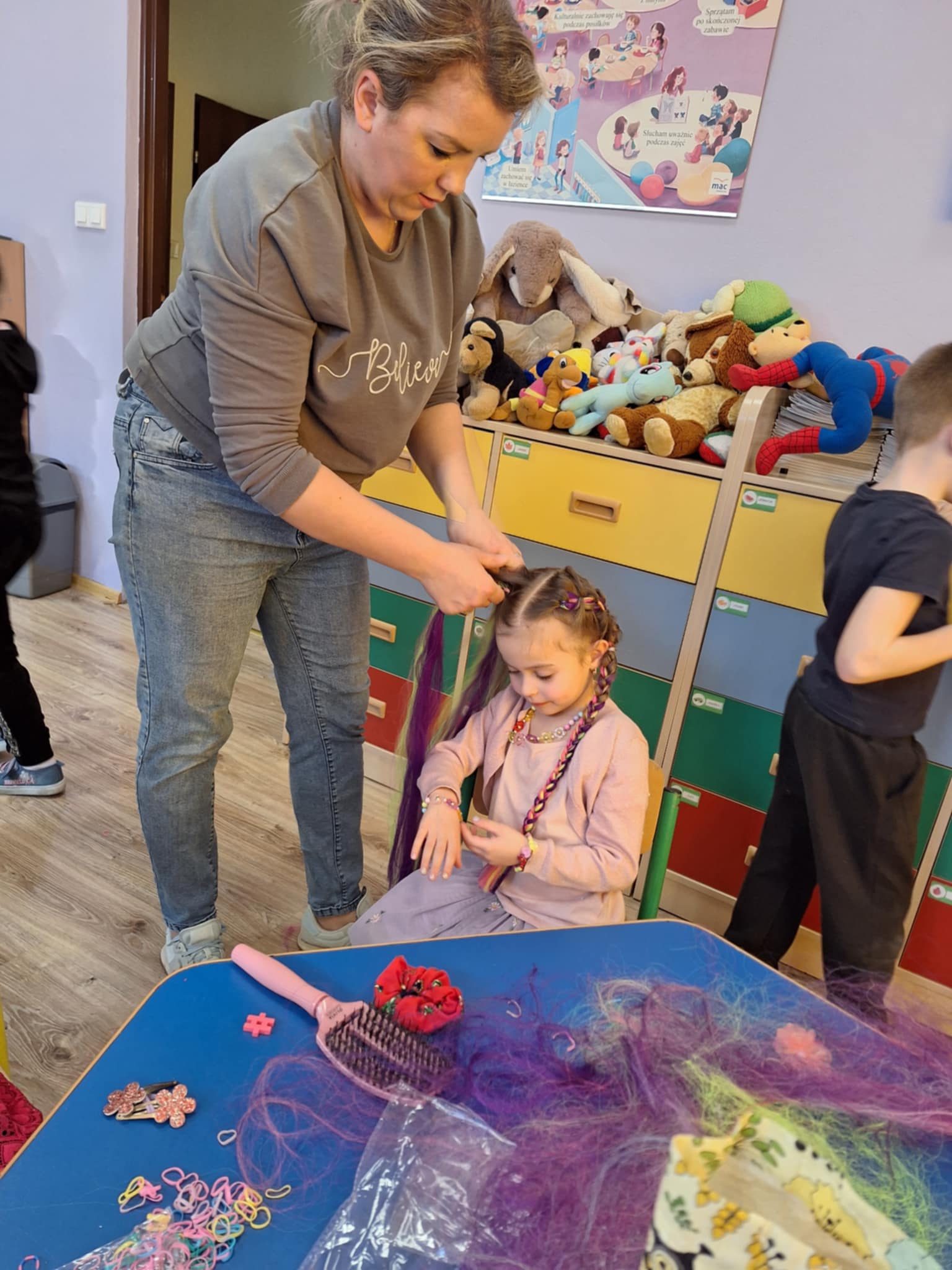 Dzień Kobiet w przedszkolu był pełen relaksu i przyjemności! Nasze dziewczynki miały okazję poczuć się wyjątkowo dzięki mini spa – mogły skorzystać z masażu twarzy, pięknie pomalować paznokcie oraz uczesać włosy. Całości dopełniła spokojna, relaksacyjna muzyka, która pozwoliła im na chwilę odpoczynku i odprężenia. Serdecznie dziękujemy mamom Tymusia, Maksia i Martynki za ogromne zaangażowanie i pomoc w organizacji tego wyjątkowego dnia!