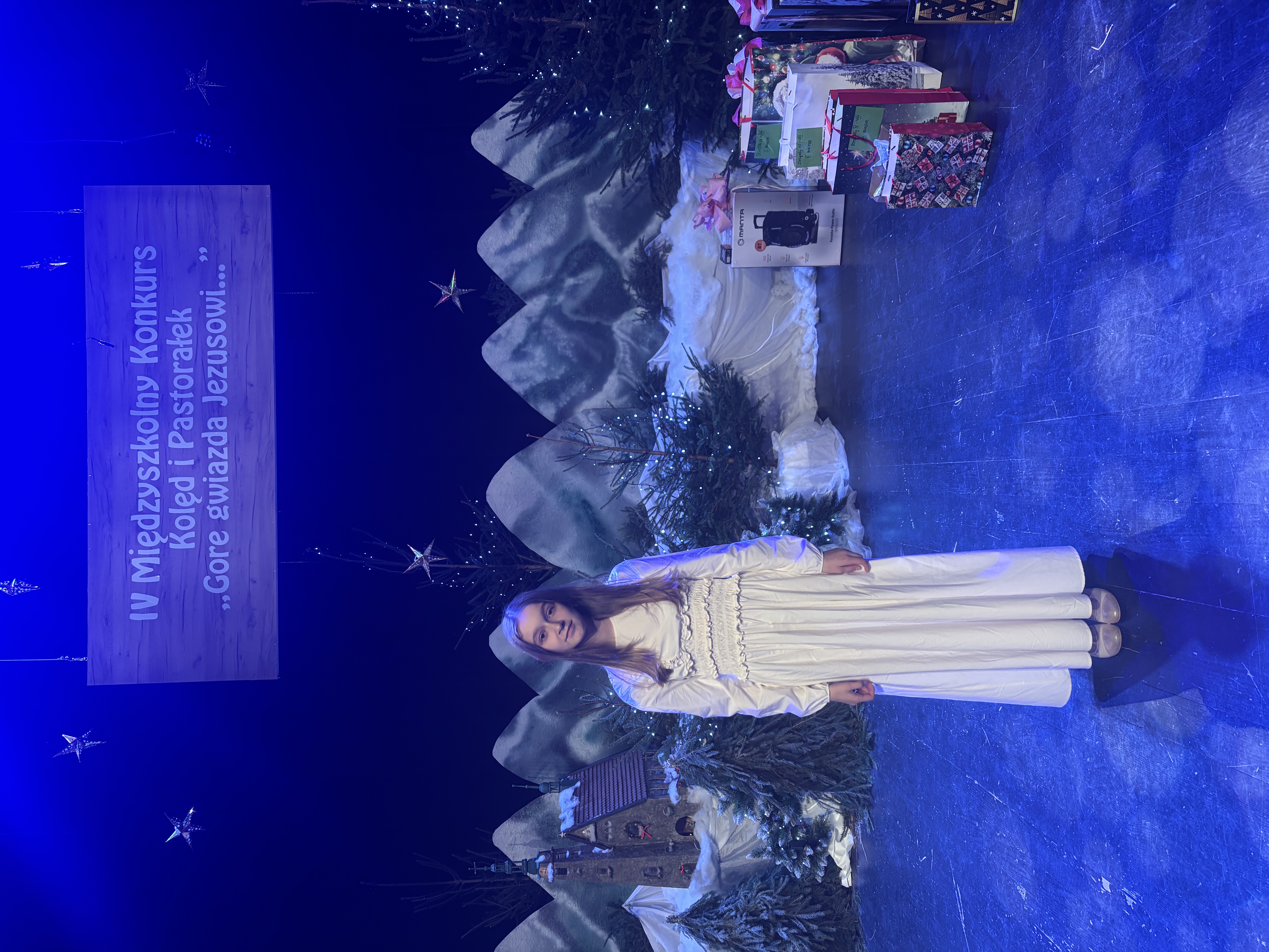 Dnia 10 grudnia Patrycja Jaworska braÅ‚a udziaÅ‚ w XVIII wojewódzkim konkursie piosenki Anielska Nutka, w którym zdobyÅ‚a II miejsce w kategorii wiekowej 12-13 lat. Natomiast 13 grudnia Patrycja braÅ‚a udziaÅ‚ w IV MiÄ™dzyszkolnym Konkursie KolÄ™d i PastoraÅ‚ek „Gore Gwiazda Jezusowi” organizowanym przez NiepublicznÄ… Szkołę PodstawowÄ… SpecjalnÄ… „Zielony ZakÄ…tek” w Limanowej gdzie zdobyÅ‚a NagrodÄ™ Jury za wykonanie kolÄ™dy „NarodziÅ‚eÅ› siÄ™ - Cicha Noc”. Gratulujemy!