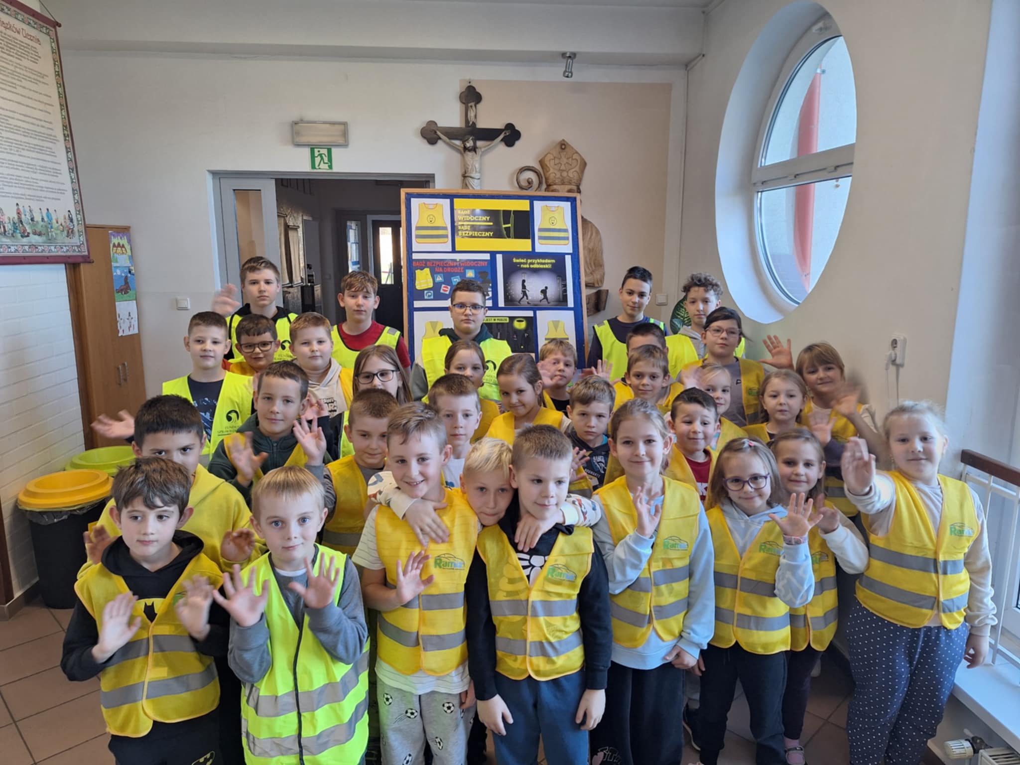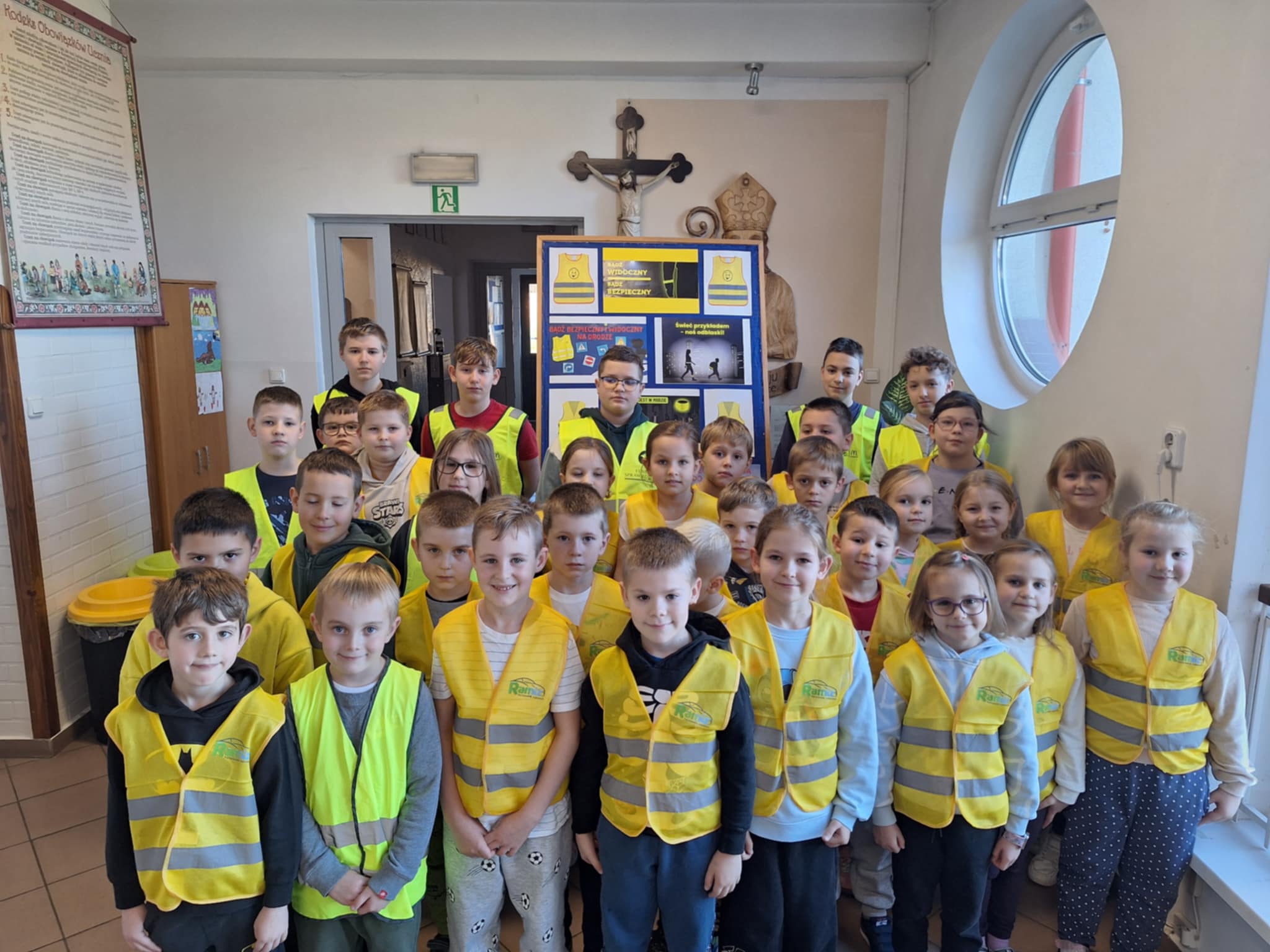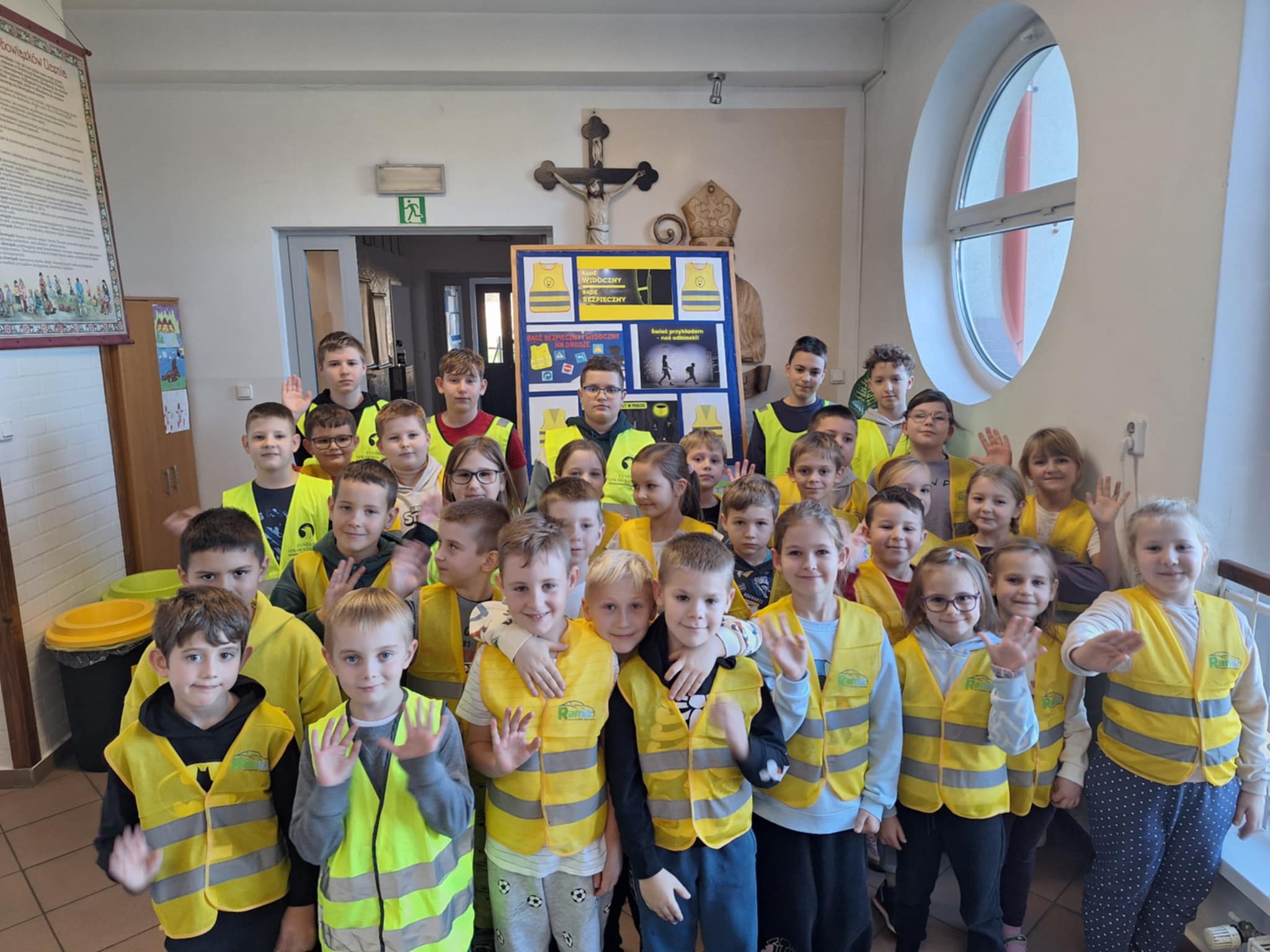 Jednym z pierwszych kroków było wyposażenie uczniów w elementy odblaskowe, aby zwiększyć ich widoczność w ruchu drogowym. W październiku zorganizowano ogólnoszkolny konkurs plastyczny „Bądź bezpieczny. Noś odblaski!”, do którego zgłosiło się 24 uczniów. Kolejnym etapem był konkurs wiedzy o bezpieczeństwie ruchu drogowego – udział wzięły 32 osoby z klas IV–VIII, a najlepsi otrzymali nagrody w postaci odblasków.