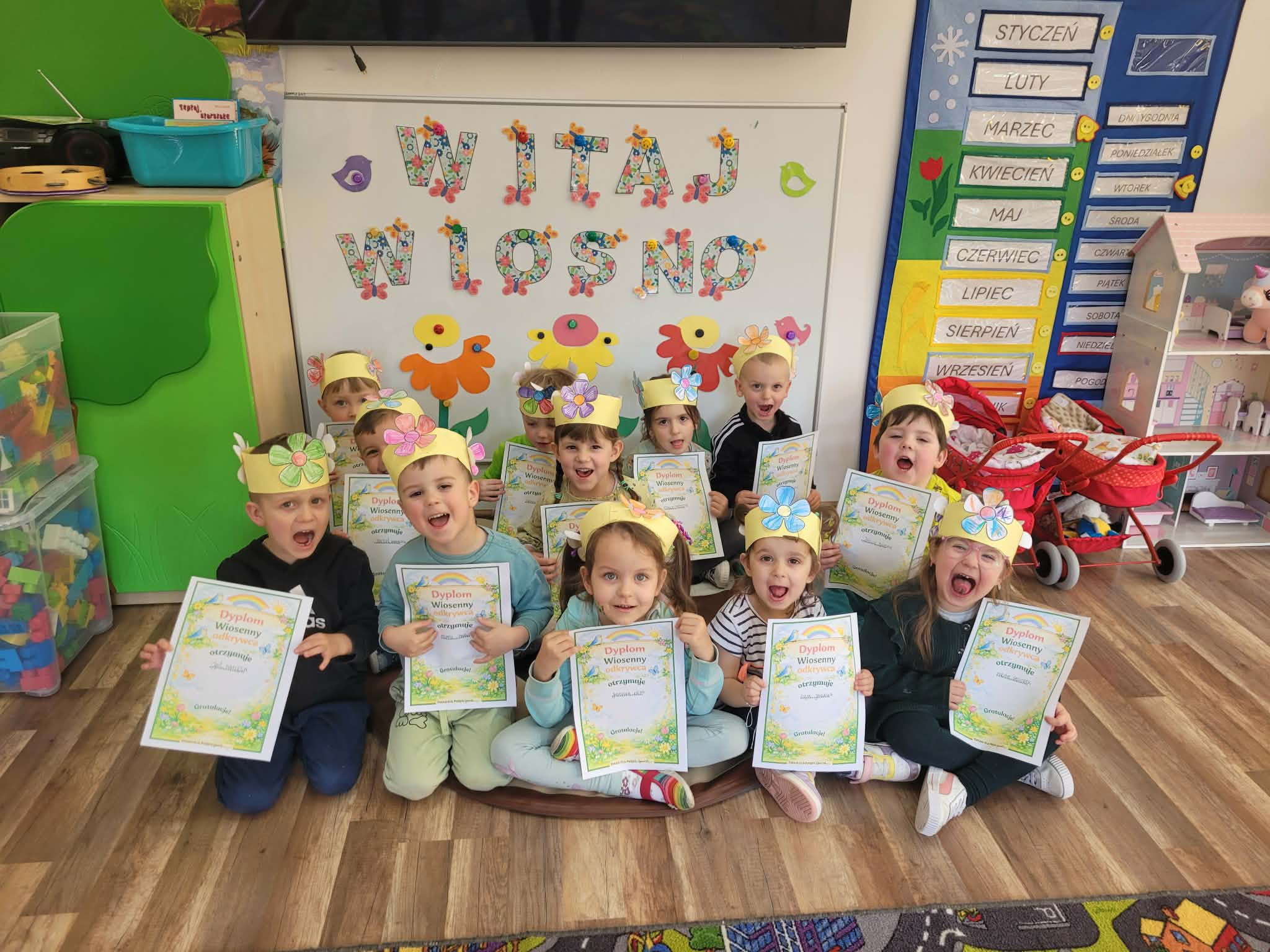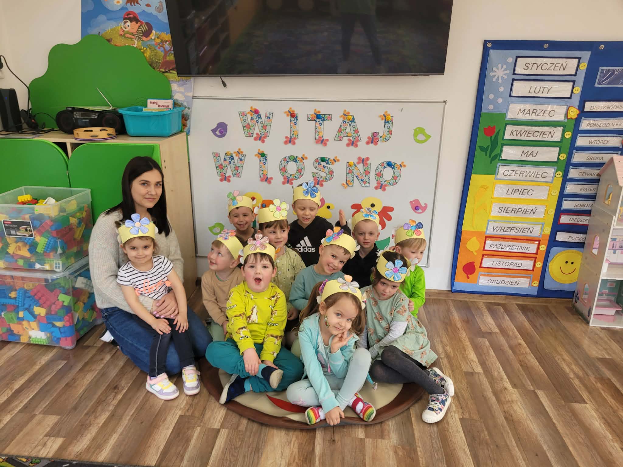 Pierwszy dzień wiosny oraz Światowy Dzień Zespołu Downa upłynęły w naszym przedszkolu w wyjątkowo radosnej, kolorowej i – nie ma co ukrywać – bardzo energicznej atmosferze. Tego dnia zarówno starszaki, jak i maluszki z pełnym zaangażowaniem powitały nową porę roku.