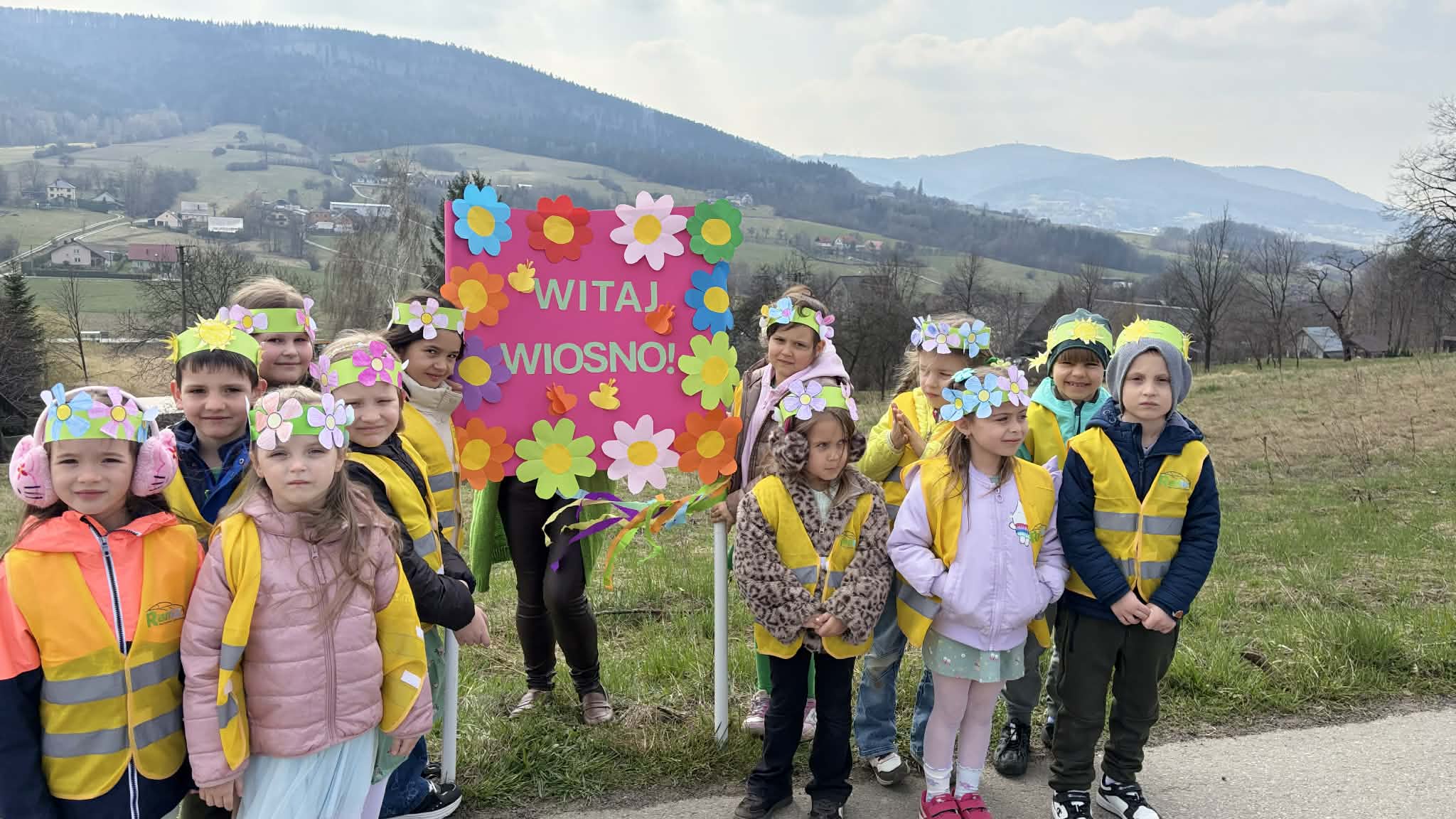 Kulminacyjnym punktem dnia był wspólny spacer. Przedszkolaki wyruszyły w radosnym, wiosennym korowodzie, niosąc transparent „Witaj Wiosno”. W ten sposób symbolicznie pożegnały zimę i powitały nową porę roku, ciesząc się pierwszymi jej oznakami.