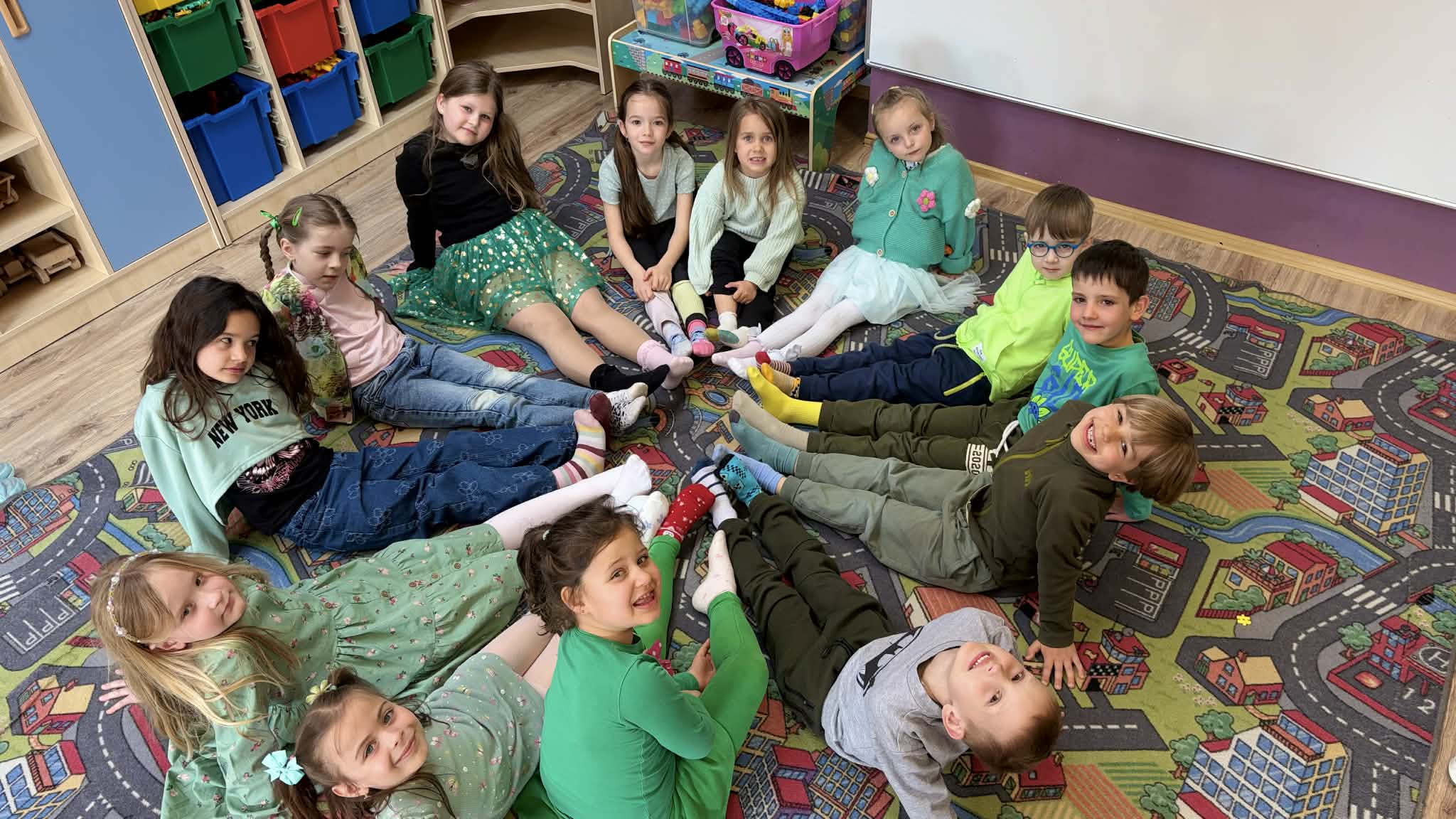 Dzieci przyszły ubrane bardzo wiosennie – dominował kolor zielony, symbolizujący budzącą się do życia przyrodę. Na znak solidarności z osobami z zespołem Downa przedszkolaki założyły dwie różne, kolorowe skarpetki, pokazując w prosty, ale wymowny sposób, że różnorodność jest czymś naturalnym i pięknym.