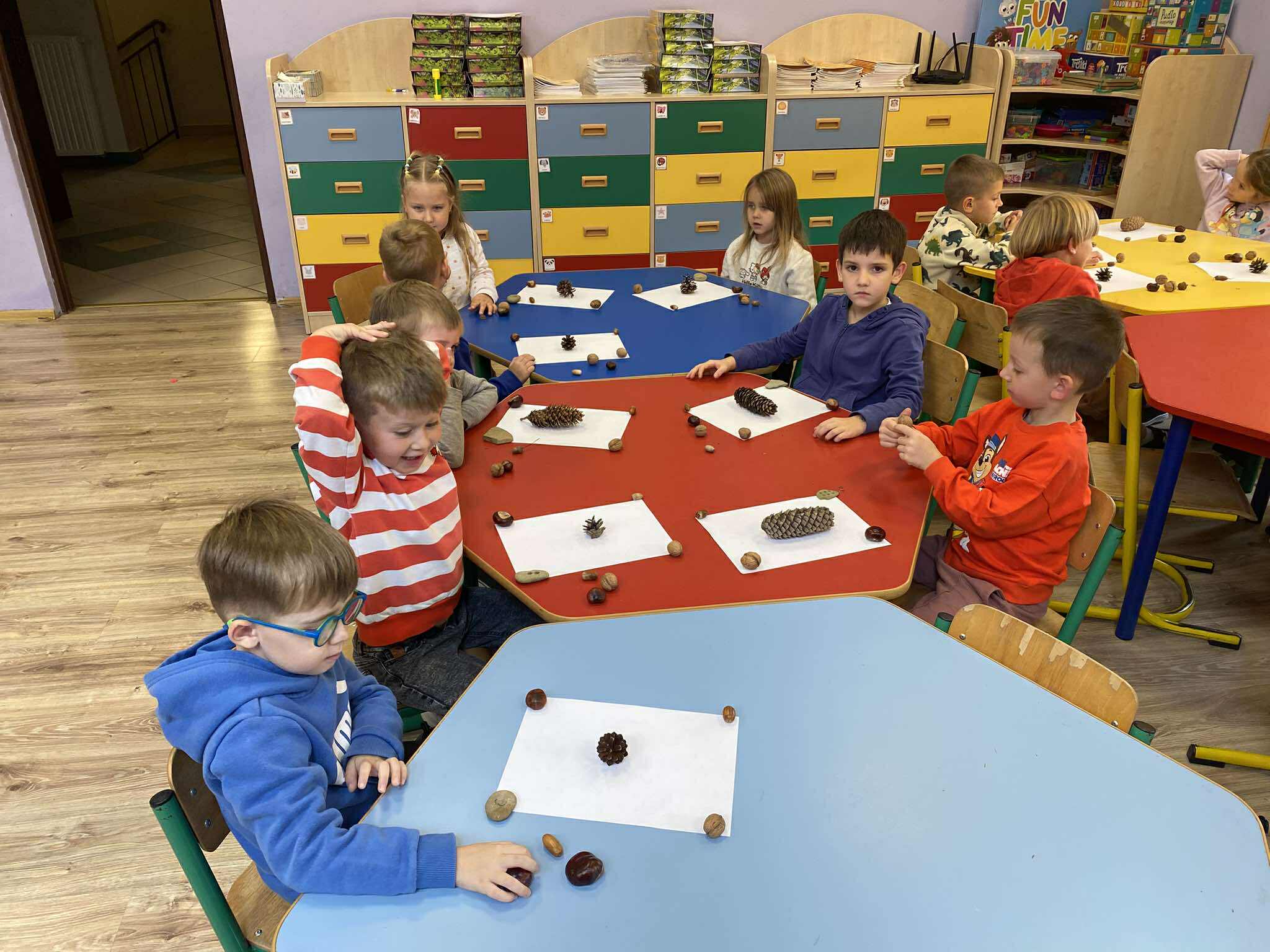 W przedszkolu był realizowany projekt edukacyjny pt. „Matematyka w darach natury ukryta” - jest to projekt edukacyjny, który powstał z myślą o rozwijaniu dziecięcego myślenia matematycznego poprzez bezpośredni kontakt z naturą, działanie, doświadczanie i zabawę. „Matematyka w darach natury ukryta” to zaproszenie do świata pełnego liczb, kształtów i rytmów, ukrytych w szyszkach, liściach, patykach, kasztanach i innych darach przyrody. To matematyka, którą dziecko może zobaczyć, dotknąć, ułożyć i przeżyć wszystkimi zmysłami.