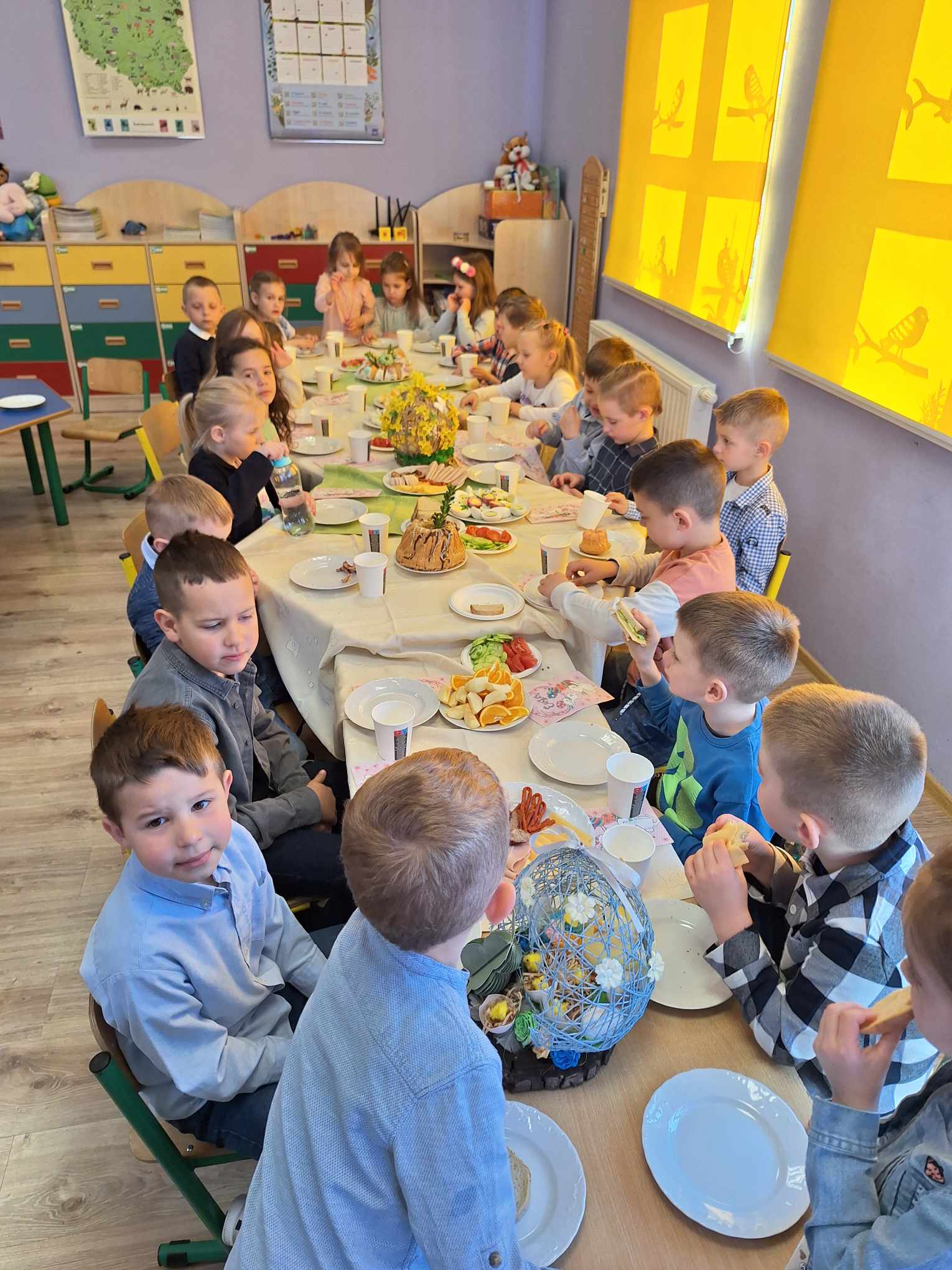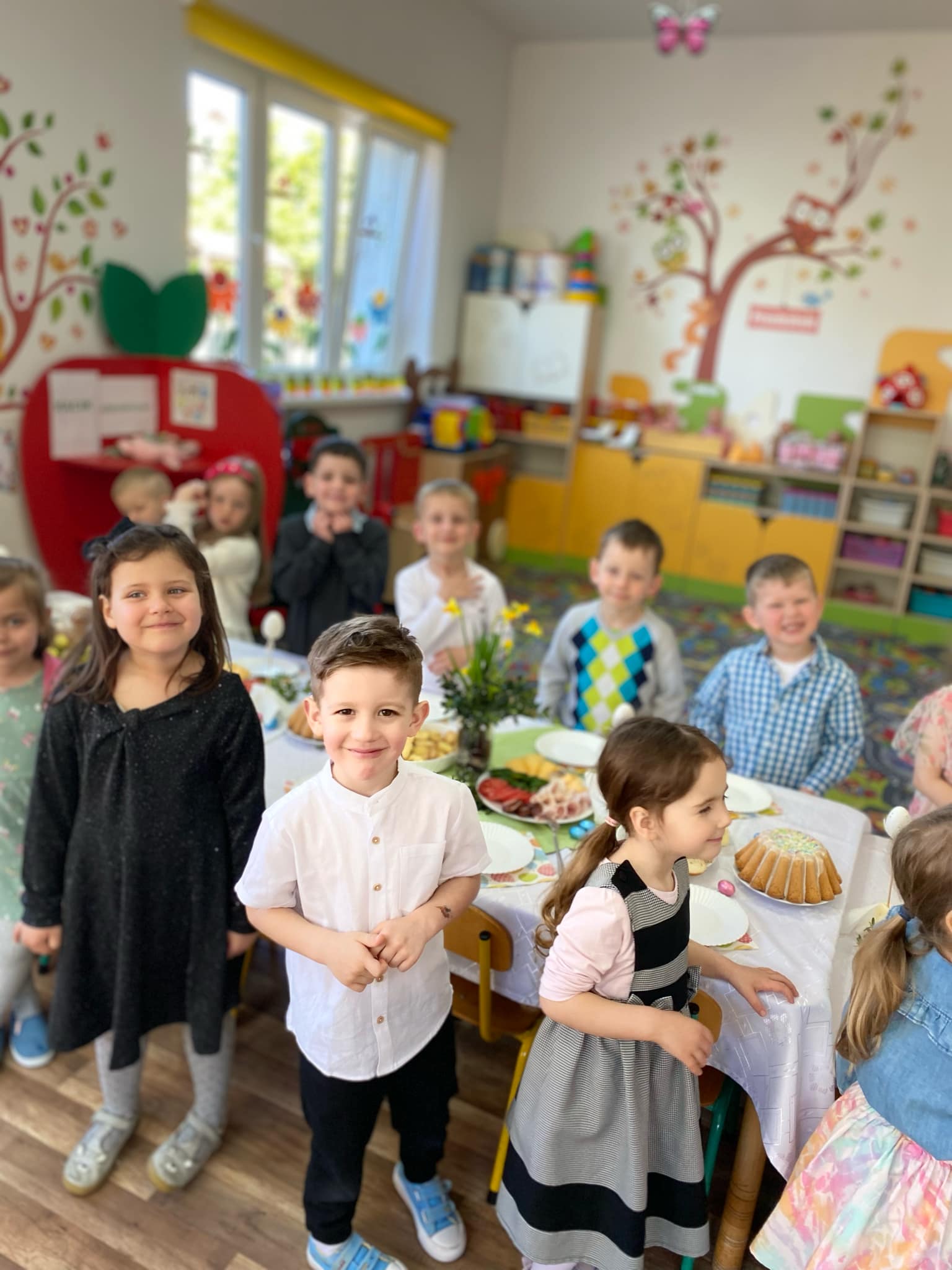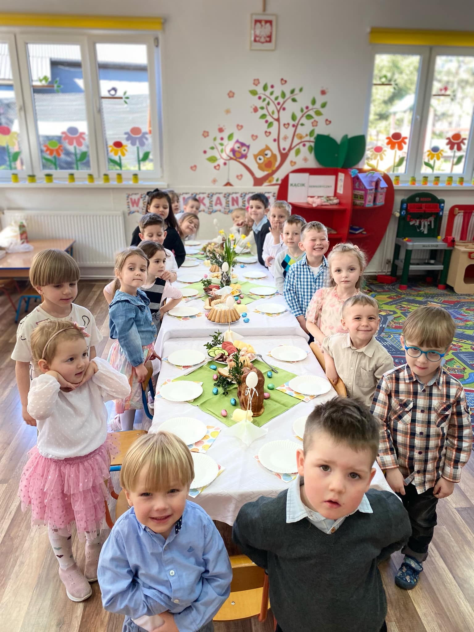 W naszym przedszkolu tradycyjnie jak co roku odbyÅ‚o siÄ™ uroczyste Å›niadanie wielkanocne, w którym wzięły udziaÅ‚ zarówno maluszki, jak i starszaki. Dzieci z każdej grupy wspólnie z wychowawczyniami przygotowywaÅ‚y stóÅ‚ wielkanocny z przysmaków, które przynieÅ›li. W miÅ‚ej, Å›wiÄ…tecznej atmosferze cieszyÅ‚y siÄ™ wspólnym posiÅ‚kiem i opowiadaÅ‚y o wielkanocnych zwyczajach.