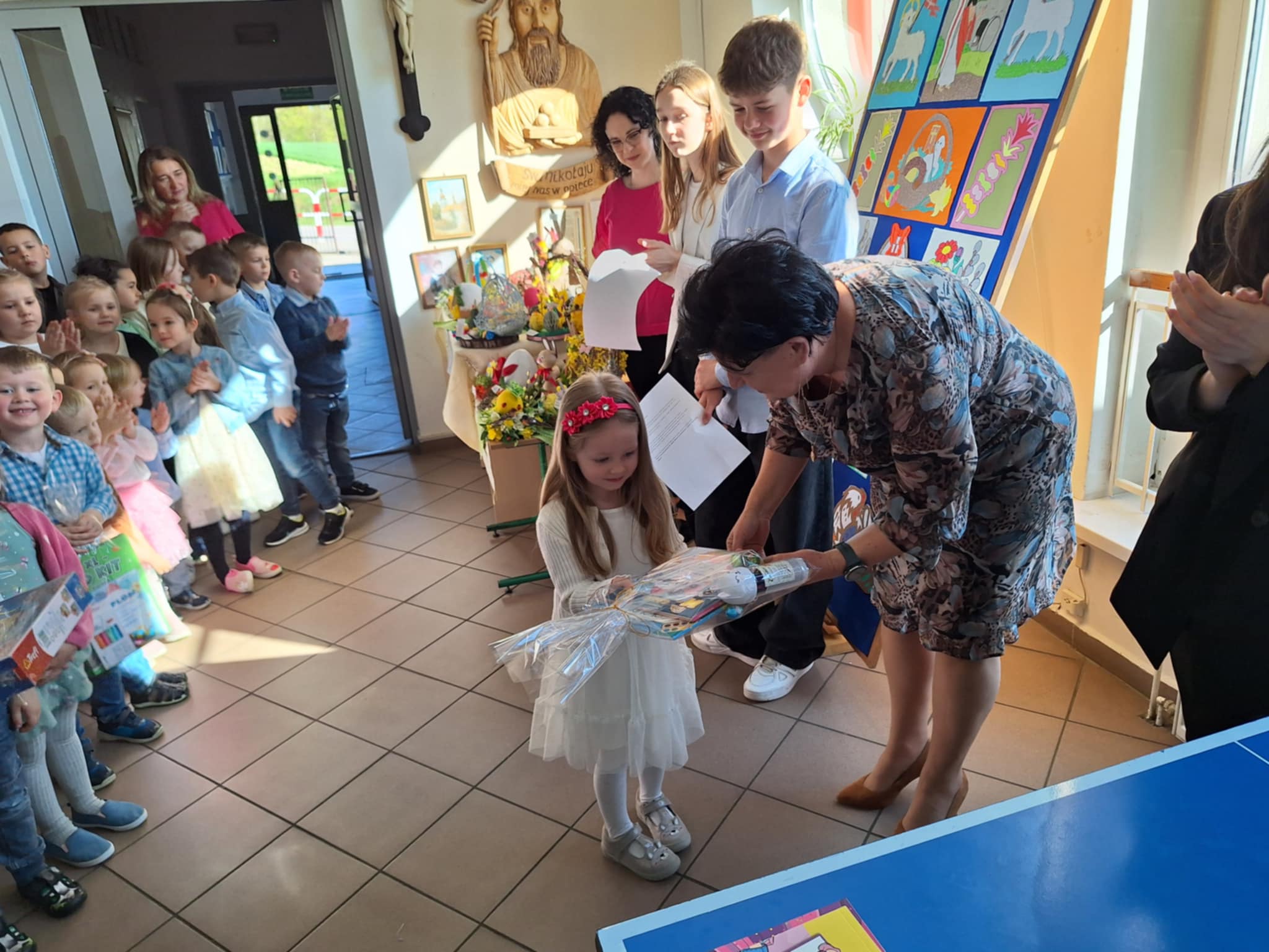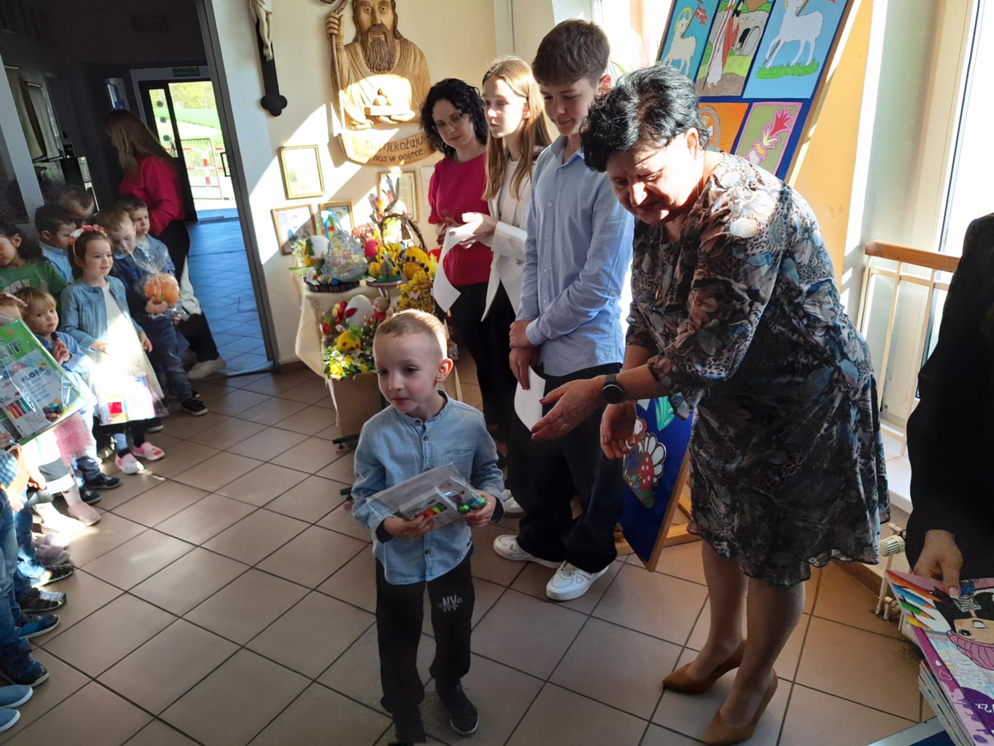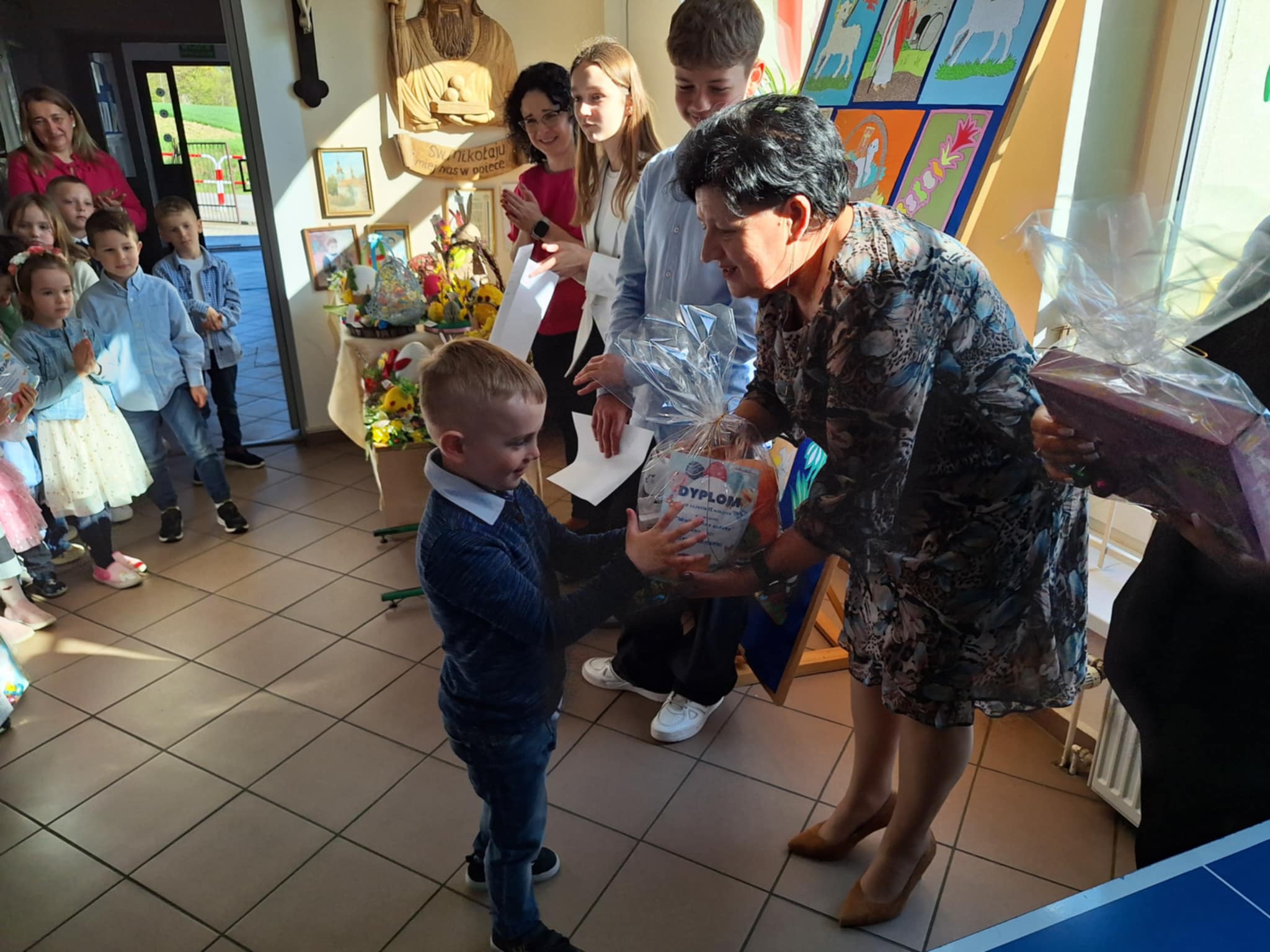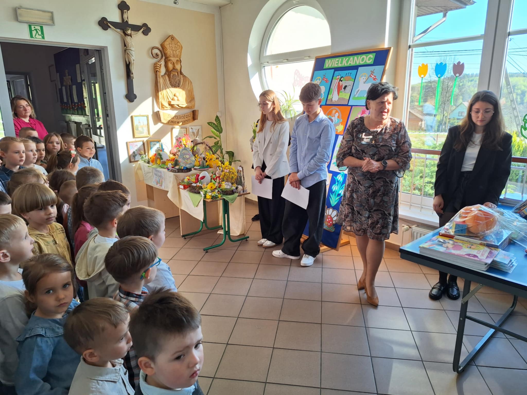 Pani Oliwia Gierek oraz pani MaÅ‚gorzata Mikus zorganizowaÅ‚y również wielkanocny konkurs plastyczny pt. „Ozdoba Wielkanocna”, którego rozstrzygniÄ™cie odbyÅ‚o siÄ™ podczas spotkania szkolnego, gdzie Pani Dyrektor wrÄ™czyÅ‚a nagrody , po czym skÅ‚adaÅ‚a wszystkim życzenia Å›wiÄ…teczne.