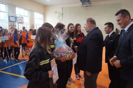 otrzymały dyplomy, piękne puchary i cenne nagrody rzeczowe, które wręczali: nowy