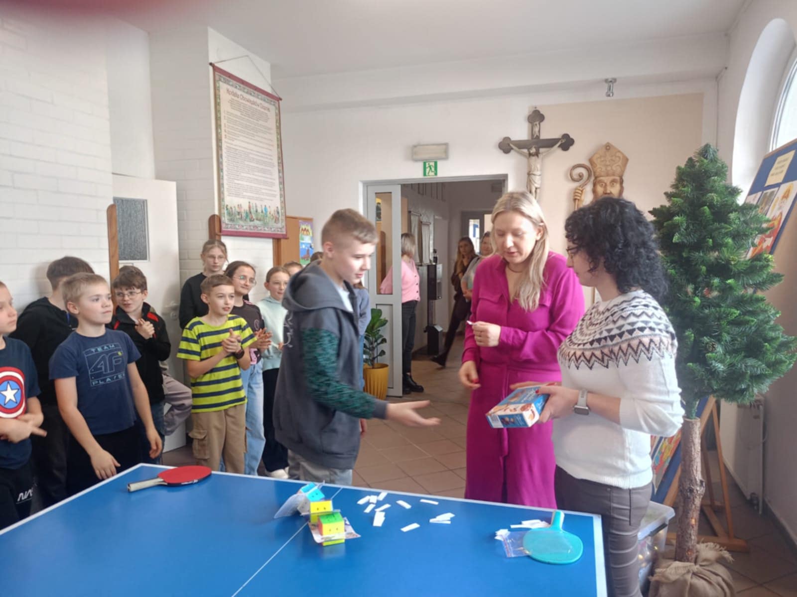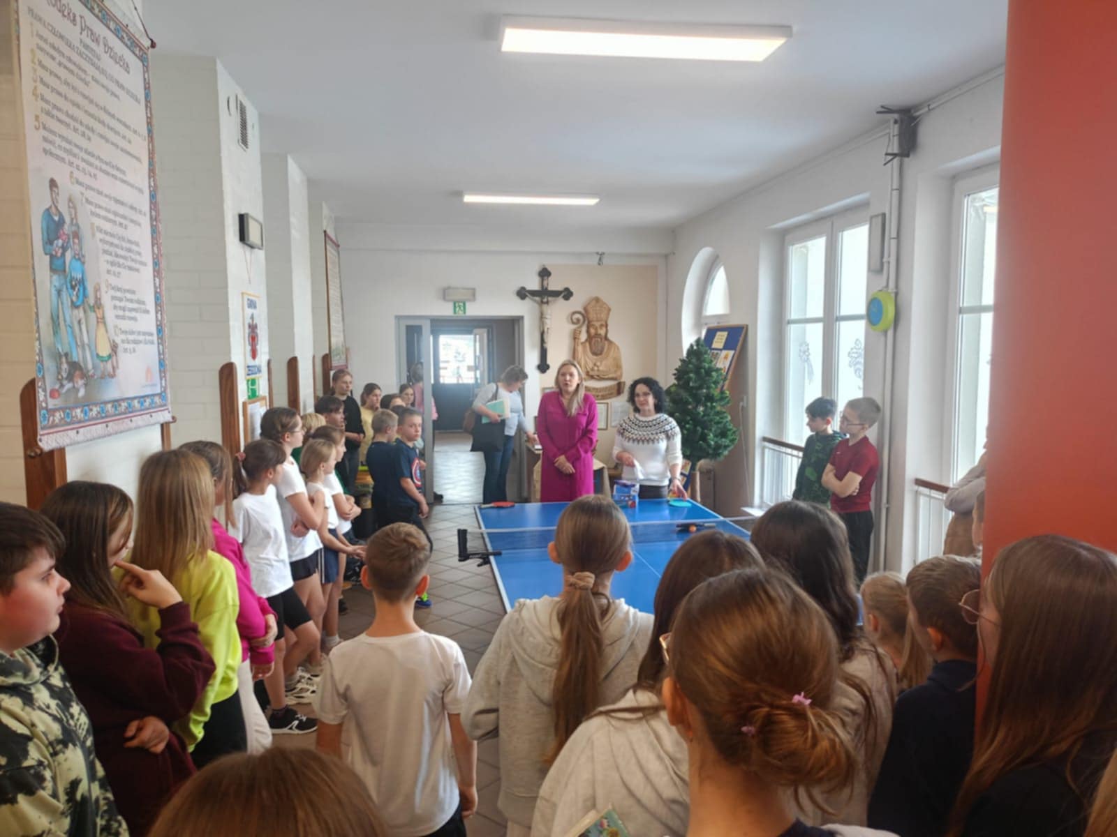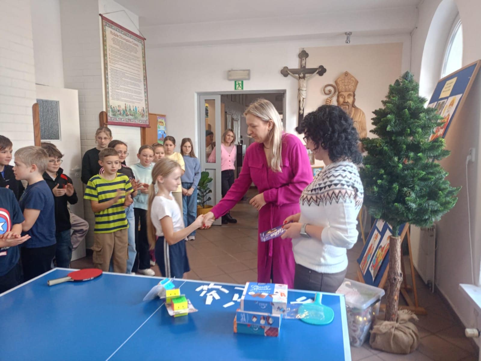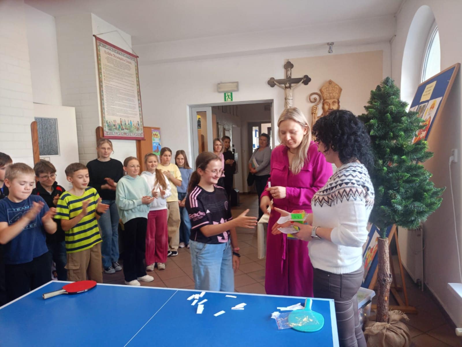 W listopadzie w naszej szkole obchodziliśmy Światowy Dzień Tabliczki Mnożenia. W tym dniu w klasach rozwiązywaliśmy specjalnie przygotowane zadania, które prócz umiejętności tabliczki mnożenia kształtowały także kompetencje matematyczne. W budynku szkoły, w ogólnodostępnej przestrzeni rozwieszono 50 działań z tabliczki mnożenia. Element rywalizacji sprawił, że Uczniowie z niezwykłym poświęceniem rozwiązywali zadania, a wśród tych, którzy wszystkie zadania rozwiązali poprawnie rozlosowano słodkie upominki i kostki Rubika.