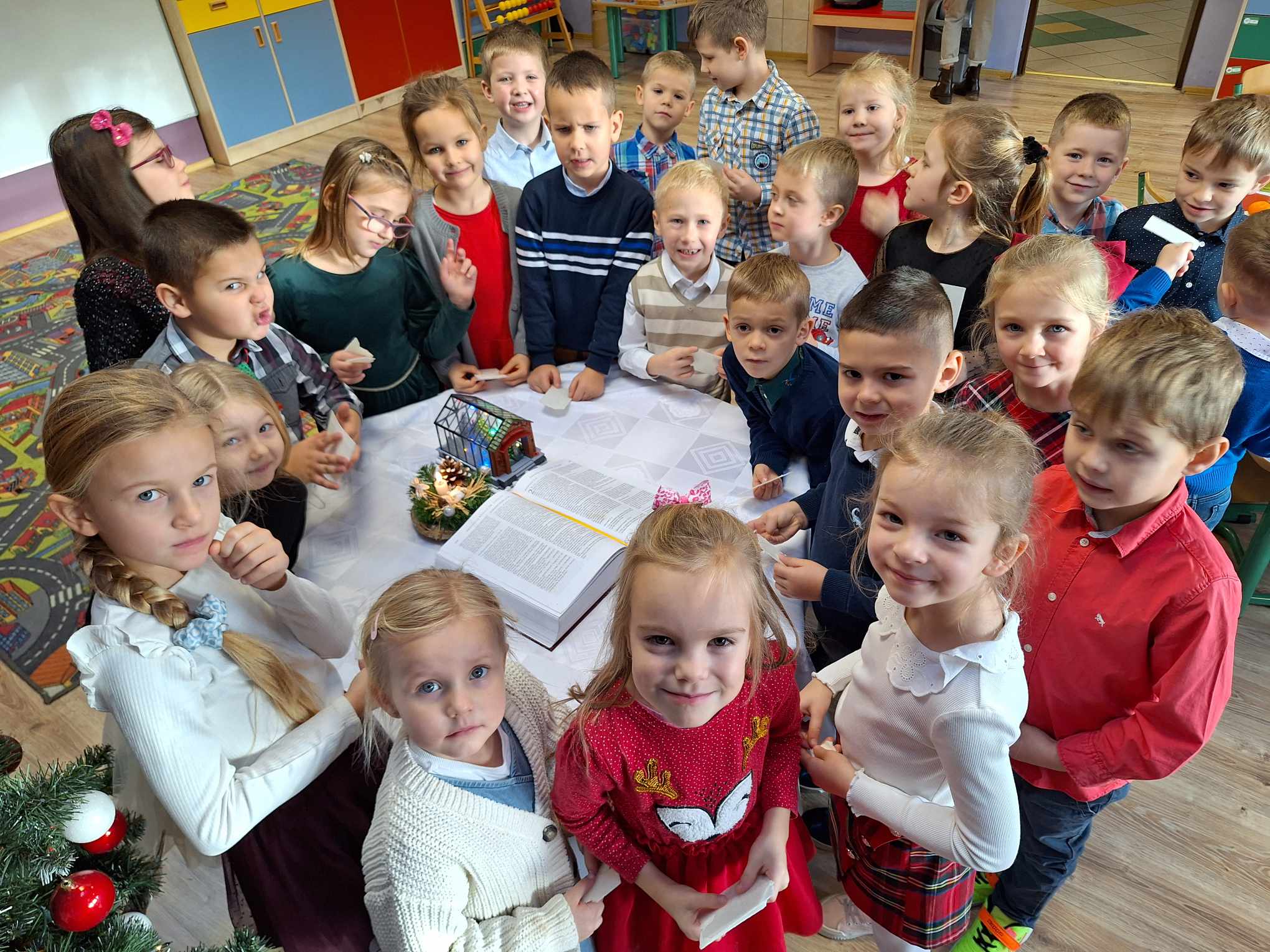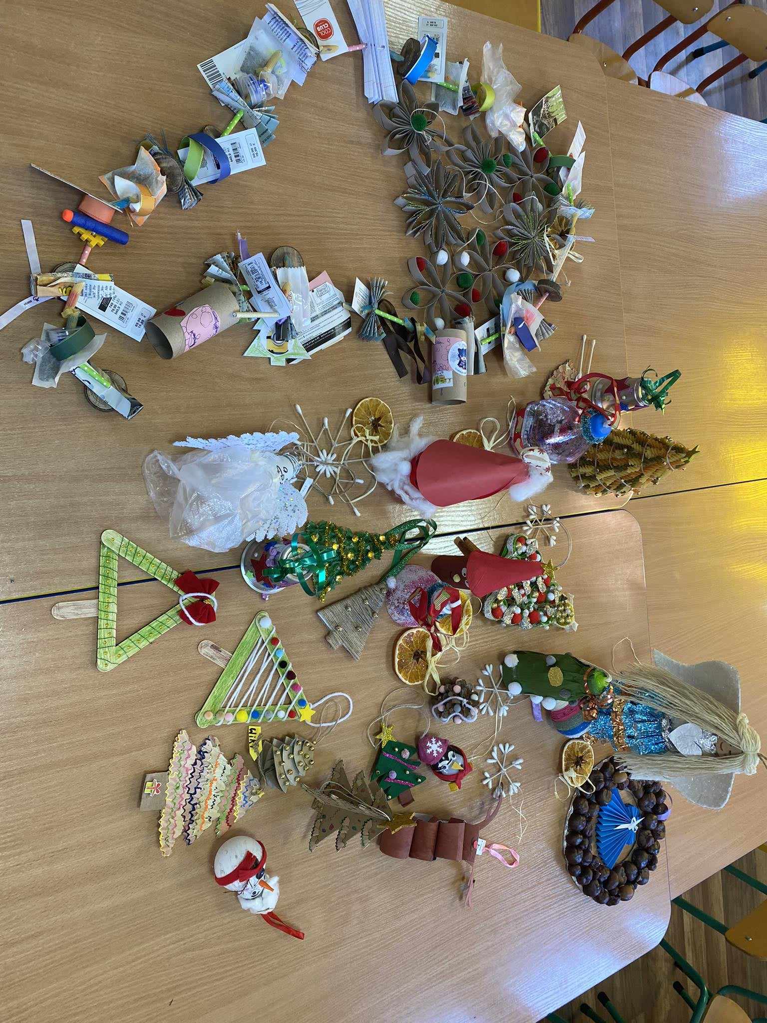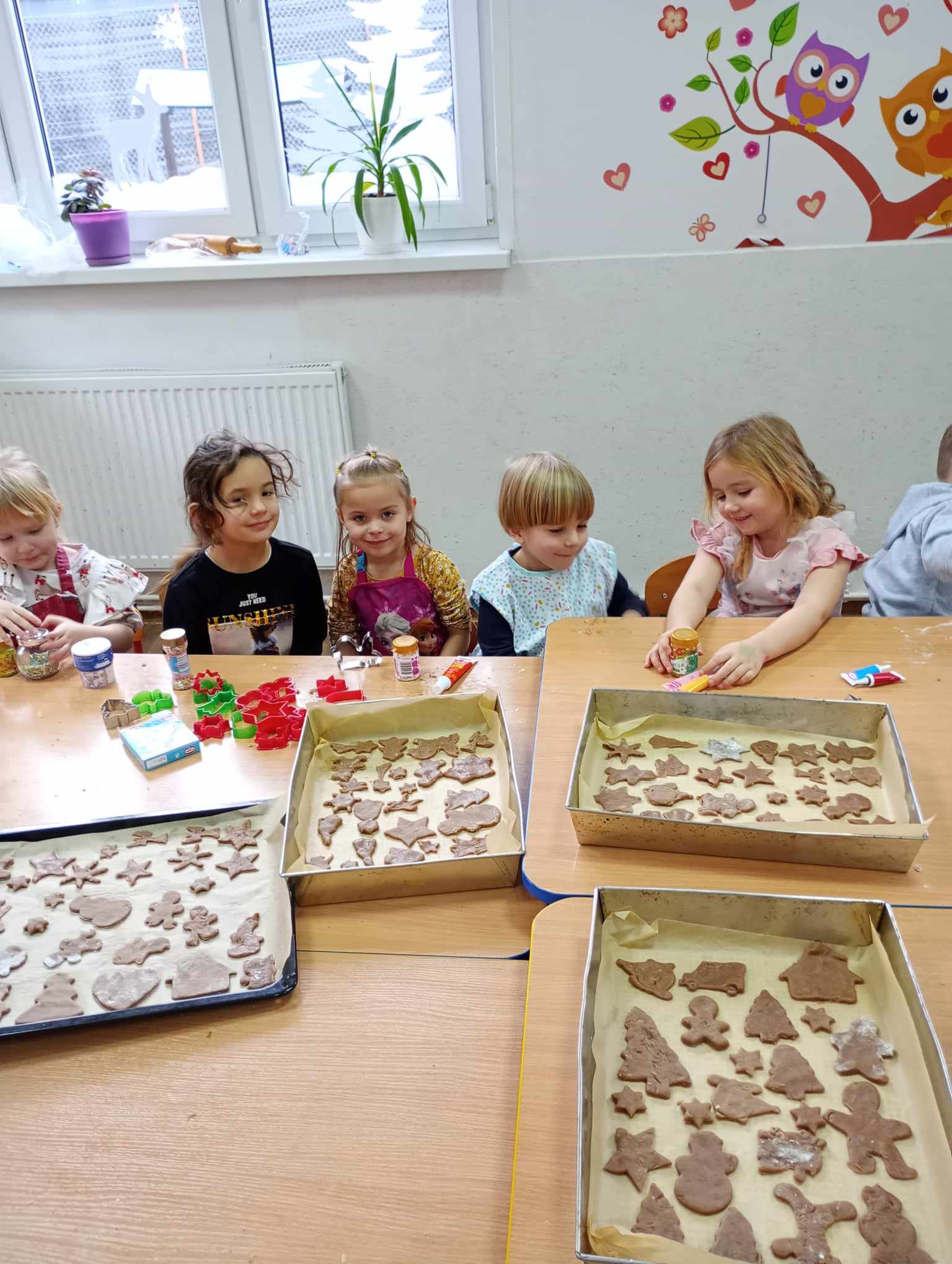 Poprzez realizacjÄ™ tematyki kompleksowej zwiÄ…zanej ze ÅšwiÄ™tami Bożego Narodzenia dzieci pogłębiajÄ… swojÄ… wiedzÄ™ na temat obyczajów i tradycji bożonarodzeniowych. GÅ‚ównym motywem zajęć jest mikoÅ‚aj, choinka, prezenty. Wymienione symbole zbliżajÄ…cych siÄ™ Å›wiÄ…t to także przewodnie motywy prac plastycznych naszych przedszkolaków. Ponadto dzieci z zapaÅ‚em i dużym zaangażowaniem wykonaÅ‚y różne ozdoby, piekÅ‚y i dekorowaÅ‚y pierniczki, chÄ™tnie Å›piewaÅ‚y kolÄ™dy, pastoraÅ‚ki oraz piosenki o tematyce zimowo-Å›wiÄ…tecznej. DziÄ™ki wspólnemu zaangażowaniu nauczycieli oraz rodziców grupy przedszkolne przygotowaÅ‚y kiermasz ozdób Å›wiÄ…tecznych. W najmÅ‚odszej grupie zorganizowano konkurs pt." Recyklingowe ozdoby choinkowe". Dzieci z pomocÄ… rodziców wykonaÅ‚y przepiÄ™kne ozdoby , które zawisÅ‚y na choince w sali maluchów.