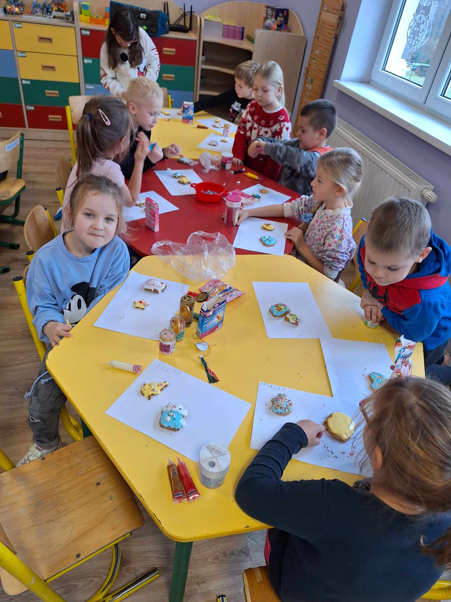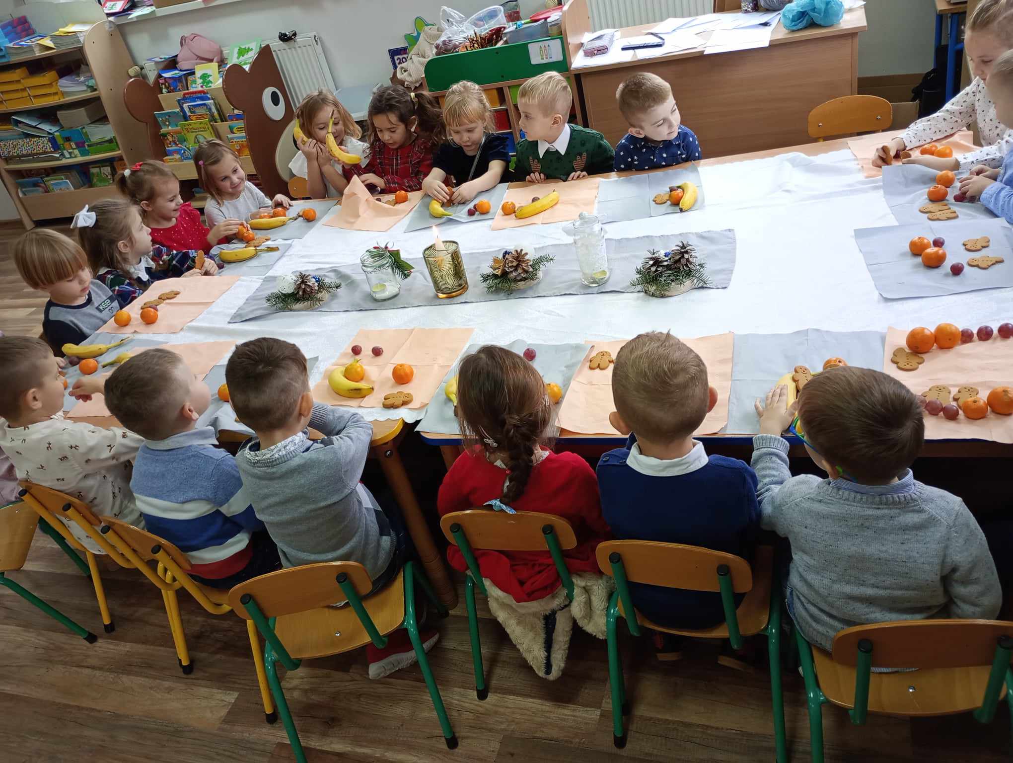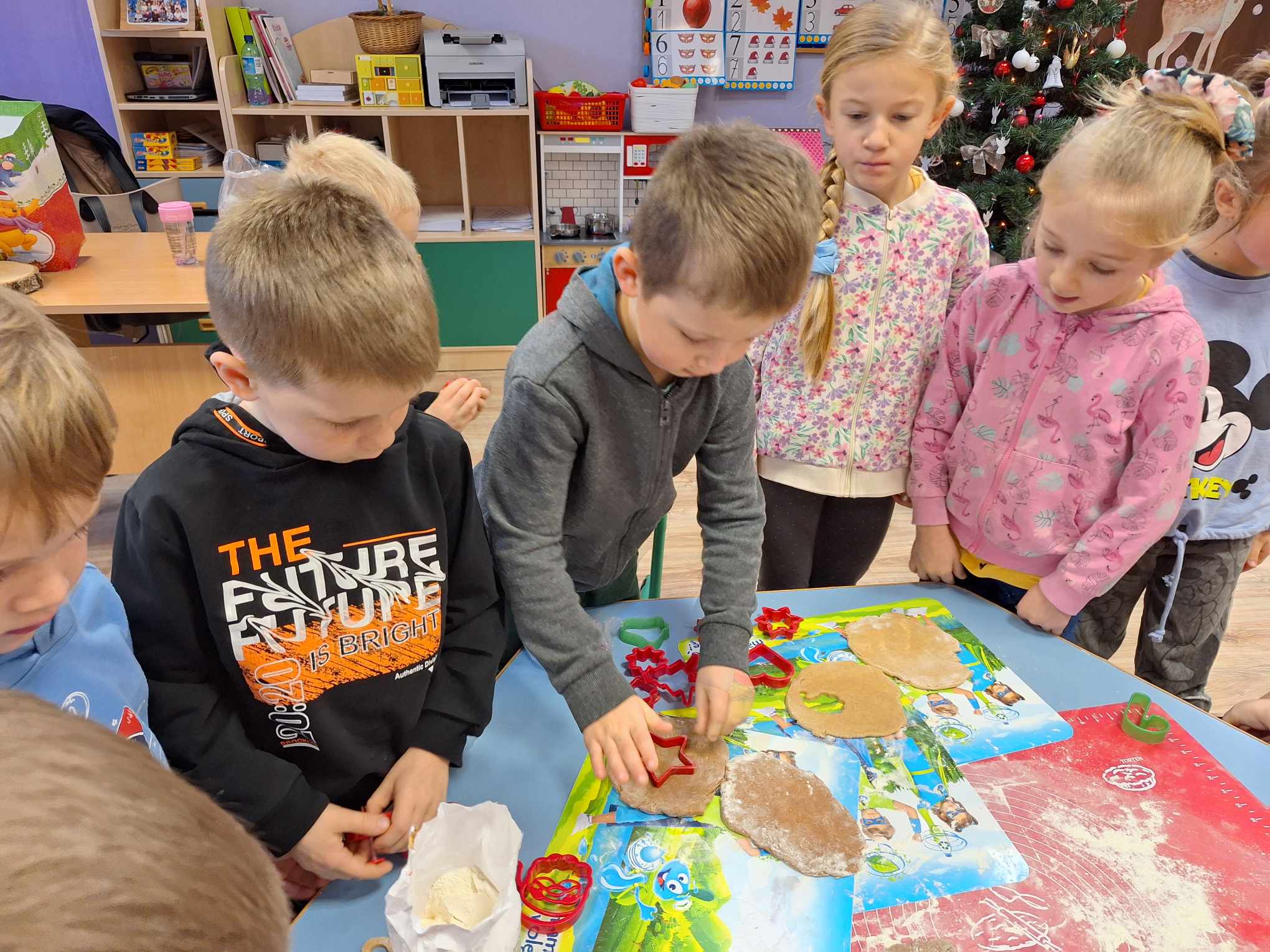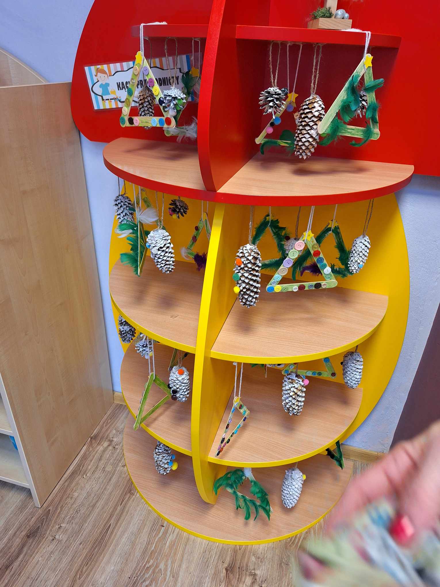Poprzez realizacjÄ™ tematyki kompleksowej zwiÄ…zanej ze ÅšwiÄ™tami Bożego Narodzenia dzieci pogłębiajÄ… swojÄ… wiedzÄ™ na temat obyczajów i tradycji bożonarodzeniowych. GÅ‚ównym motywem zajęć jest mikoÅ‚aj, choinka, prezenty. Wymienione symbole zbliżajÄ…cych siÄ™ Å›wiÄ…t to także przewodnie motywy prac plastycznych naszych przedszkolaków. Ponadto dzieci z zapaÅ‚em i dużym zaangażowaniem wykonaÅ‚y różne ozdoby, piekÅ‚y i dekorowaÅ‚y pierniczki, chÄ™tnie Å›piewaÅ‚y kolÄ™dy, pastoraÅ‚ki oraz piosenki o tematyce zimowo-Å›wiÄ…tecznej. DziÄ™ki wspólnemu zaangażowaniu nauczycieli oraz rodziców grupy przedszkolne przygotowaÅ‚y kiermasz ozdób Å›wiÄ…tecznych. W najmÅ‚odszej grupie zorganizowano konkurs pt." Recyklingowe ozdoby choinkowe". Dzieci z pomocÄ… rodziców wykonaÅ‚y przepiÄ™kne ozdoby , które zawisÅ‚y na choince w sali maluchów.