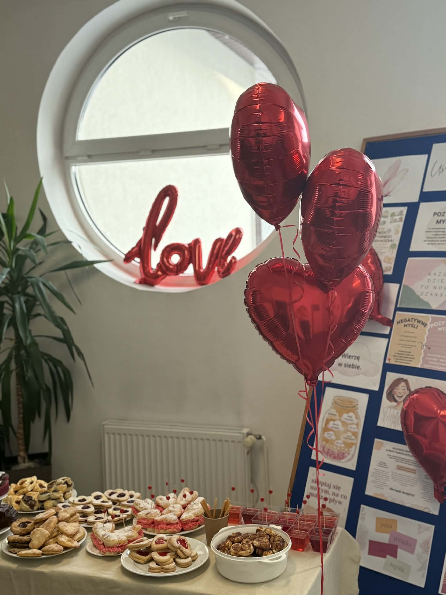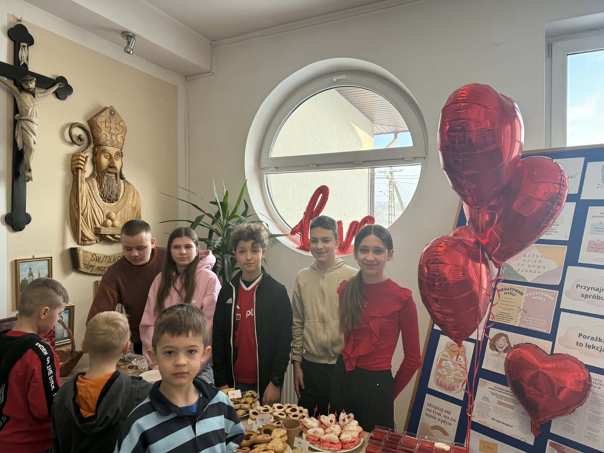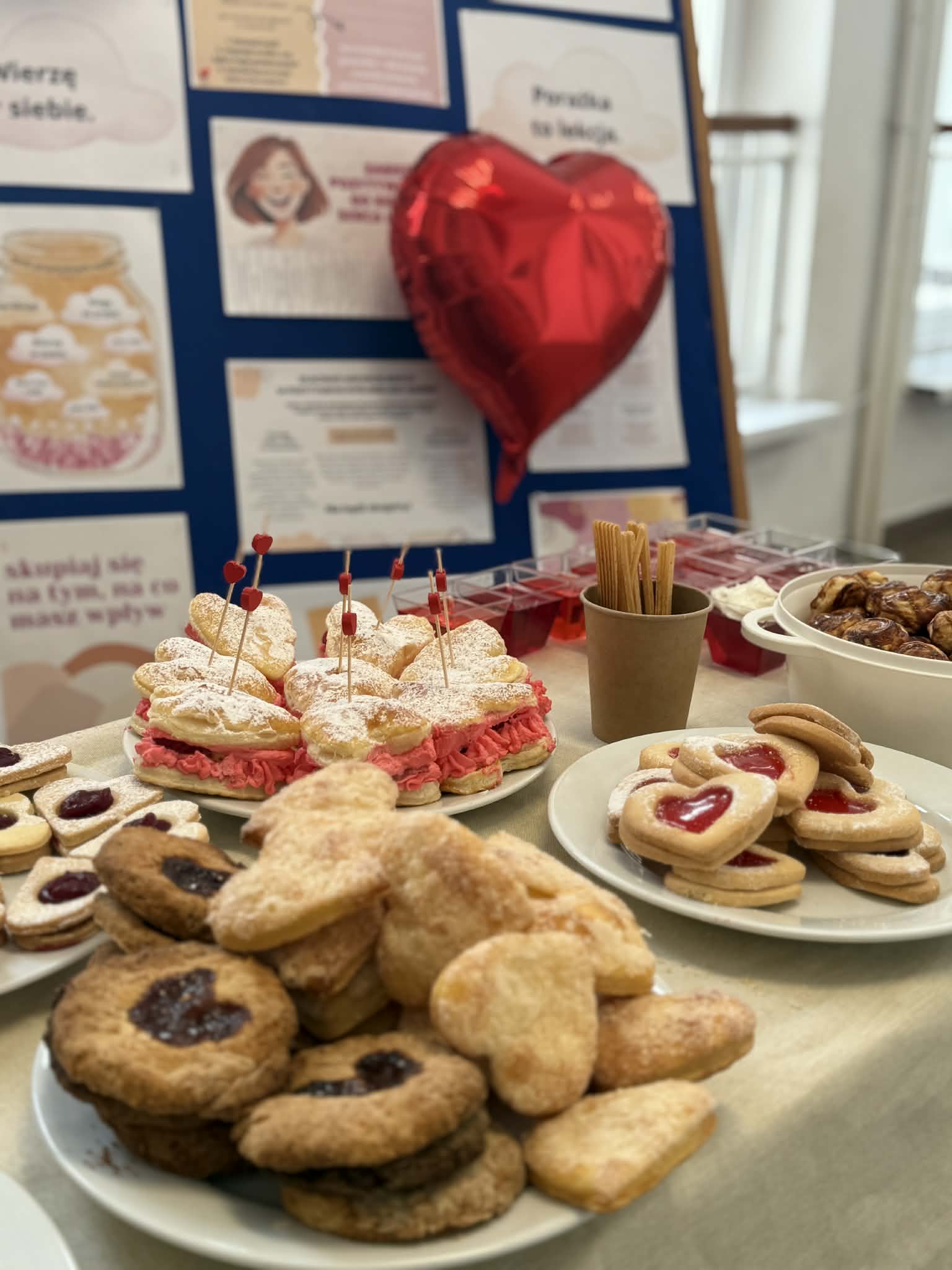 Kolejną atrakcją był kiermasz walentynkowy, podczas którego można było zakupić słodkości i kartki walentynkowe. Stoisko cieszyło się dużą popularnością i stało się miejscem spotkań oraz wspólnych rozmów uczniów.