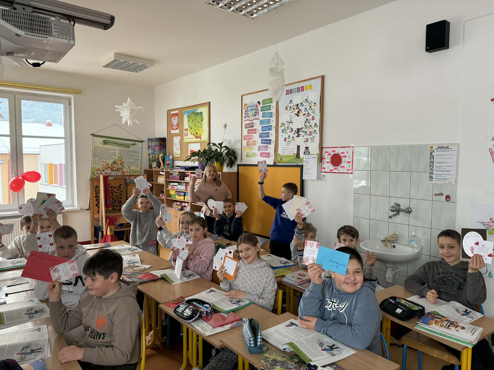Dużym zainteresowaniem cieszyła się poczta walentynkowa, dzięki której uczniowie mogli przekazać kolegom, koleżankom oraz nauczycielom miłe życzenia i serdeczne wiadomości. Kartki z życzeniami były dostarczane do adresatów przez szkolne listonoszki, co sprawiło wszystkim wiele radości.