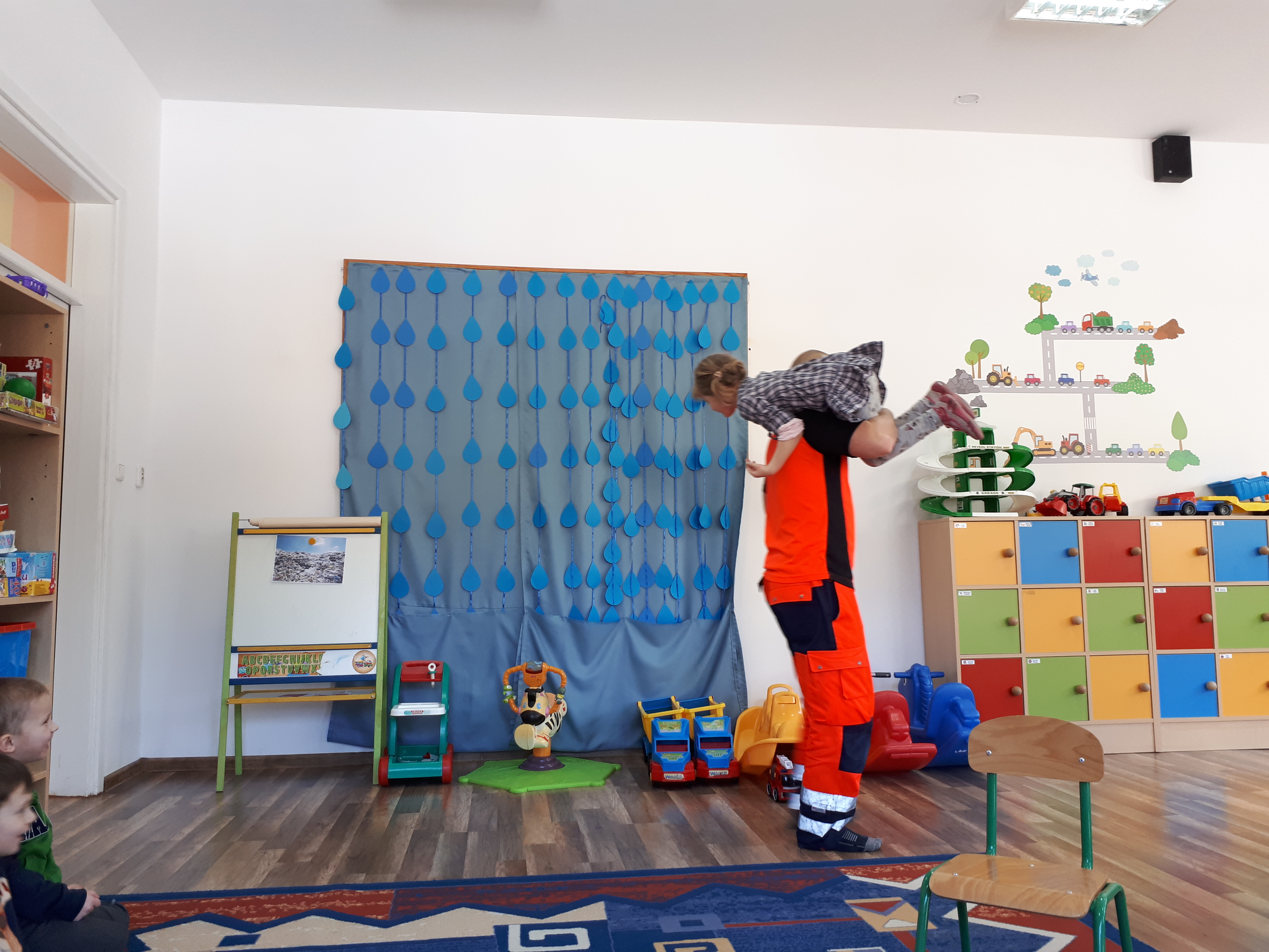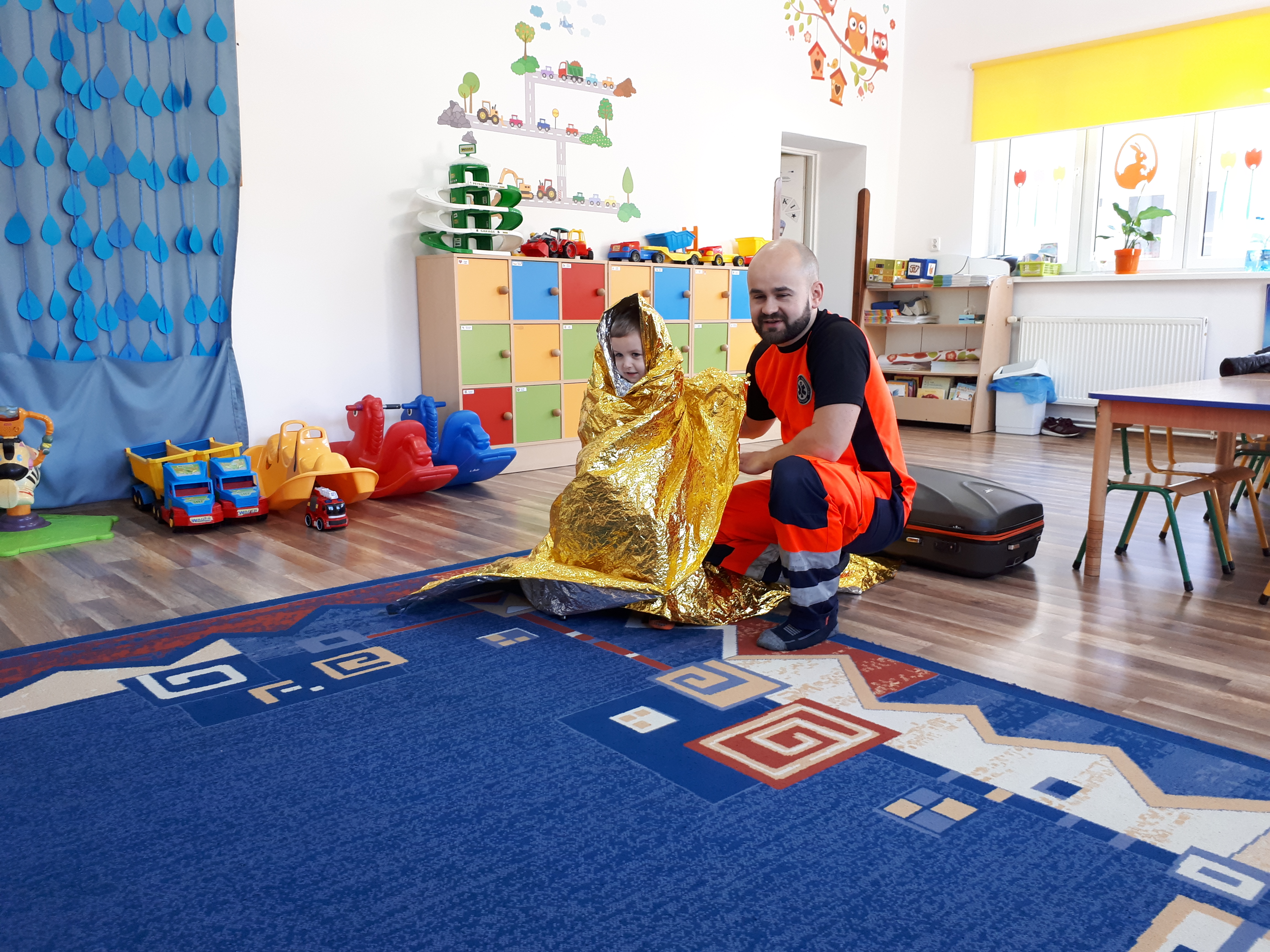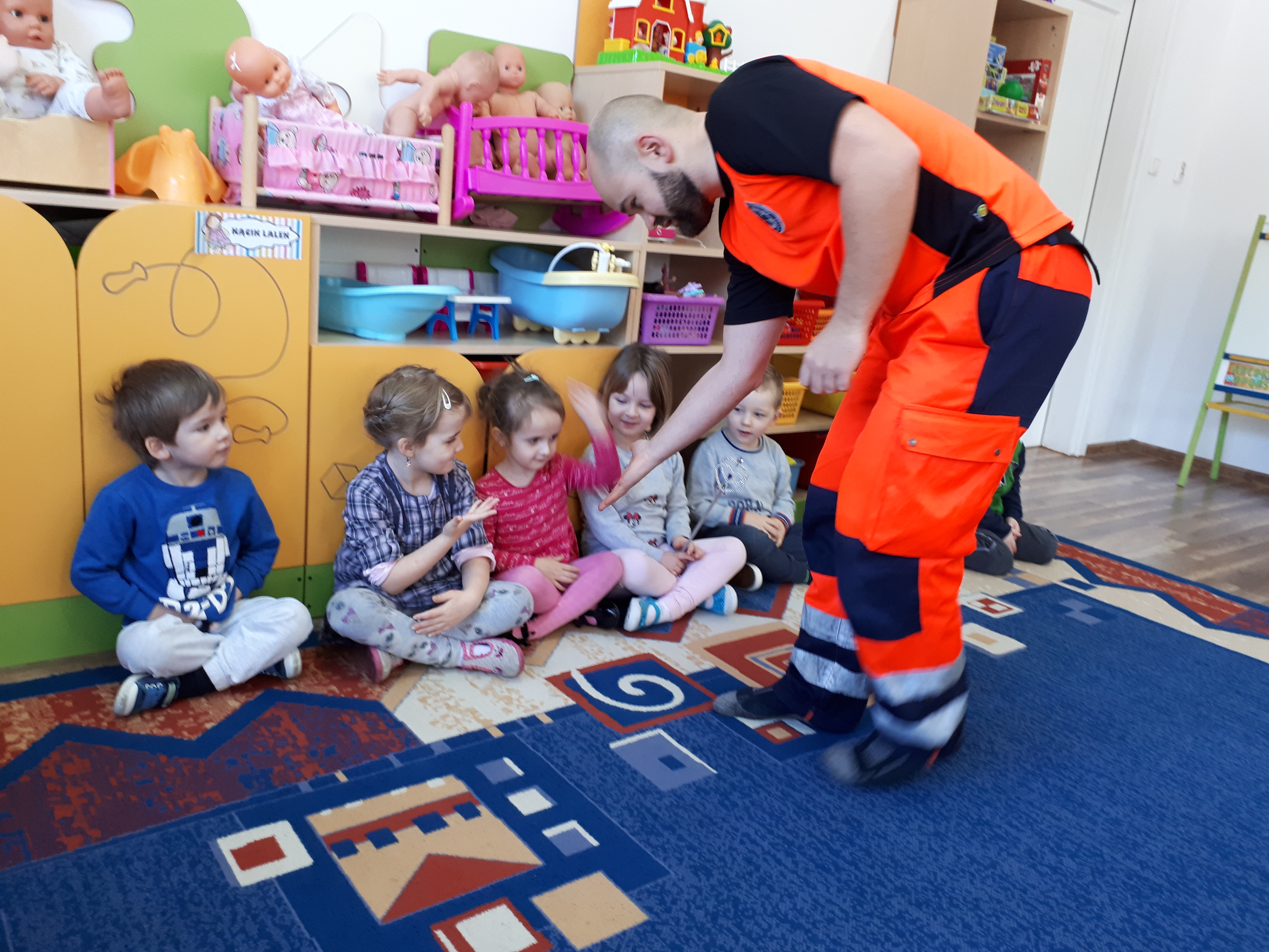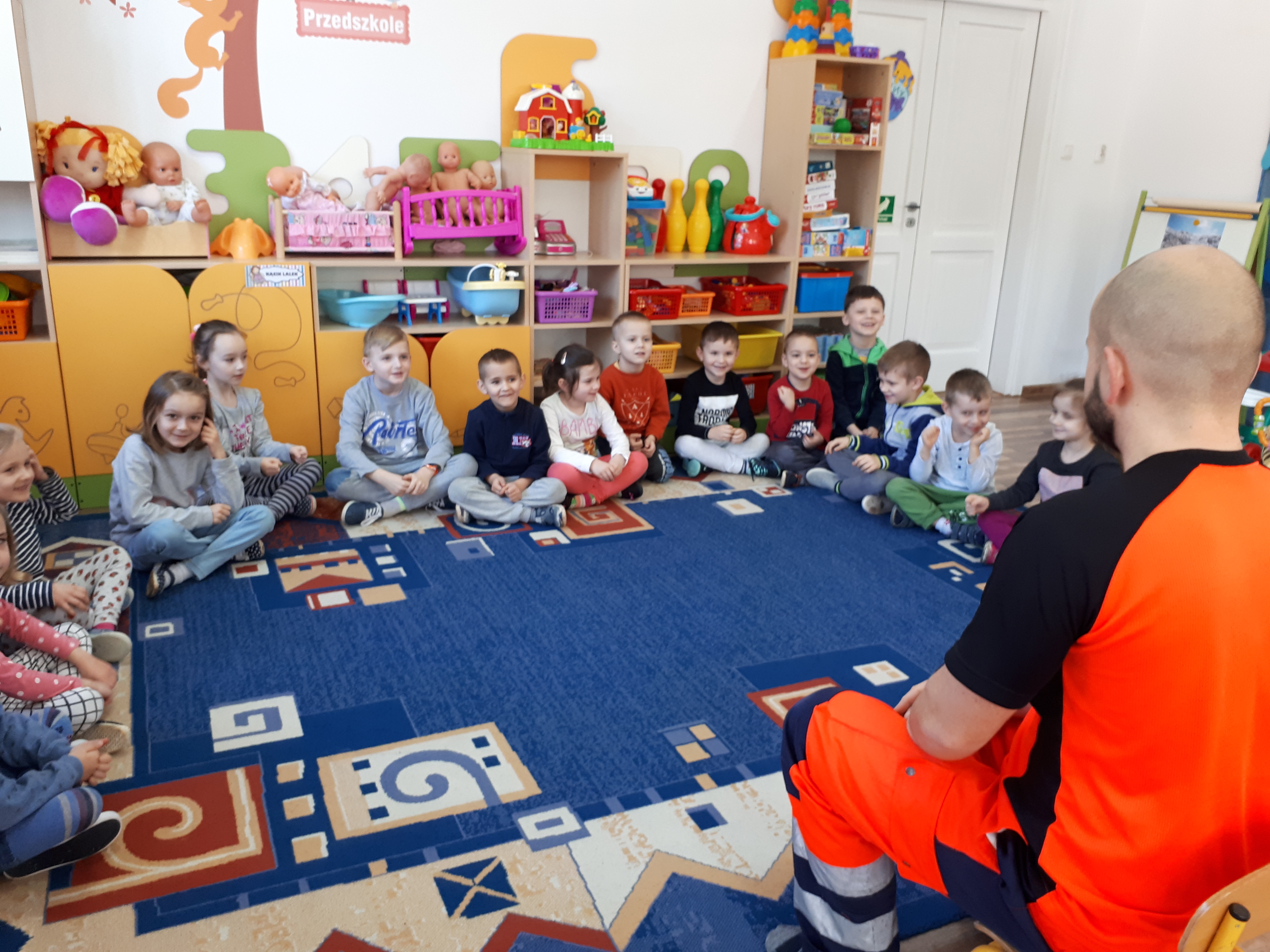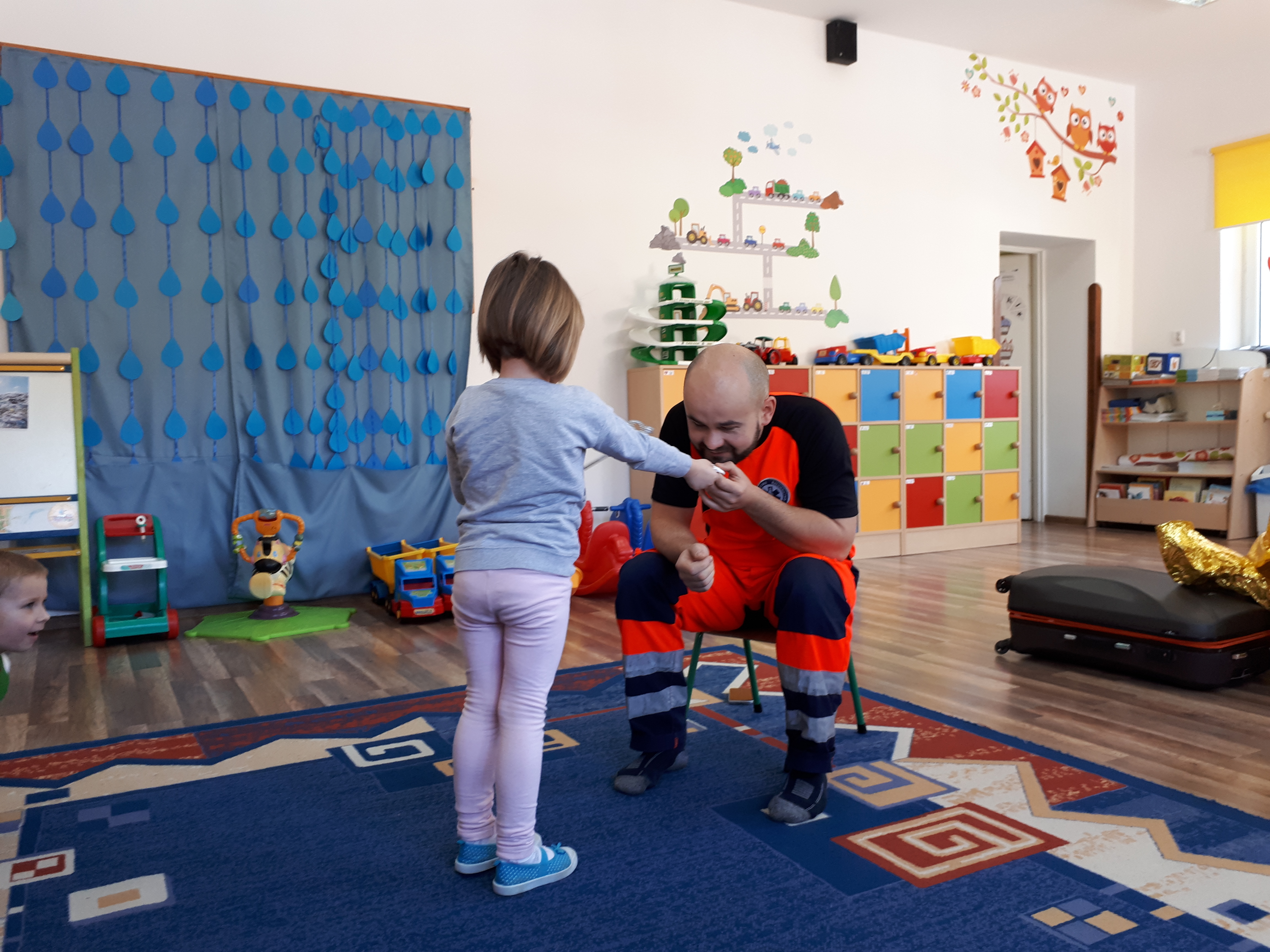 W obecności wykwalifikowanego ratownika medycznego dzieci poznały sposoby zachowania się w sytuacji zagrożenia życia. Po utrwaleniu numerów alarmowych przedszkolaki ćwiczyły, w jaki sposób należy prawidłowo wezwać karetkę pogotowia- dowiedziały się, jakich informacji należy udzielić podczas rozmowy telefonicznej. Duże wrażenie zrobił na nich fantom, na którym uczyły się podstaw resuscytacji krążeniowo – oddechowej.