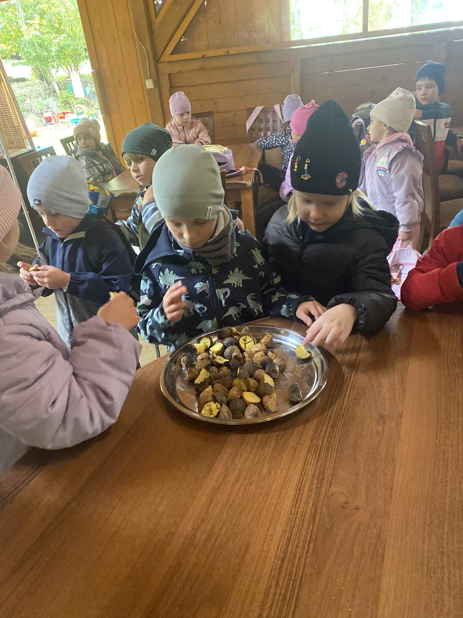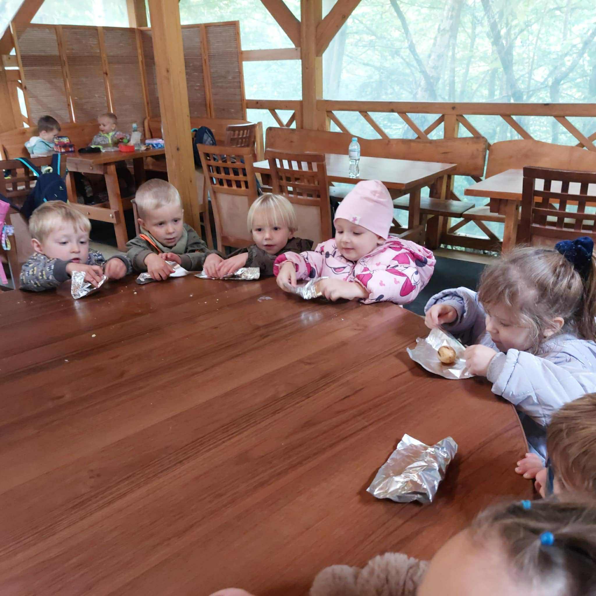 Dnia 8 października 2025 roku oddziaÅ‚ przedszkolny wybraÅ‚ siÄ™ na wycieczkÄ™ do WiÅ›niowego Gaju w KobyÅ‚czynie. Na poczÄ…tku panie prowadzÄ…ce przywitaÅ‚y dzieci pysznymi rogalikami i sokiem owocowym, po czym poinformowaÅ‚y dzieci o zasadach pobytu. Przedszkolaki miaÅ‚y okazjÄ™ karmić zwierzÄ…tka oraz uczestniczyć w ciekawych warsztatach z pieczenia ciasta i ziemniaczków. Po zajÄ™ciach wszyscy Å›wietnie bawili siÄ™ na dmuchanej zjeżdżalni i placu zabaw.