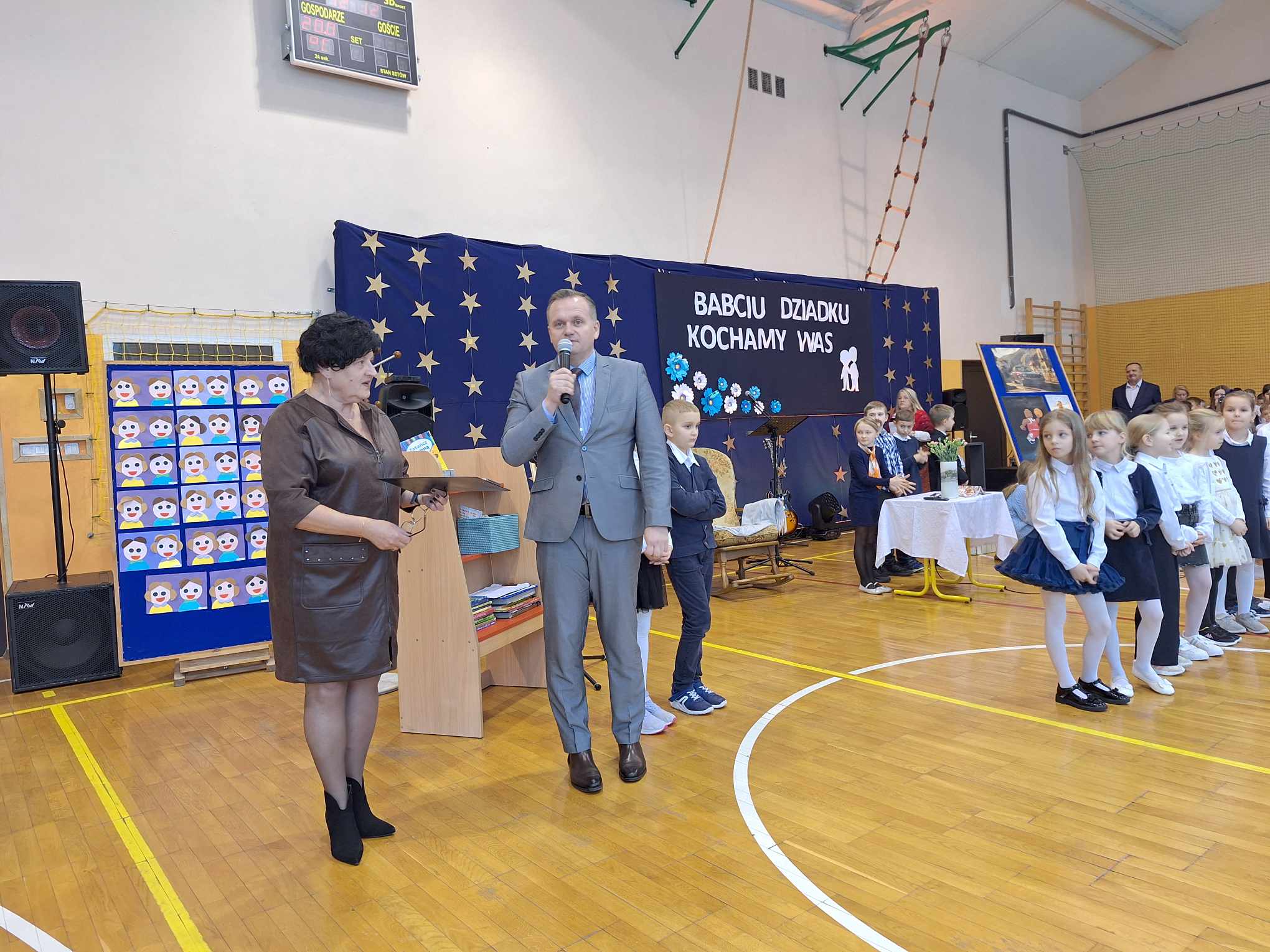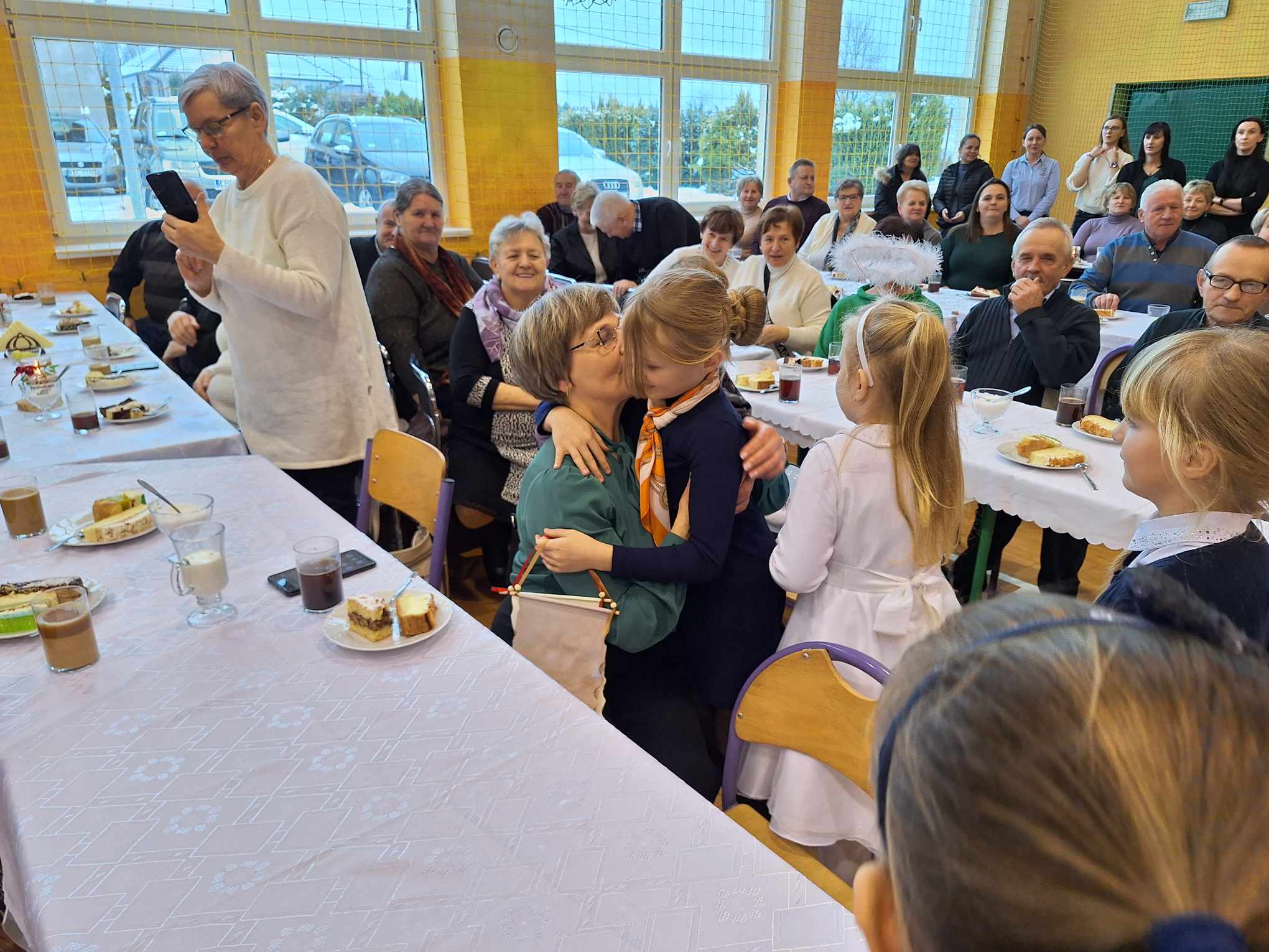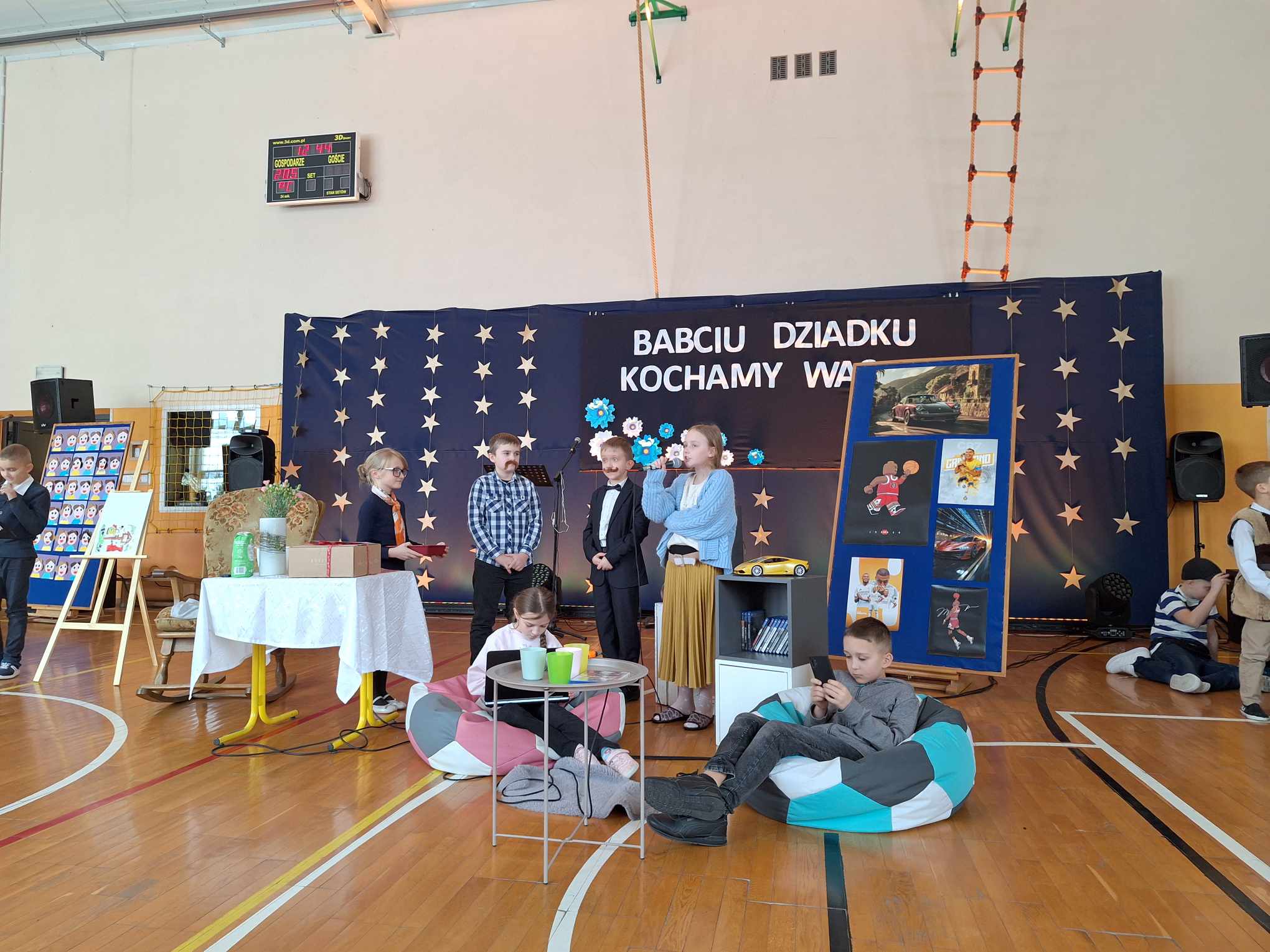 16 stycznia w naszej szkole odbyła się wyjątkowa uroczystość z okazji Dnia Babci i Dziadka, rozpoczęła ją pani dyrektor Lucyna Nowak, serdecznie witając przybyłych gości i składając im życzenia zdrowia, radości oraz nieustającej miłości ze strony wnuków. Wśród zaproszonych gości znaleźli się wójt gminy, pan Wojciech Wrona, oraz proboszcz parafii ks. Bogusław Pasierb, którzy podkreślili znaczenie roli babć i dziadków w rodzinach oraz ich nieoceniony wkład w wychowanie młodego pokolenia. Dzieci z wielkim zaangażowaniem przygotowały program artystyczny, w którym nie zabrakło wzruszających wierszy oraz pięknych występów. Punktem kulminacyjnym była scenka, niosąca ważne przesłanie: