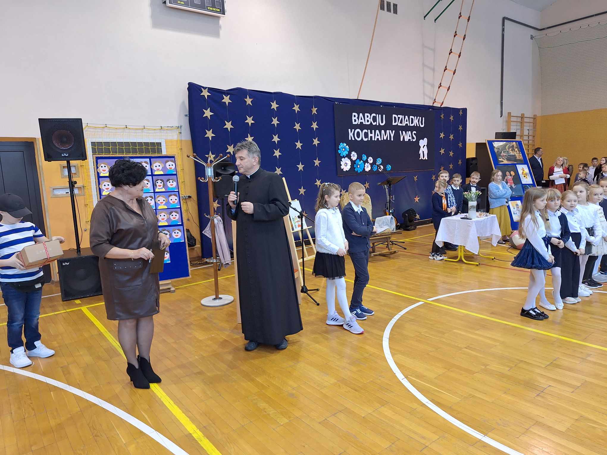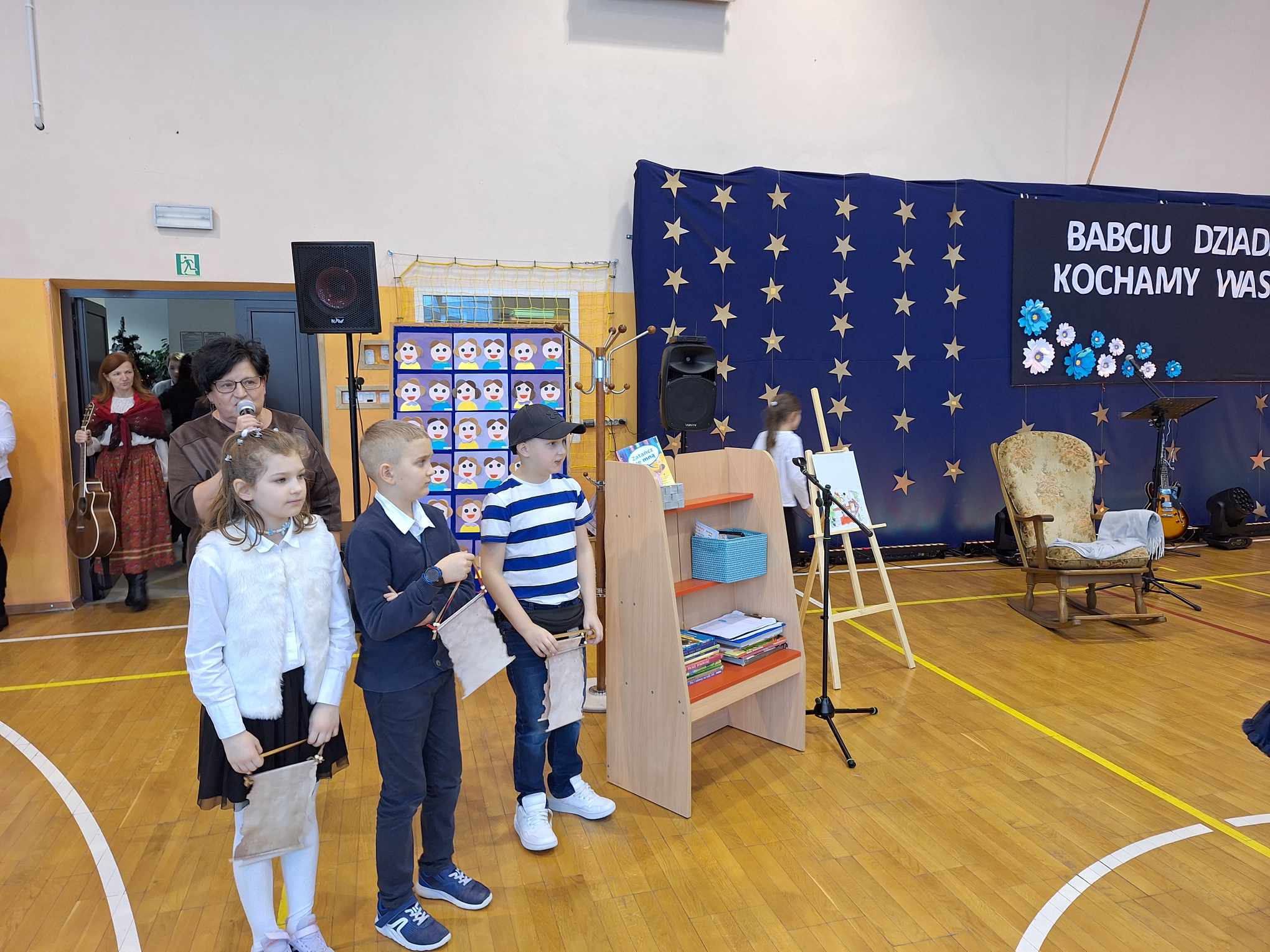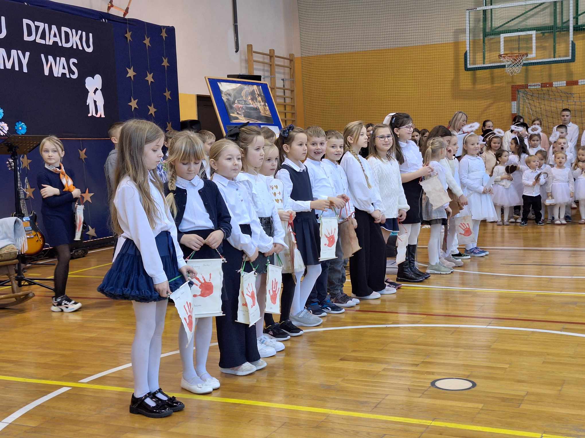16 stycznia w naszej szkole odbyła się wyjątkowa uroczystość z okazji Dnia Babci i Dziadka, rozpoczęła ją pani dyrektor Lucyna Nowak, serdecznie witając przybyłych gości i składając im życzenia zdrowia, radości oraz nieustającej miłości ze strony wnuków. Wśród zaproszonych gości znaleźli się wójt gminy, pan Wojciech Wrona, oraz proboszcz parafii ks. Bogusław Pasierb, którzy podkreślili znaczenie roli babć i dziadków w rodzinach oraz ich nieoceniony wkład w wychowanie młodego pokolenia. Dzieci z wielkim zaangażowaniem przygotowały program artystyczny, w którym nie zabrakło wzruszających wierszy oraz pięknych występów. Punktem kulminacyjnym była scenka, niosąca ważne przesłanie: