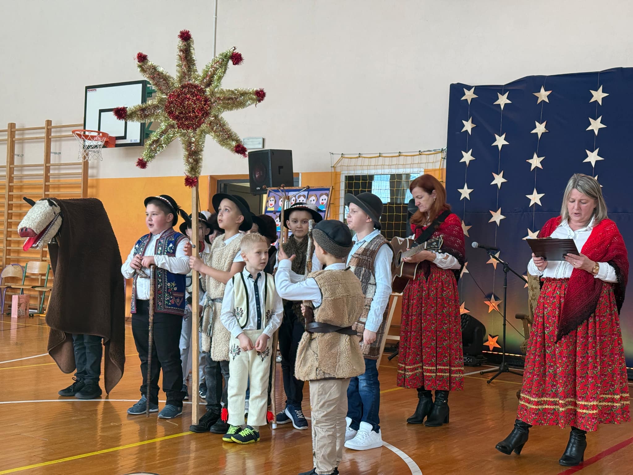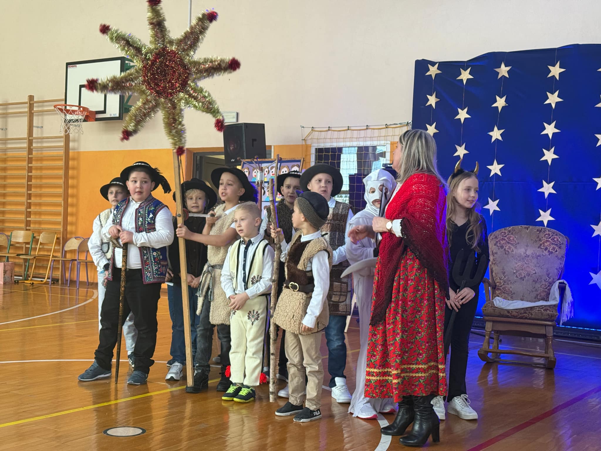 Nie zabrakło również występu tradycyjnej grupy kolędniczej, która zaprezentowała piękne polskie kolędy. Dziadkowie i babcie z uśmiechem na twarzy włączali się do wspólnego śpiewania, ciesząc się każdą chwilą spędzoną z wnukami.