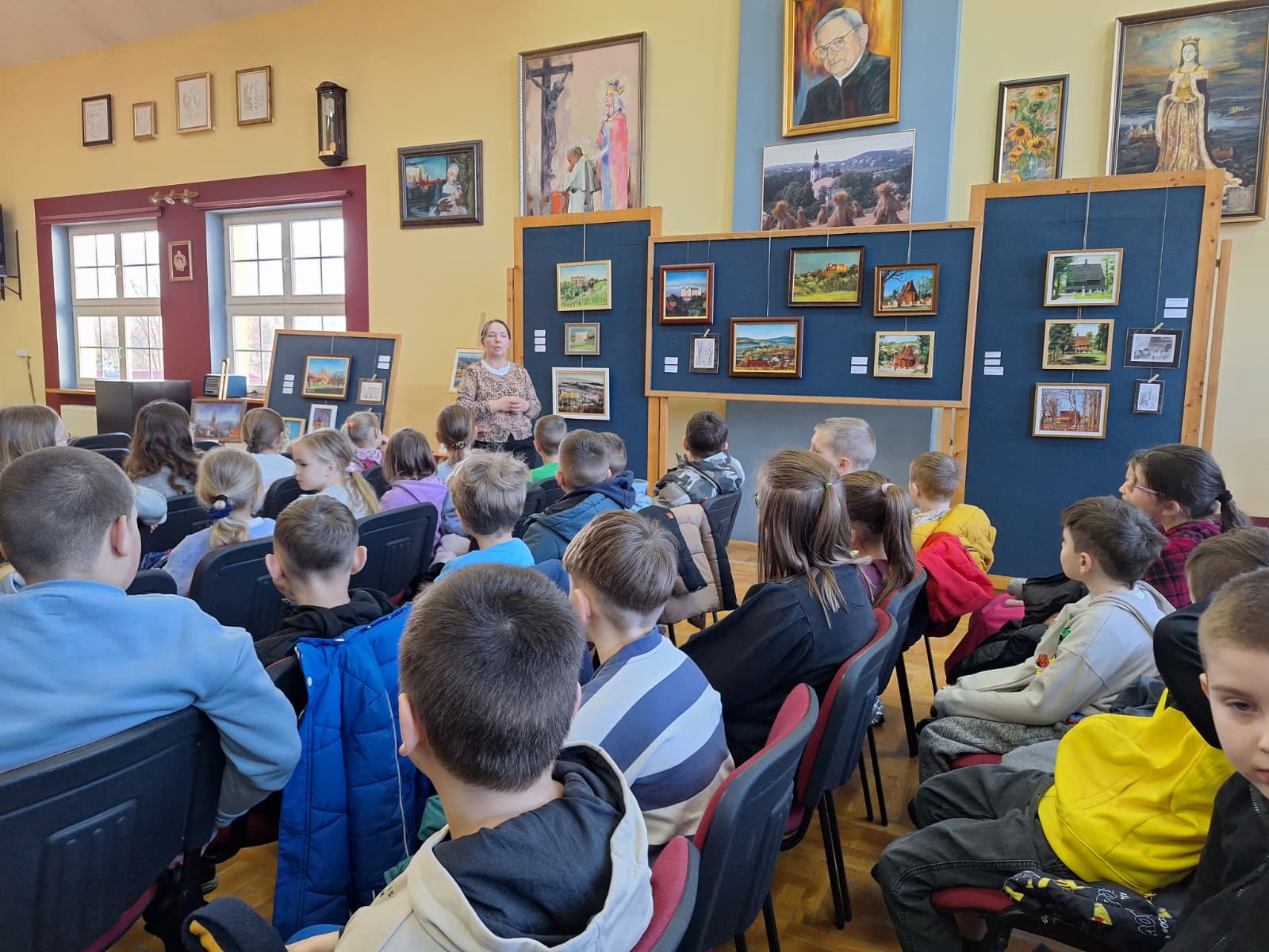 Artystka przeprowadziła krótką prelekcję, opowiadając o powstawaniu obrazów oraz dziejach uwiecznionych obiektów. Spotkanie było wartościową lekcją historii i sztuki, która pozwoliła uczniom spojrzeć na nasze dziedzictwo z nowej perspektywy.