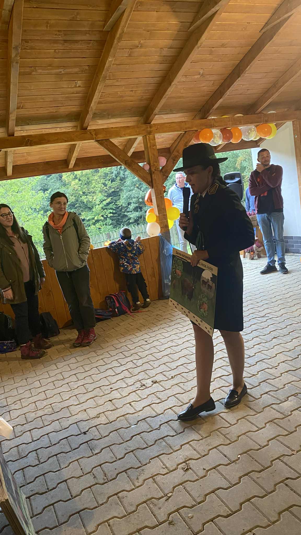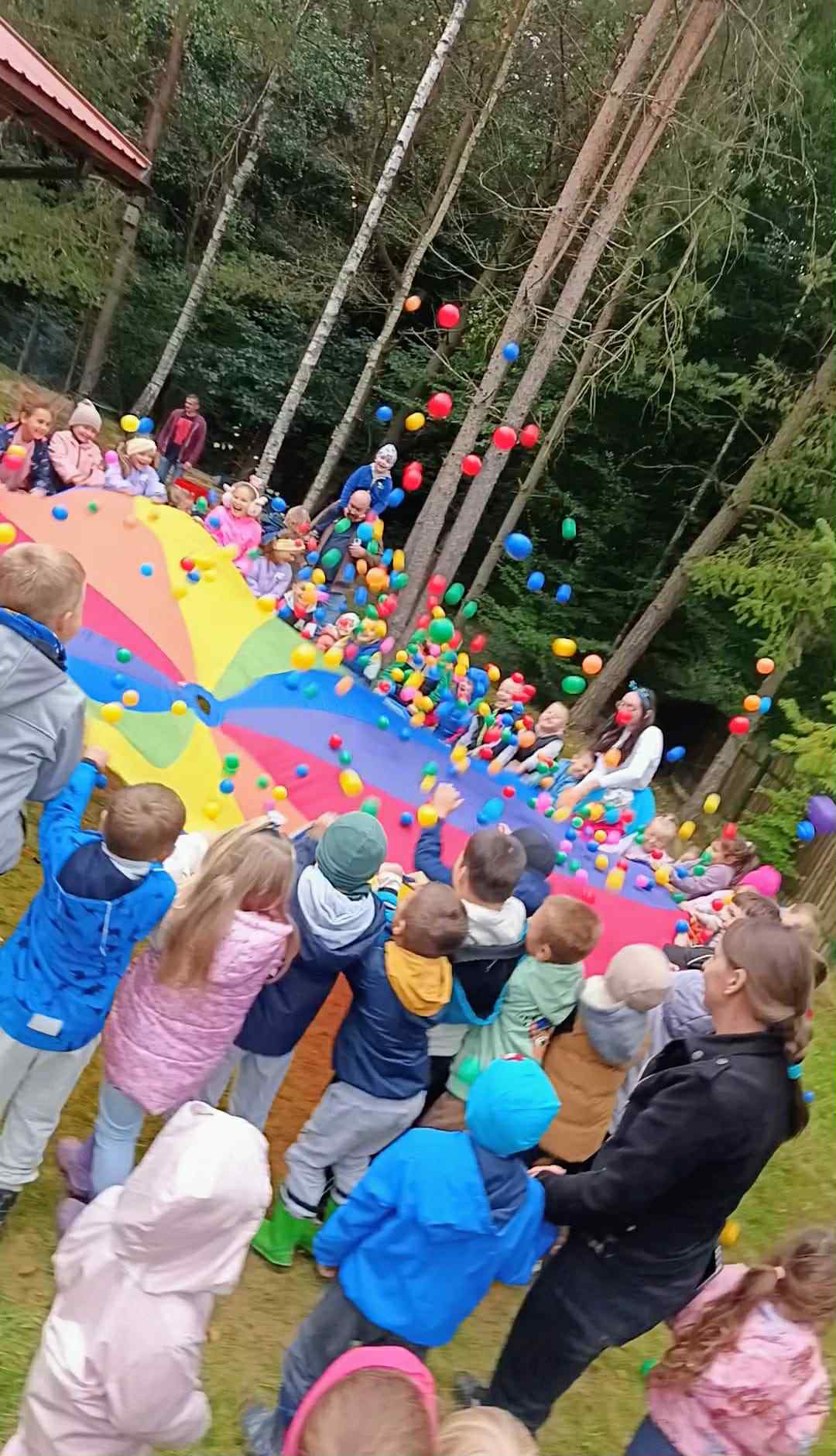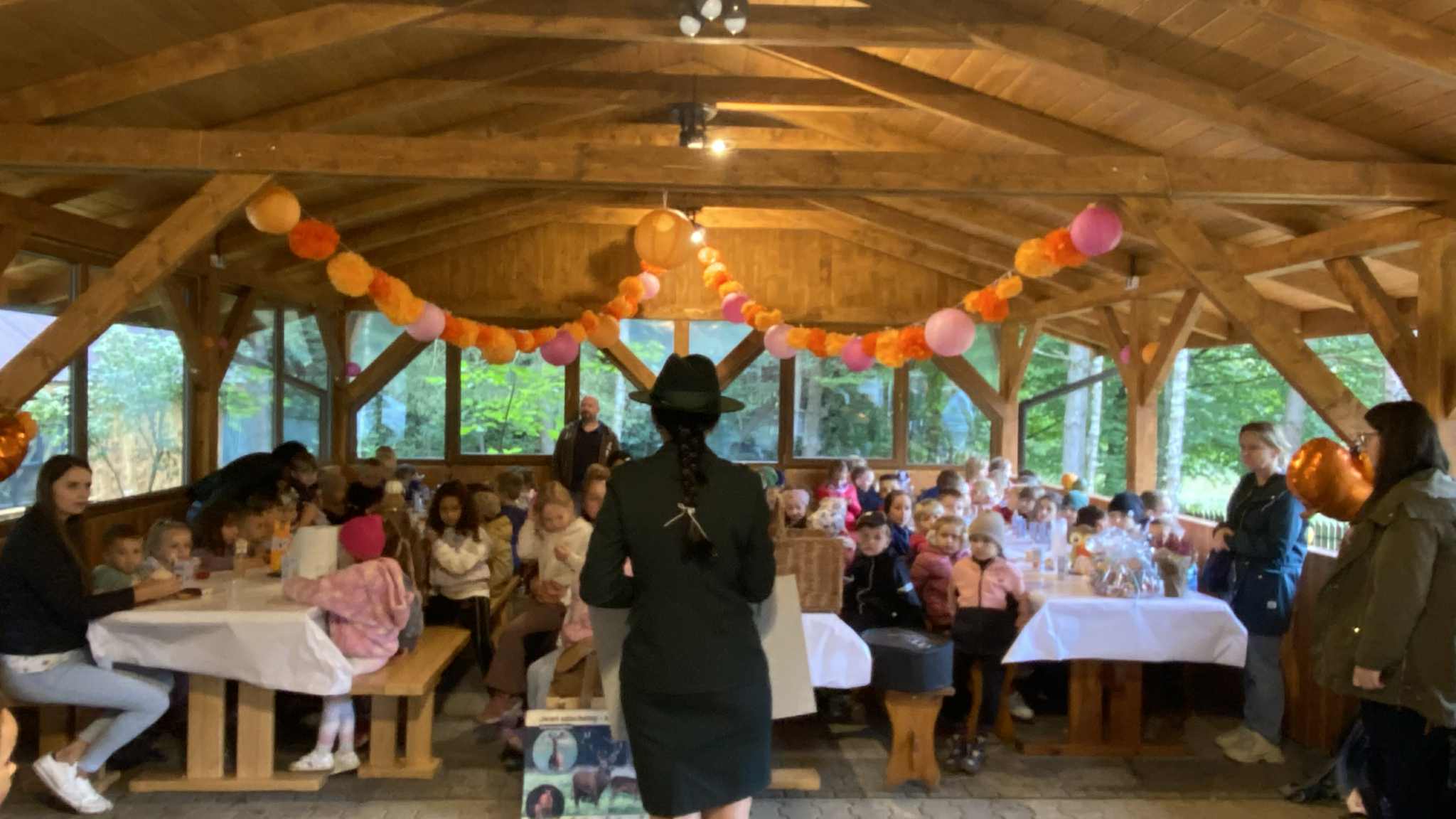 Grupy sześciolatków wraz z opiekunkami zostały najpierw dowiezione autobusem w okolice cmentarza wojennego nr 303 w Rajbrocie. Tam na dzieci czekali leśnicy – Pan Marek Orynczak oraz Pan Tymoteusz Podwyszyński. Po powitaniu wszyscy udali się na pobliski cmentarz, na którym pochowano żołnierzy I wojny światowej. Dzieci złożyły wiązankę oraz znicze pod pomnikiem, a później zwiedziły cmentarz. Następnie dzieci udały się pieszo w kierunku Domku Myśliwskiego w Łąkcie Górnej. Po drodze przewodnicy zdradzili dzieciom wiele leśnych tajemnic. Przedszkolaki podziwiały jesienne barwy lasu, obserwowały różne gatunki drzew i grzybów. Było to wspaniałe przeżycie dla nich. Po przybyciu na miejsce Pani Dyrektor Joanna Dunikowska powitała dzieci, opiekunów oraz gości wręczając pamiątkowe upominki. Dzieci powitał, również Wójt - Wojciech Wrona oraz Prezes Koła Łowieckiego „Ryś” w Żegocinie – Adam Durbas. Następnie Pani Dyrektor zaprosiła wszystkich na poczęstunek przygotowany przez rodziców. Po nabraniu sił przedszkolaki świetnie się bawiły w obecności Pań animatorek. Na koniec dzieci miały okazję uczestniczyć w warsztatach przeprowadzonych przez Panią Barbarę Halek, Przewodniczącą Komisji Promocji Łowiectwa PZŁ KO Kraków – na temat zwierząt leśnych. Po zakończonym pikniku poszczególne grupy, pełne wrażeń z powrotem wsiadały do autobusu i odjeżdżały do swoich przedszkoli.