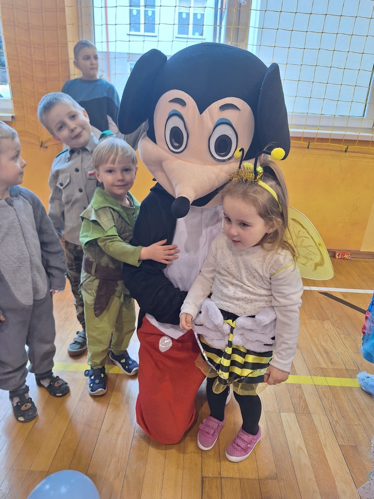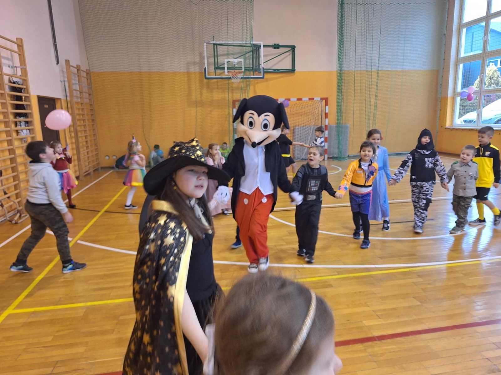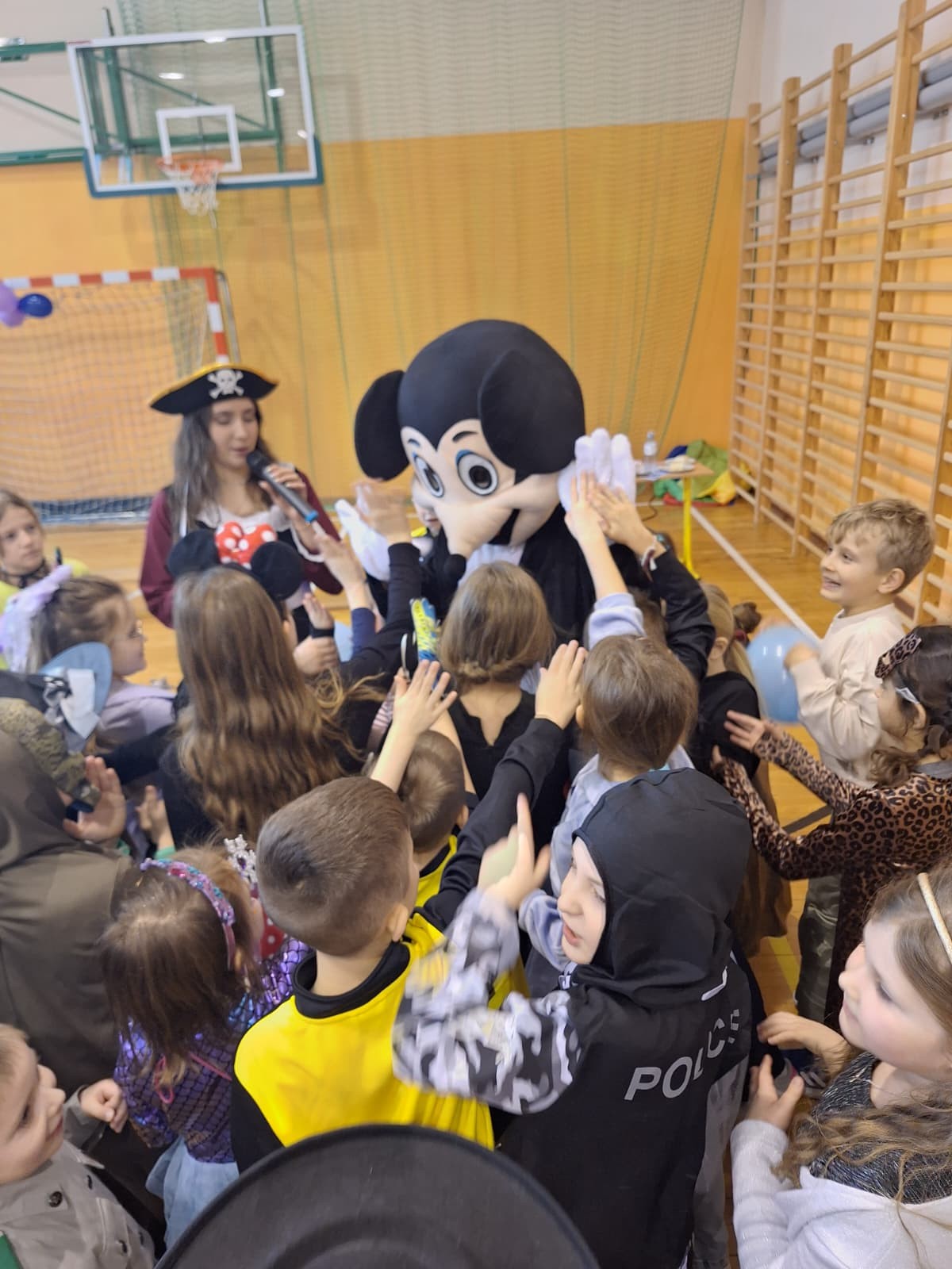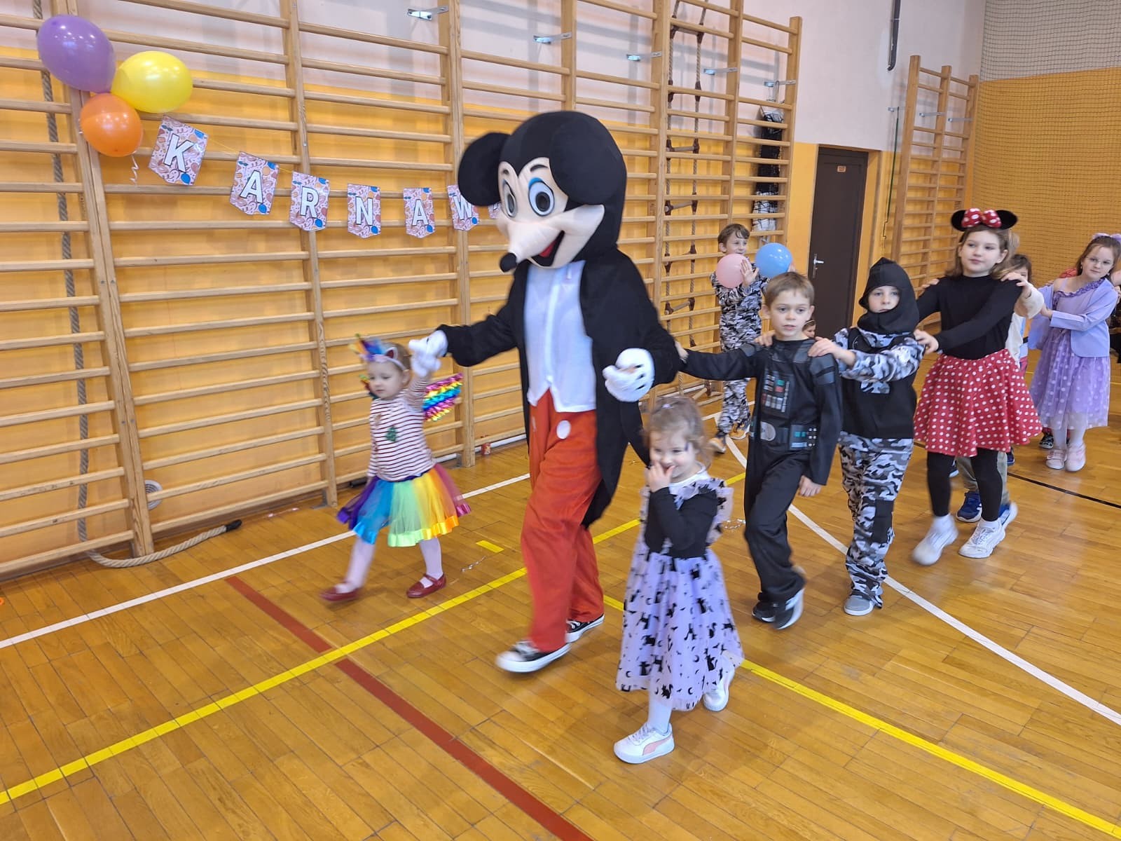 Podczas zabawy karnawaÅ‚owej dzieci z przedszkola oraz klas I–III bawiÅ‚y siÄ™ znakomicie w radosnej, kolorowej atmosferze. Czas umilaÅ‚y animatorki, które z energiÄ… godnÄ… prawdziwego karnawaÅ‚u prowadziÅ‚y taÅ„ce i wesoÅ‚e zabawy, porywajÄ…c wszystkich do wspólnej aktywnoÅ›ci. DodatkowÄ… atrakcjÄ… byÅ‚y efektowne baÅ„ki mydlane oraz wizyta Myszki Miki, która wywoÅ‚aÅ‚a wiele uÅ›miechów i niemaÅ‚e poruszenie wÅ›ród najmÅ‚odszych. Na zakoÅ„czenie na dzieci czekaÅ‚ sÅ‚odki poczÄ™stunek – ciasteczka, owoce i galaretki – przygotowany przez rodziców, którym należą siÄ™ szczególne podziÄ™kowania.
