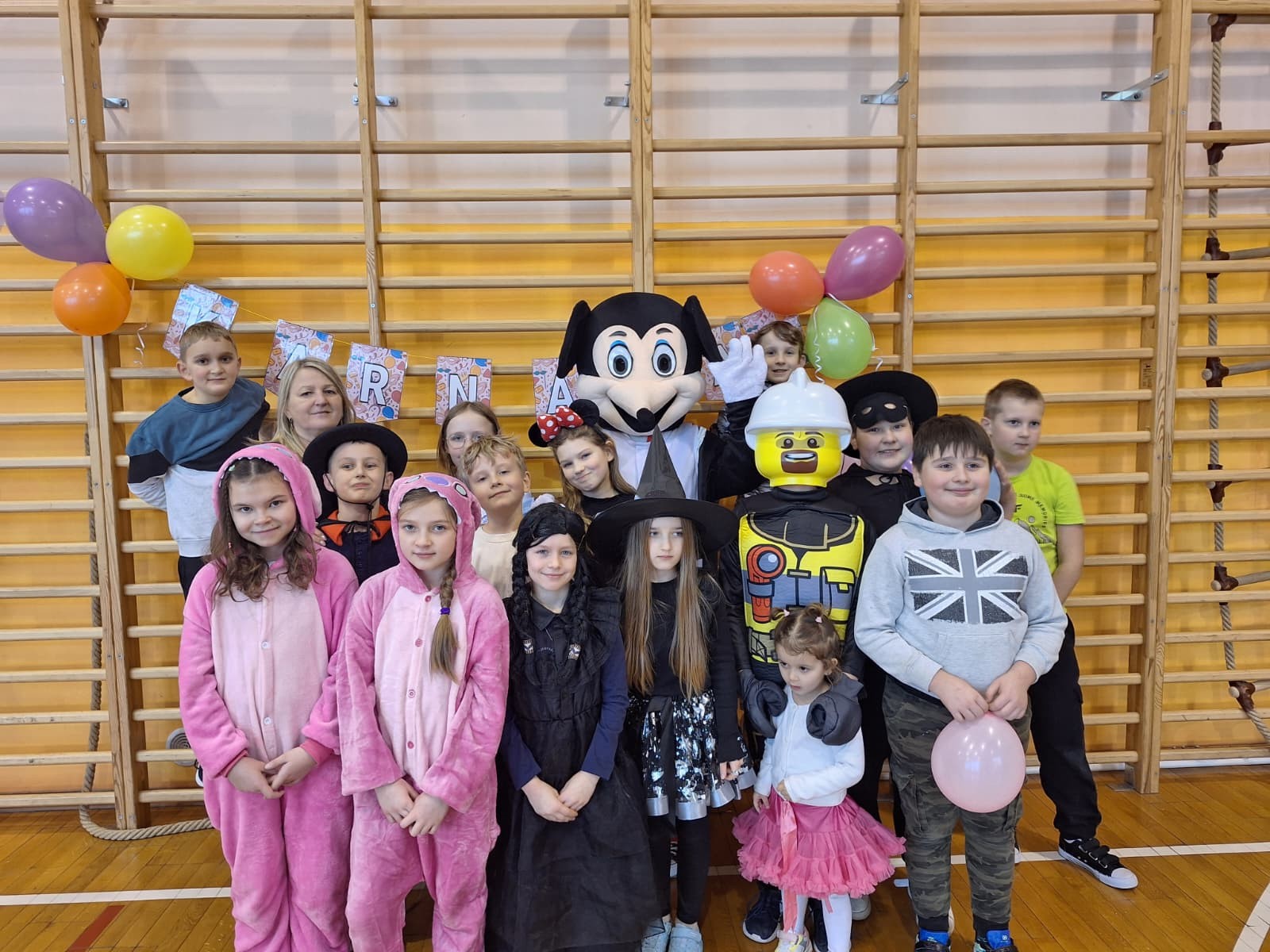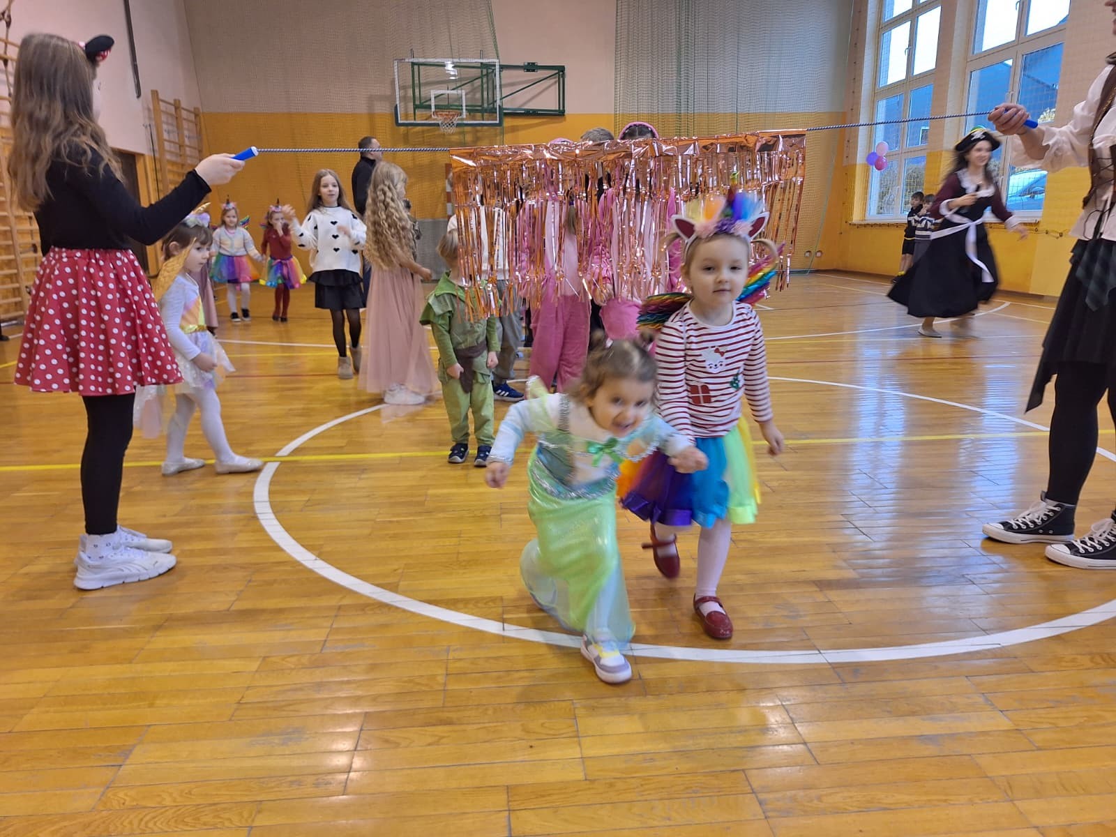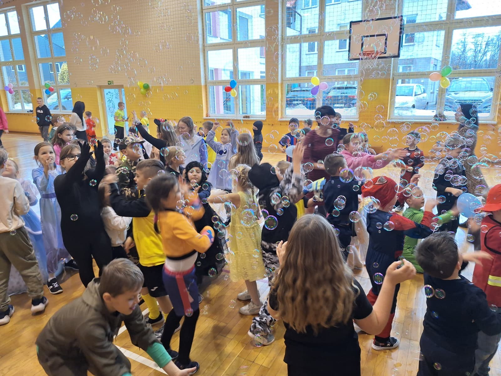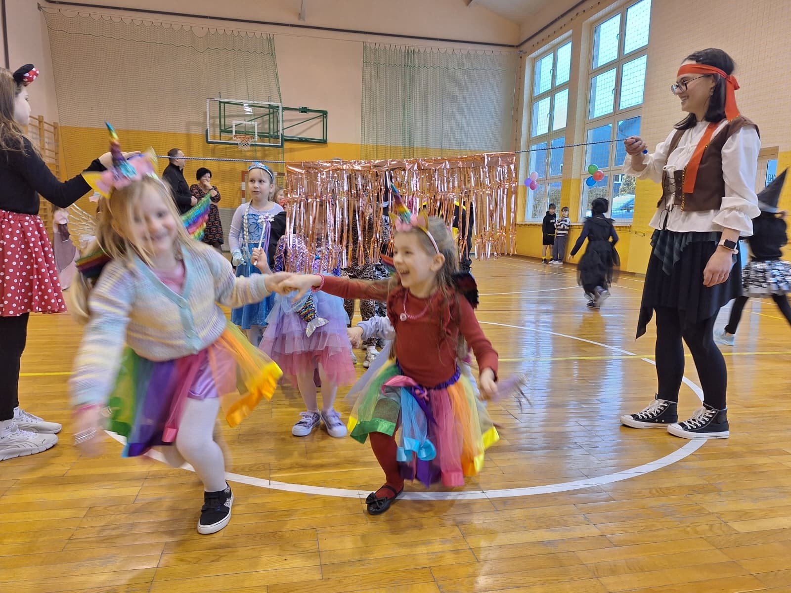 Podczas zabawy karnawaÅ‚owej dzieci z przedszkola oraz klas I–III bawiÅ‚y siÄ™ znakomicie w radosnej, kolorowej atmosferze. Czas umilaÅ‚y animatorki, które z energiÄ… godnÄ… prawdziwego karnawaÅ‚u prowadziÅ‚y taÅ„ce i wesoÅ‚e zabawy, porywajÄ…c wszystkich do wspólnej aktywnoÅ›ci. DodatkowÄ… atrakcjÄ… byÅ‚y efektowne baÅ„ki mydlane oraz wizyta Myszki Miki, która wywoÅ‚aÅ‚a wiele uÅ›miechów i niemaÅ‚e poruszenie wÅ›ród najmÅ‚odszych. Na zakoÅ„czenie na dzieci czekaÅ‚ sÅ‚odki poczÄ™stunek – ciasteczka, owoce i galaretki – przygotowany przez rodziców, którym należą siÄ™ szczególne podziÄ™kowania.