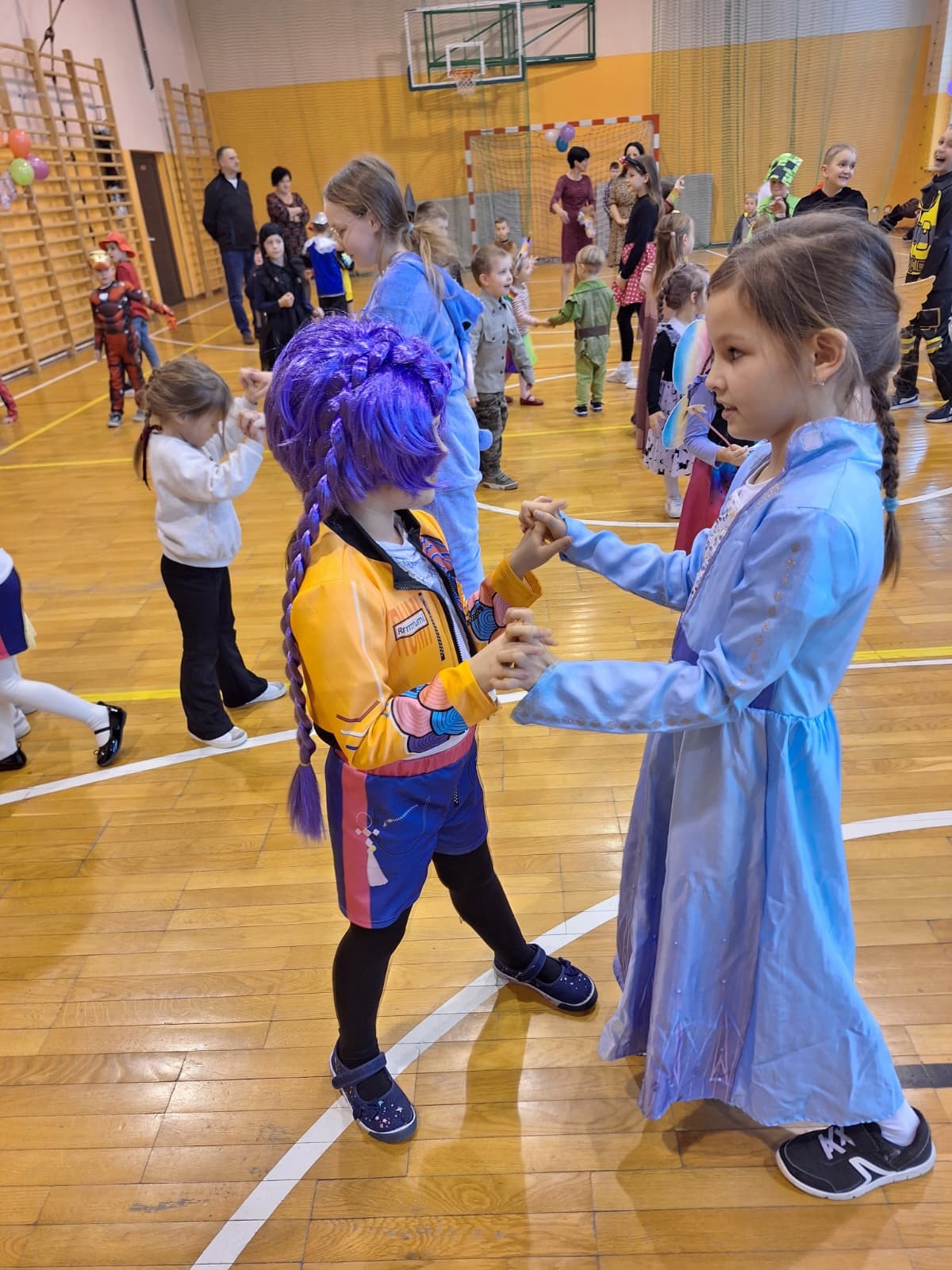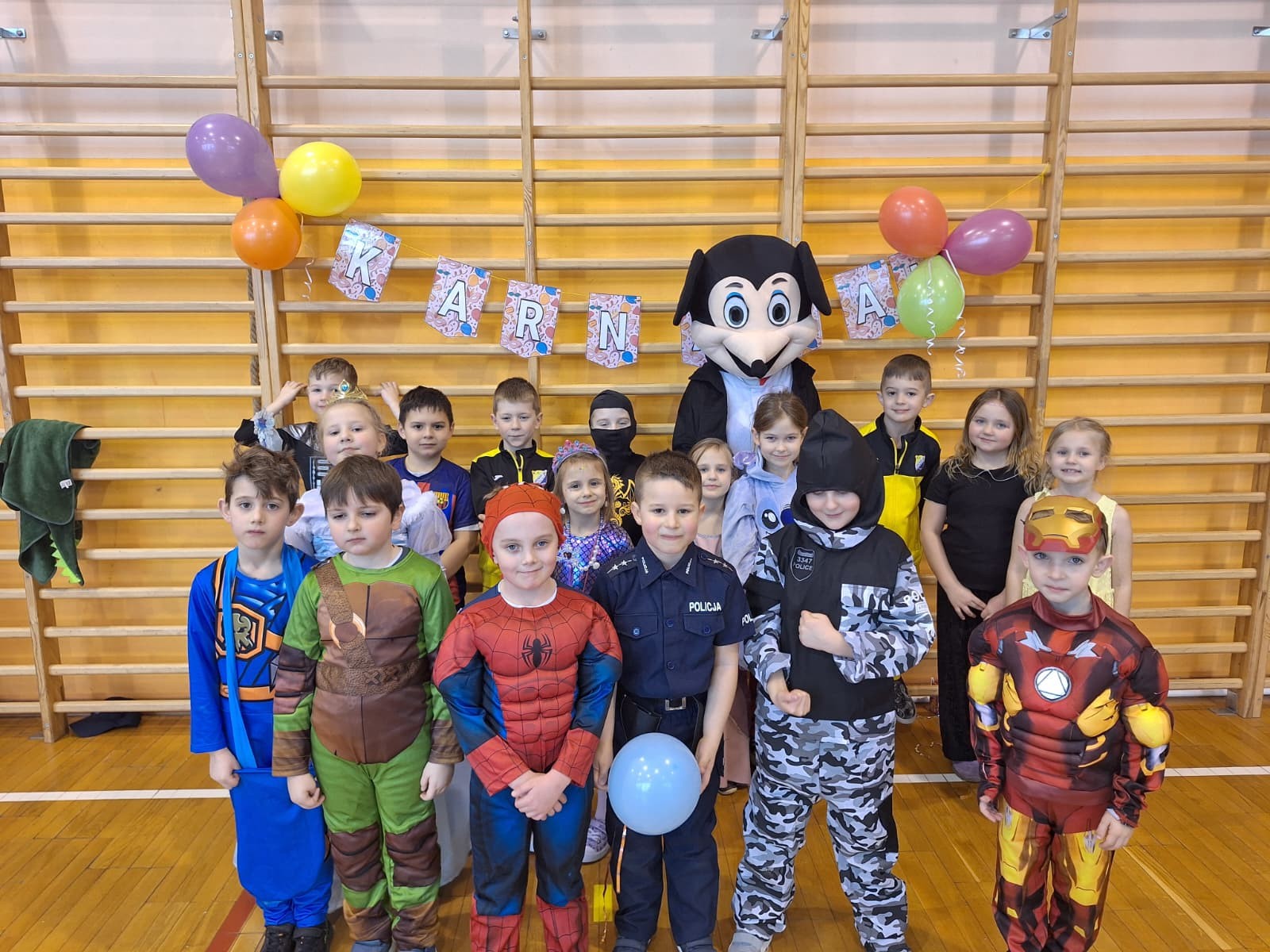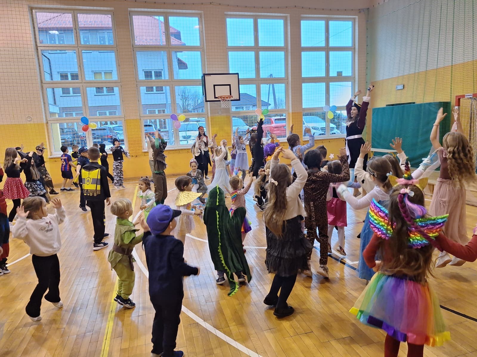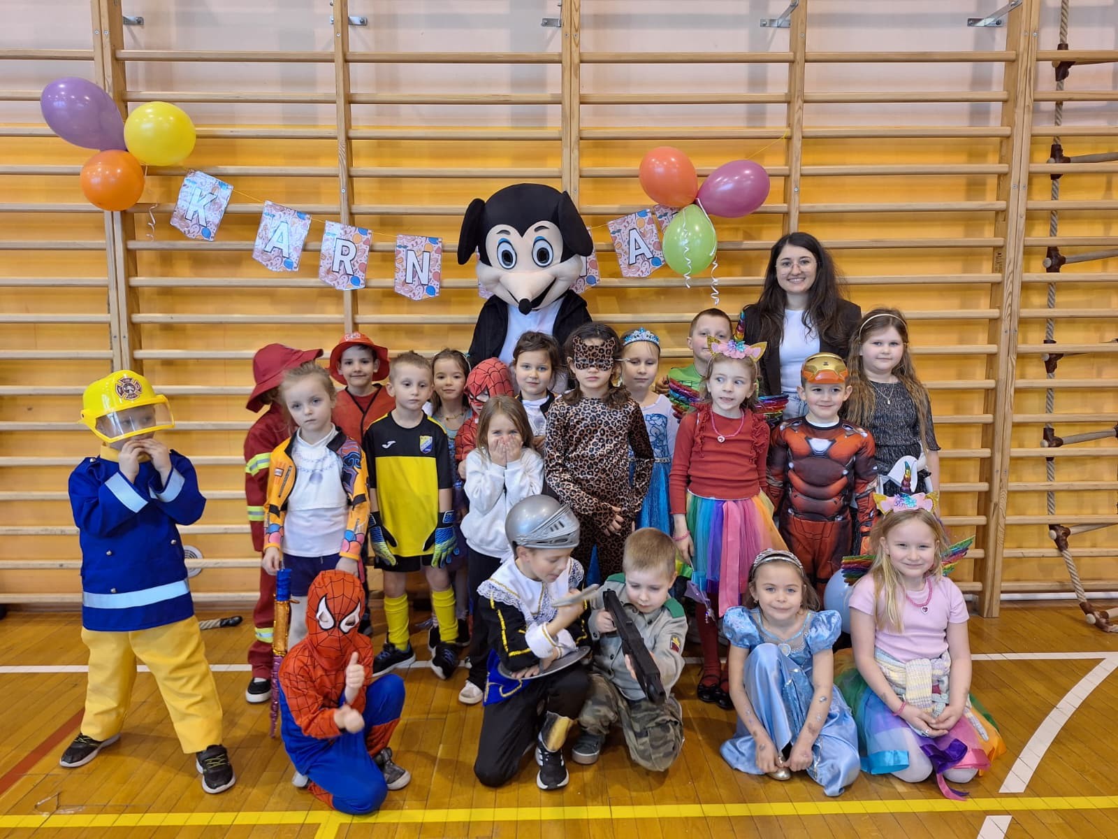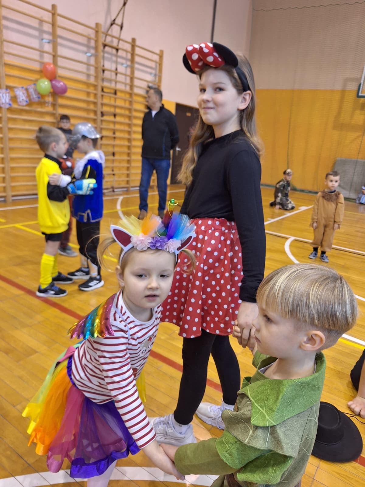 Podczas zabawy karnawaÅ‚owej dzieci z przedszkola oraz klas I–III bawiÅ‚y siÄ™ znakomicie w radosnej, kolorowej atmosferze. Czas umilaÅ‚y animatorki, które z energiÄ… godnÄ… prawdziwego karnawaÅ‚u prowadziÅ‚y taÅ„ce i wesoÅ‚e zabawy, porywajÄ…c wszystkich do wspólnej aktywnoÅ›ci. DodatkowÄ… atrakcjÄ… byÅ‚y efektowne baÅ„ki mydlane oraz wizyta Myszki Miki, która wywoÅ‚aÅ‚a wiele uÅ›miechów i niemaÅ‚e poruszenie wÅ›ród najmÅ‚odszych. Na zakoÅ„czenie na dzieci czekaÅ‚ sÅ‚odki poczÄ™stunek – ciasteczka, owoce i galaretki – przygotowany przez rodziców, którym należą siÄ™ szczególne podziÄ™kowania.