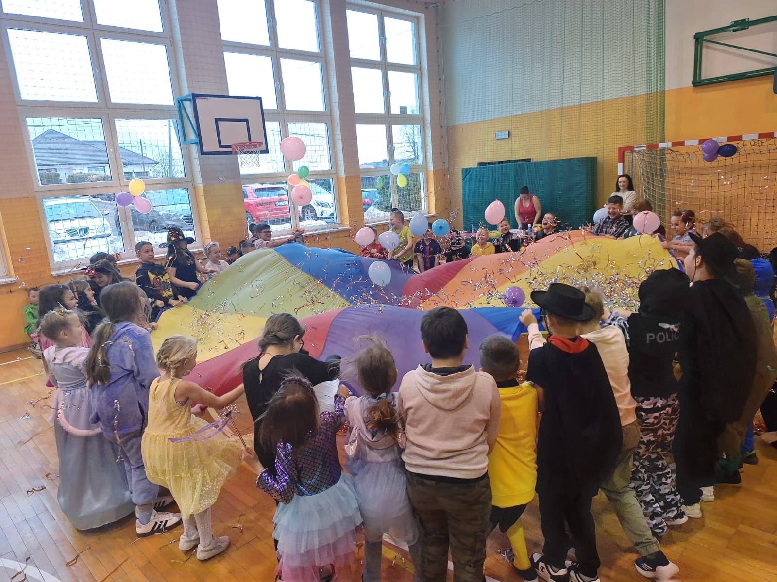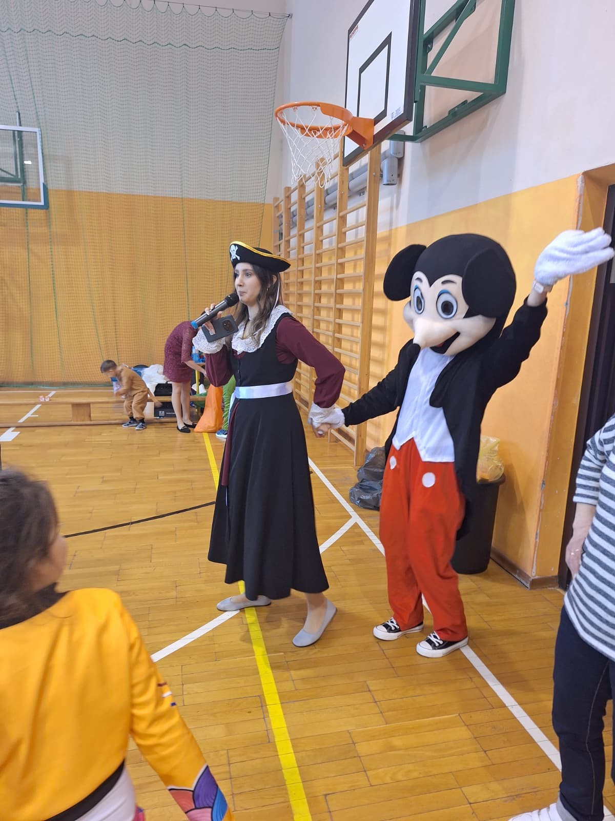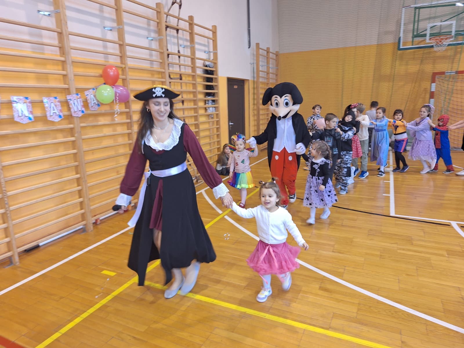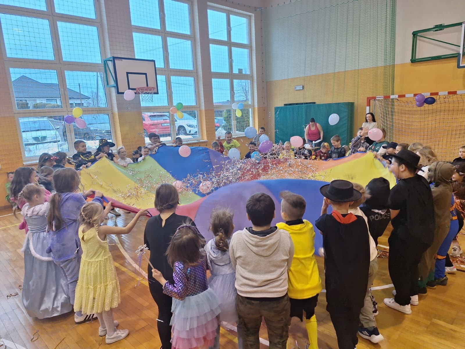 Podczas zabawy karnawaÅ‚owej dzieci z przedszkola oraz klas I–III bawiÅ‚y siÄ™ znakomicie w radosnej, kolorowej atmosferze. Czas umilaÅ‚y animatorki, które z energiÄ… godnÄ… prawdziwego karnawaÅ‚u prowadziÅ‚y taÅ„ce i wesoÅ‚e zabawy, porywajÄ…c wszystkich do wspólnej aktywnoÅ›ci. DodatkowÄ… atrakcjÄ… byÅ‚y efektowne baÅ„ki mydlane oraz wizyta Myszki Miki, która wywoÅ‚aÅ‚a wiele uÅ›miechów i niemaÅ‚e poruszenie wÅ›ród najmÅ‚odszych. Na zakoÅ„czenie na dzieci czekaÅ‚ sÅ‚odki poczÄ™stunek – ciasteczka, owoce i galaretki – przygotowany przez rodziców, którym należą siÄ™ szczególne podziÄ™kowania.