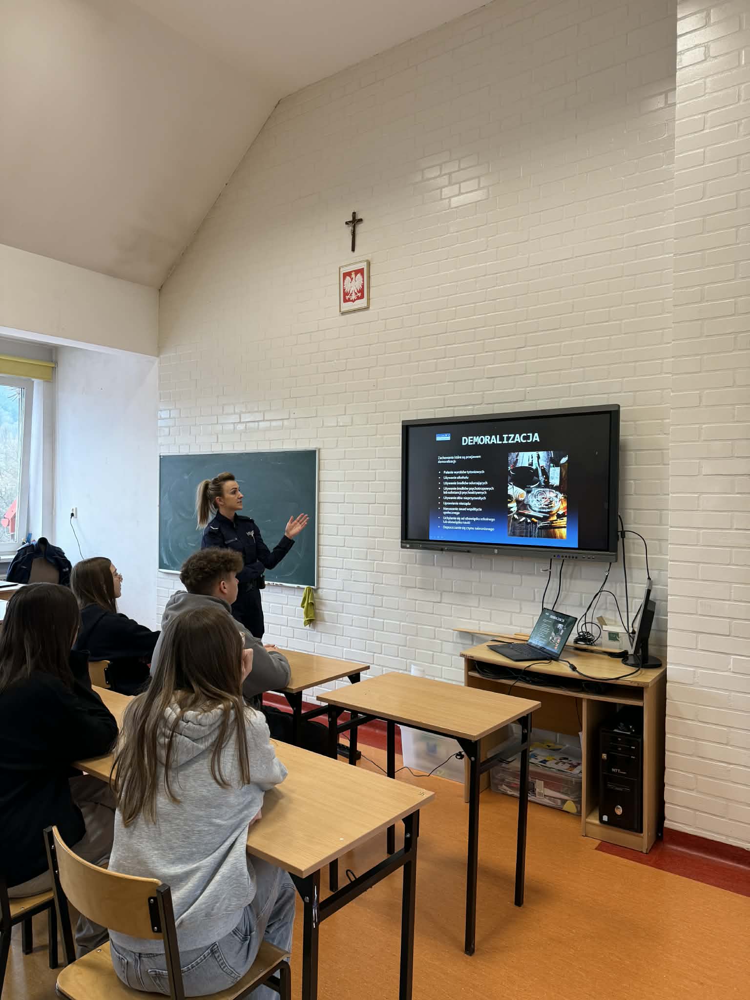 W naszej szkole odbyły się zajęcia profilaktyczne dla uczniów klas 5–6 oraz 7–8, które poprowadziła sierż. Iwona Duśko.
